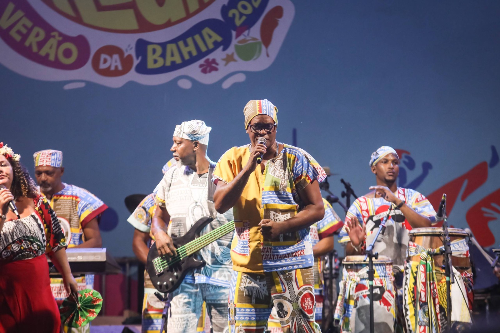 À noite, os tambores do Afoxé Filhos do Congo abriram a festa e anteciparam um pouco do que será o desfile de Carnaval para baianos e turistas que movimentaram o Pelourinho. Neste ano, o grupo homenageia a educadora e ativista Makota Valdina, soteropolitana que lutou de diversas formas contra o racismo e a intolerância religiosa.