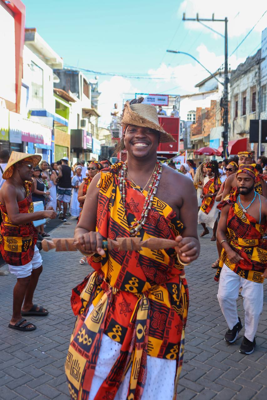 COLETIVIDADE - No período da tarde, o Afoxé Tumbá Lá e Cá, ligado ao terreiro Caboclo Mata Virgem, comandou um mini trio. Entre uma atração e outra, o som dos atabaques atravessou o percurso da lavagem. À frente do projeto, Heloá Ramaiane explicou que a celebração carrega um sentido coletivo e espiritual. “A lavagem da purificação significa, além de um ato sagrado de renovação, um ato de coletividade”, afirmou. “É o momento que a gente utiliza para limpar nossos caminhos, fortalecer a nossa fé e honrar nossos ancestrais”.