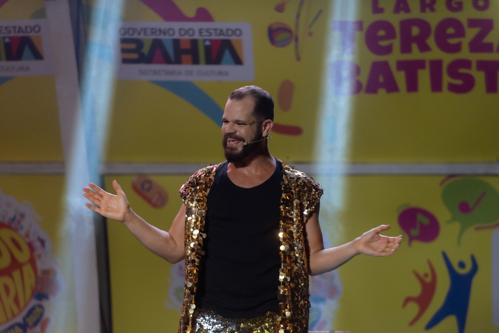No Largo Tereza Batista, o espetáculo “Chame Gente: Um Carnaval em Cada Esquina”, com Leandro Santolli e Danilo Cairo, conduziu a plateia por uma imersão na história do Carnaval da Bahia. A montagem costurou música, personagens e referências da cultura popular em uma narrativa que celebra o carnaval da Bahia como o grande expoente cultural que é, transformando a praça em um grande palco aberto.