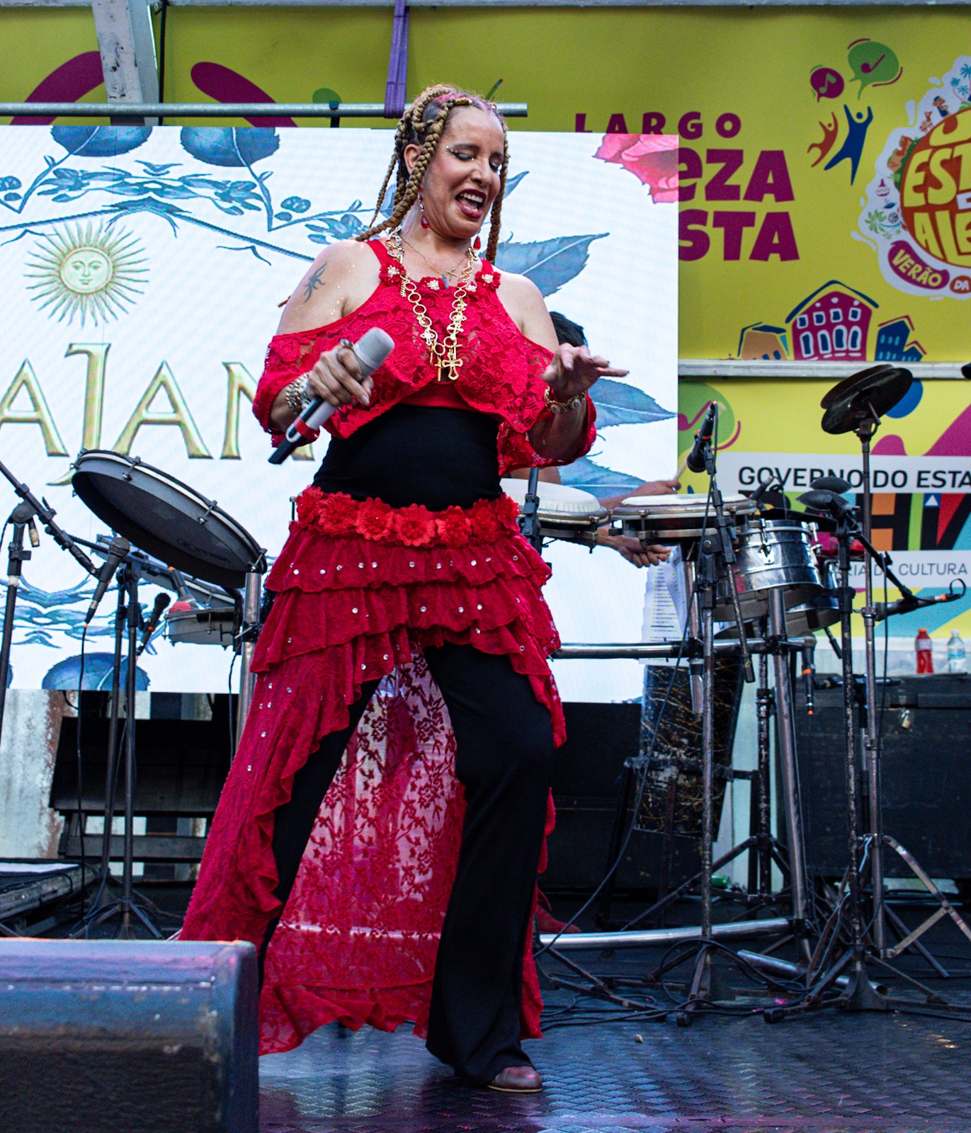 A cantora Patricia Gomes, ex- vocalista da timbalada, que participou de diversos carnavais, falou sobre a felicidade em compartilhar este momento com o público e com as outras artistas: “poder cantar aqui junto com essas duas mulheres potentes e talentosas, que são Ana Mametto e Sarajane, é uma grande alegria. É muito bom poder trazer a força feminina para o Centro Histórico”, comentou.