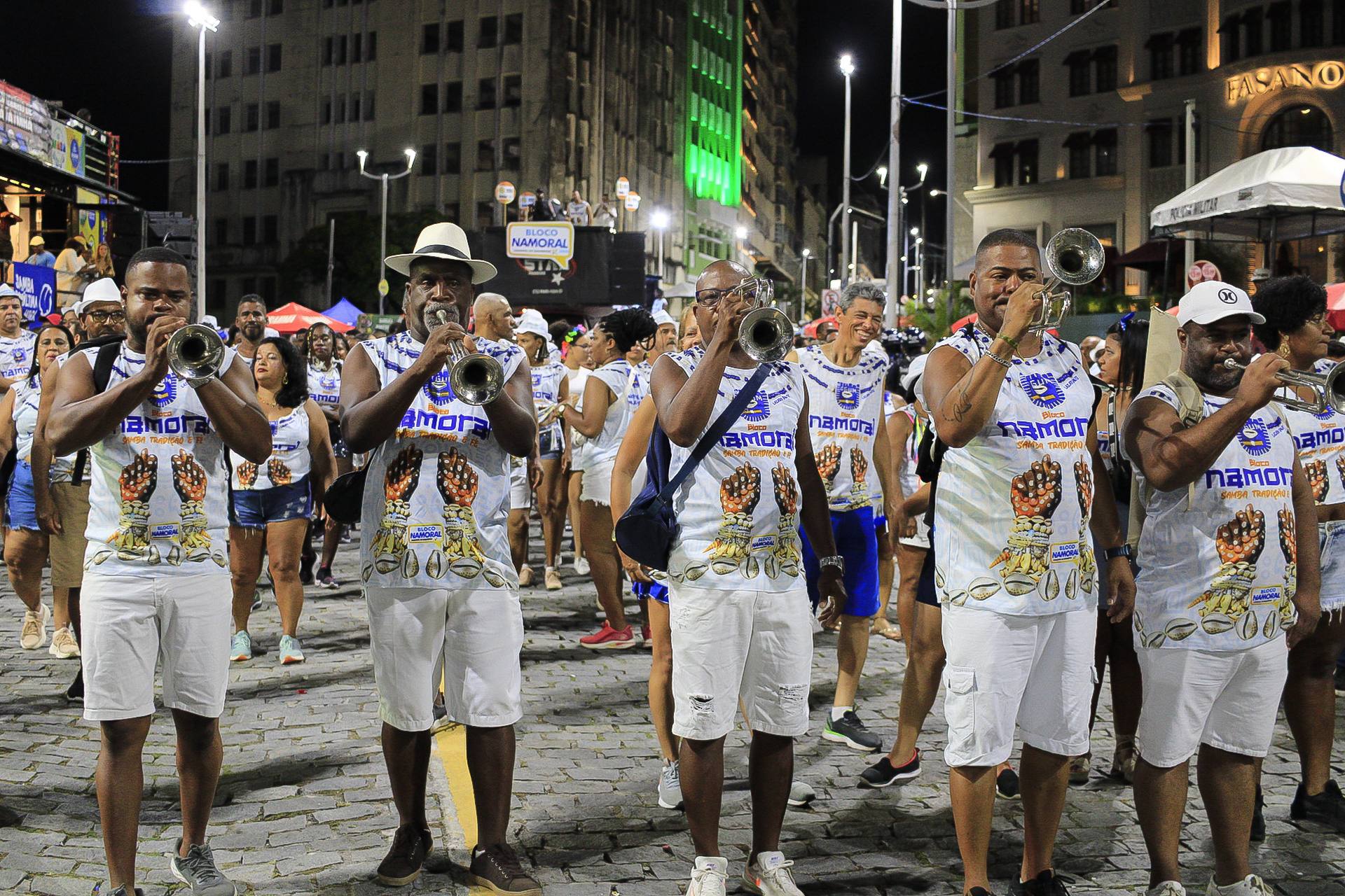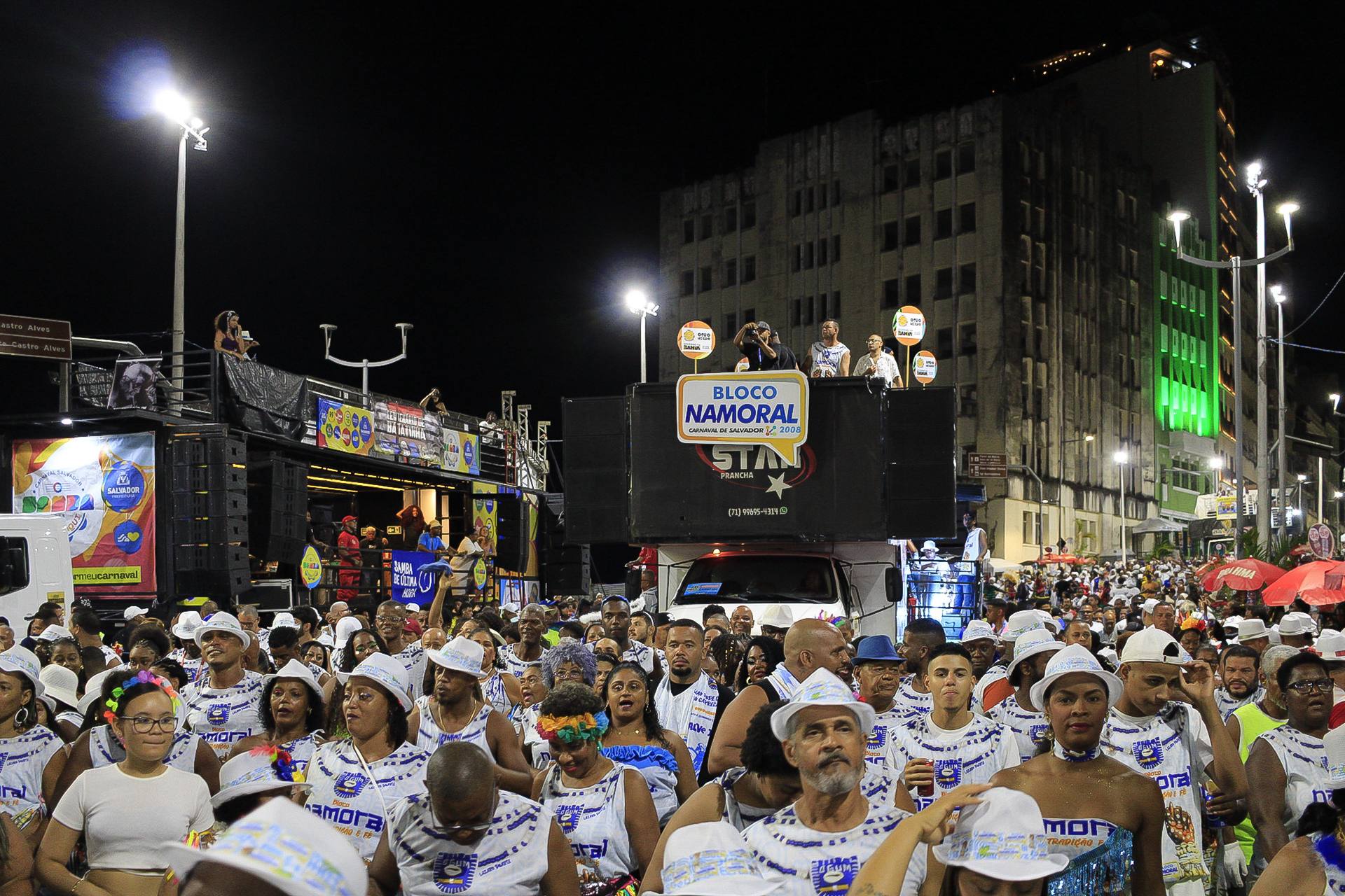 Com a bênção de Ogum e São Jorge, o bloco Namoral desceu mais um ano a Rua Chile em direção à Rua Carlos Gomes, na noite desta quinta-feira (12), durante a abertura oficial do Carnaval de Salvador 2026. Este ano, levou para as ruas o tema “Samba, Tradição e Fé”.
