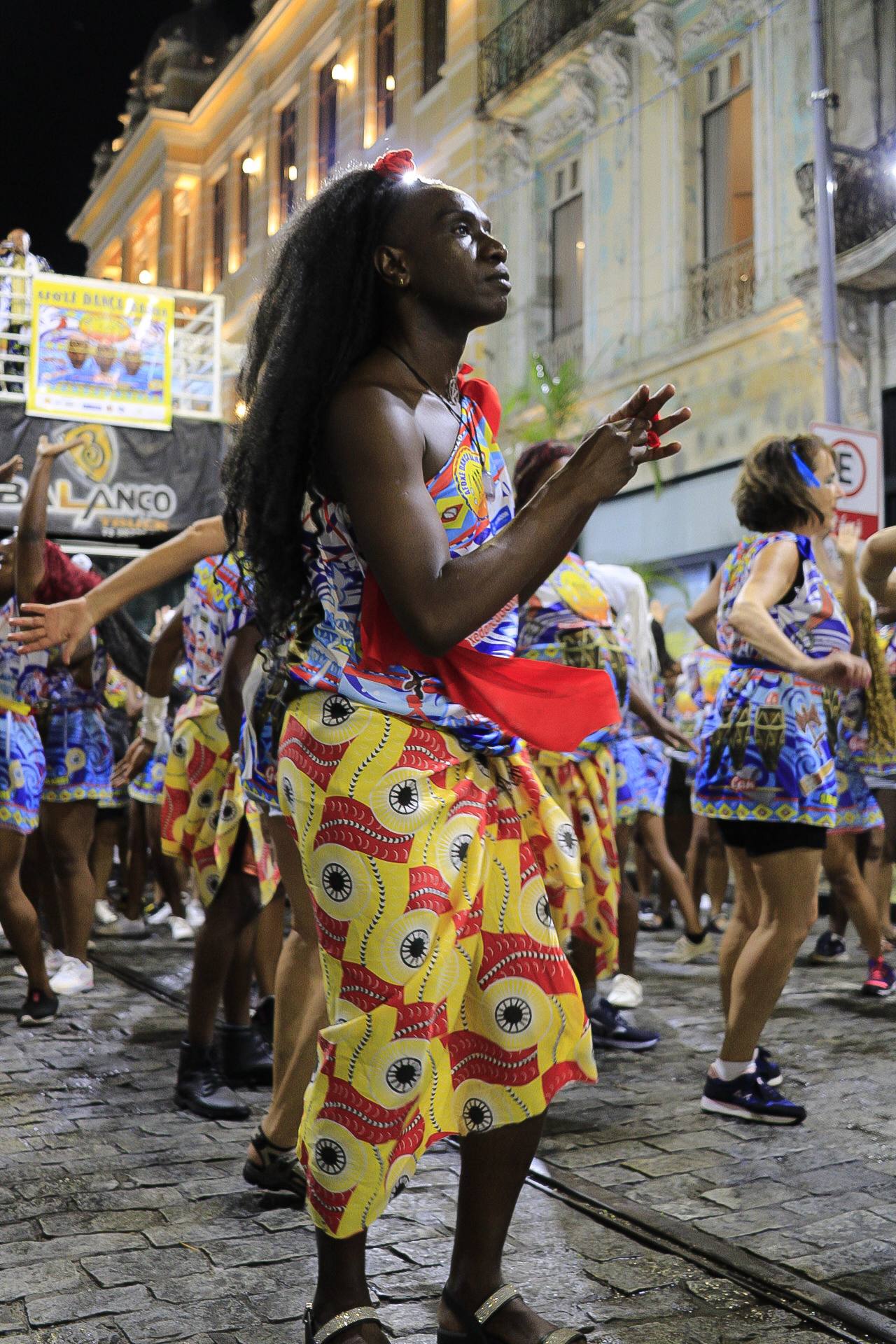 A união entre dança e capoeira, além de homenagens aos sons dos atabaques do candomblé, marcaram o desfile do Afoxé Dança Bahia, grupo com mais de 40 anos de história e um dos primeiros a ocupar o Circuito Osmar (Campo Grande) nesta quinta-feira (12).