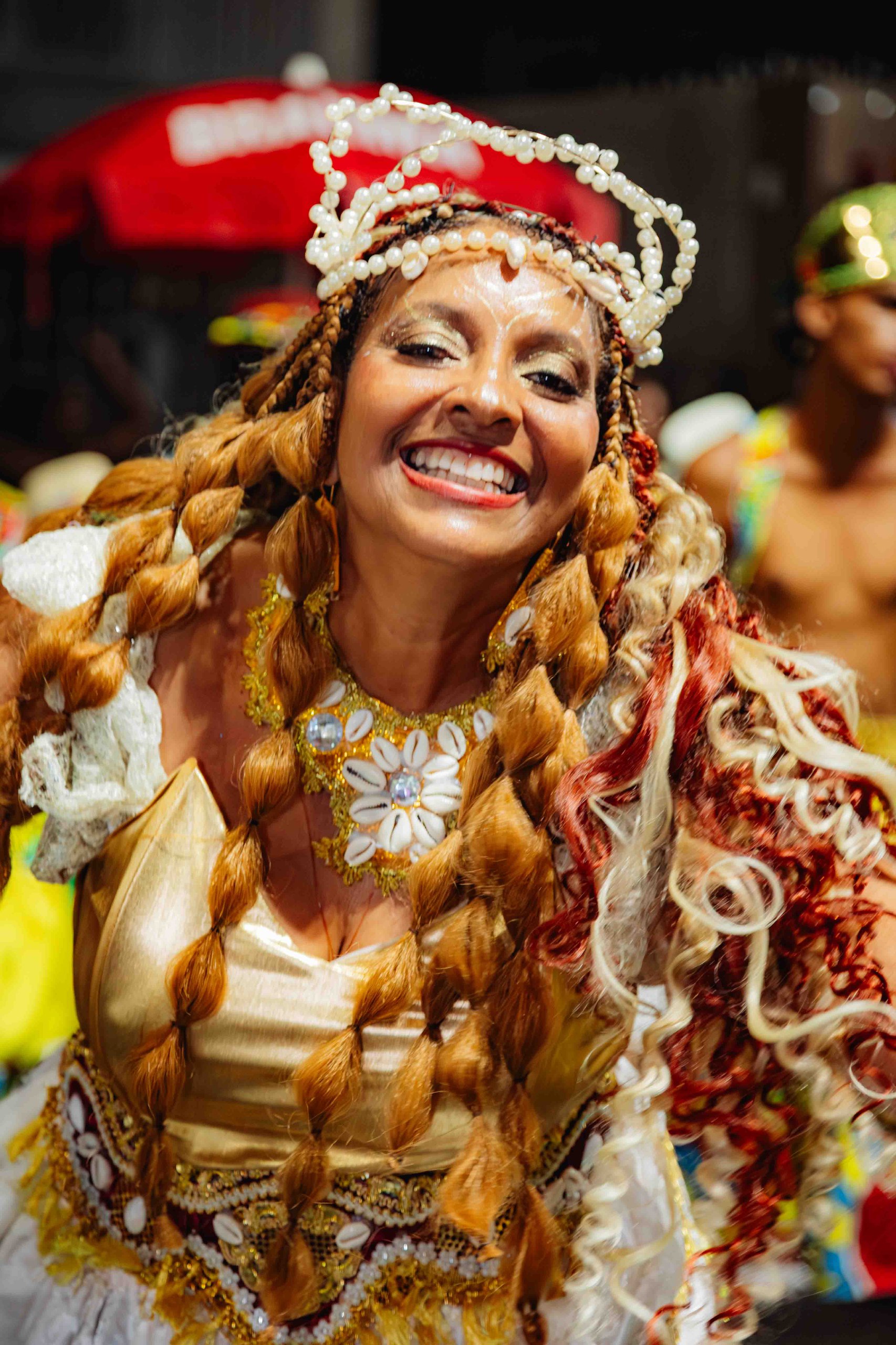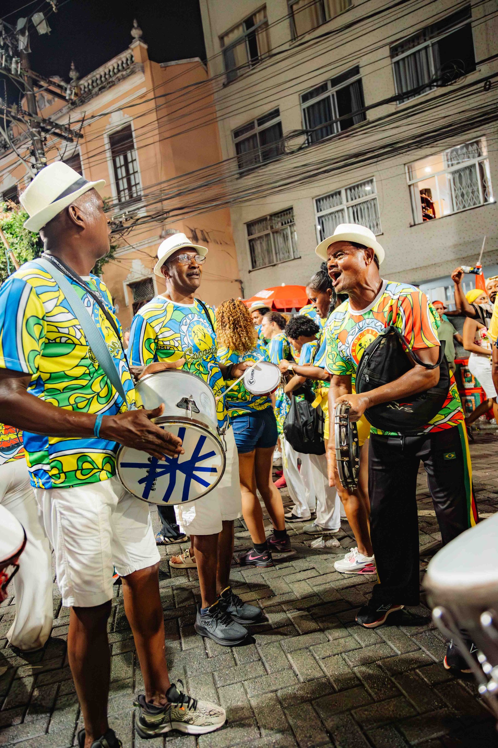 Para quem integra o bloco, o carnaval é também espaço de pertencimento. Carolina Cardeal Matos, 35 anos, colaboradora há quatro anos, contou que começou trabalhando e acabou se apaixonando. “Venho para trabalhar, mas me divirto muito e conheço muitas pessoas. Fui muito bem acolhida. Meu irmão é professor de capoeira e também está como colaborador”, relata.