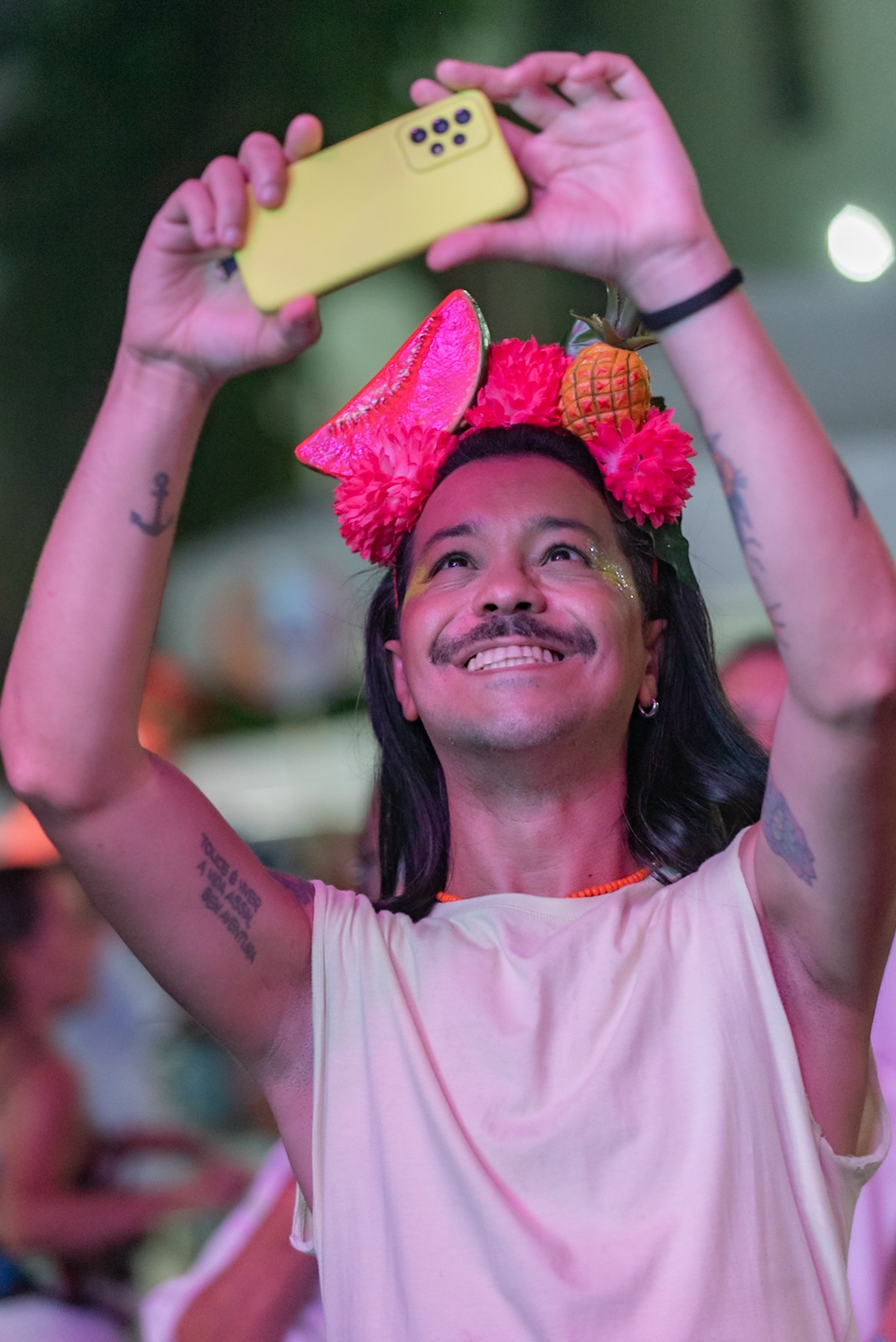A apresentação do Bailinho de Quinta transformou a noite de Carnaval do Pelô em uma pista de dança repleta de cores, luzes e muita purpurina. Com 17 anos de trajetória, o grupo voltou a um território que ajudou a moldar sua própria história artística e a construir um público fiel.