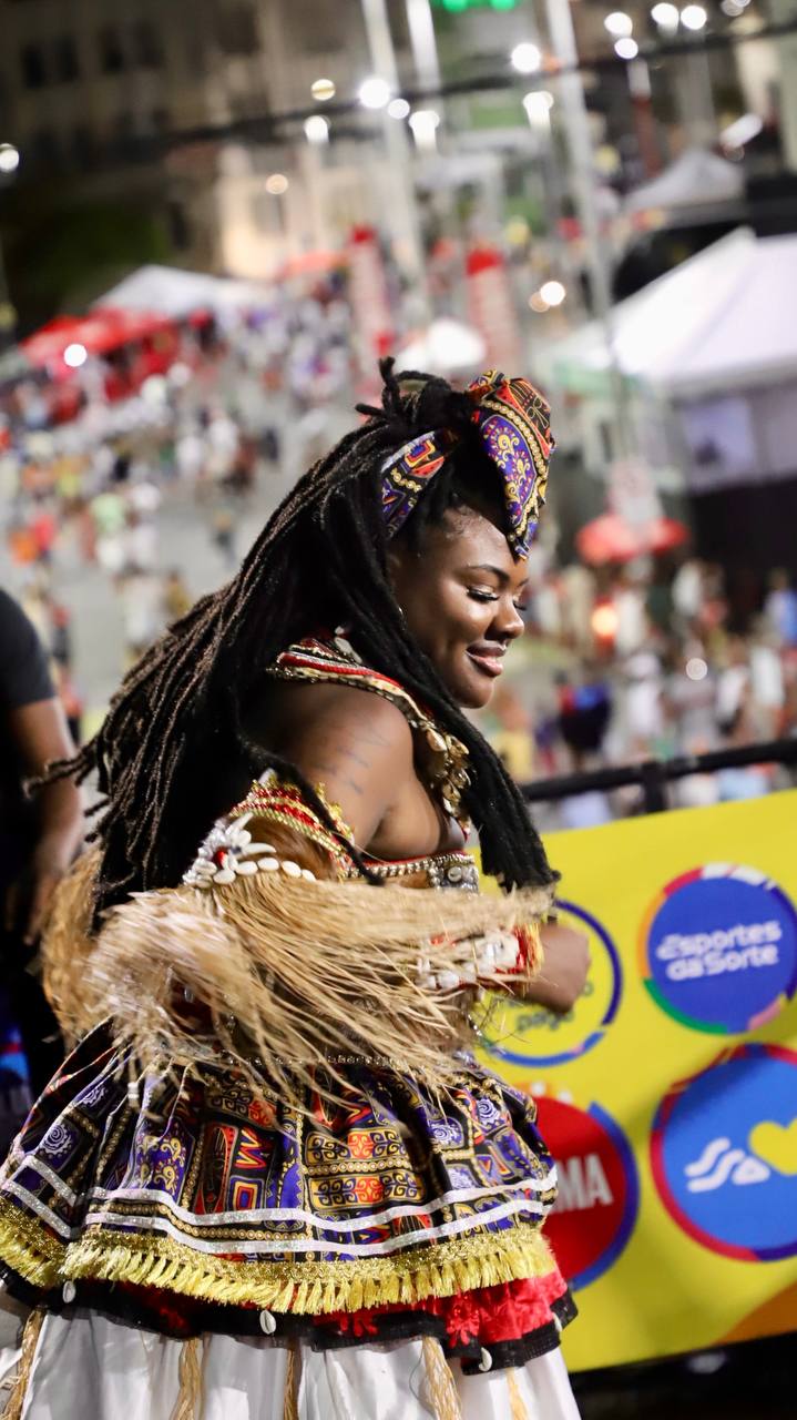 Fundado em 1992 e presente no Carnaval de Salvador como bloco independente desde 2002, o Bloco Afro Jogo de Ifá desfilou nesta sexta-feira, 13 de janeiro, saindo em contrafluxo da Praça Municipal, no Centro Histórico, com o tema “Egito Nordestino”. A proposta uniu referências à realeza egípcia, ao ouro e à força simbólica da cor amarela e à identidade cultural do Nordeste, em um cortejo marcado por brilho, dança e afirmação da ancestralidade negra.