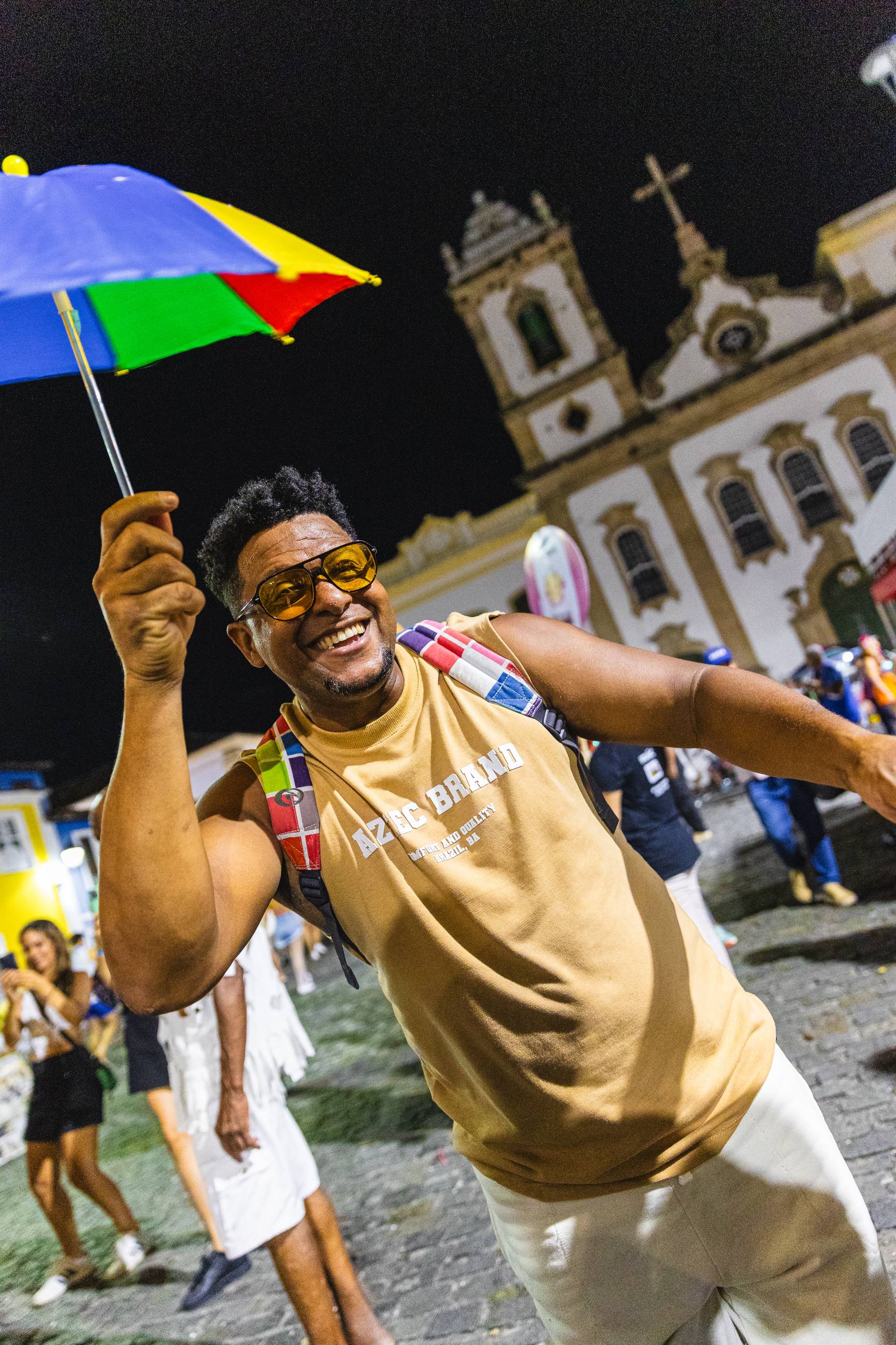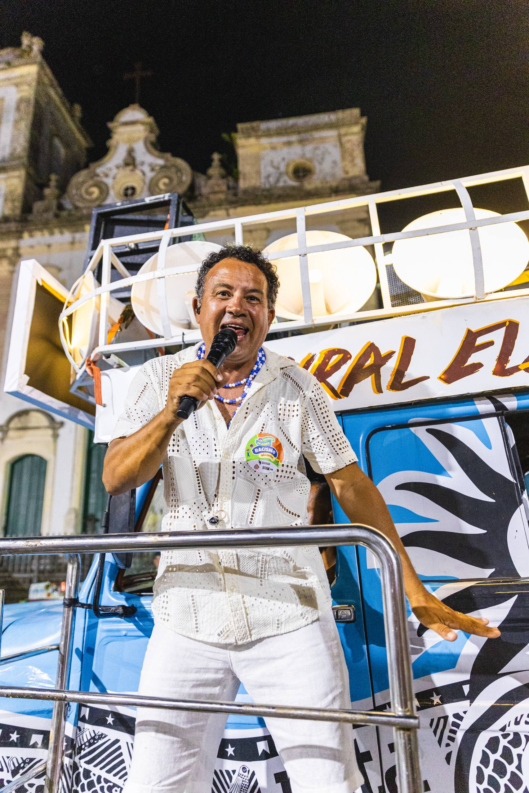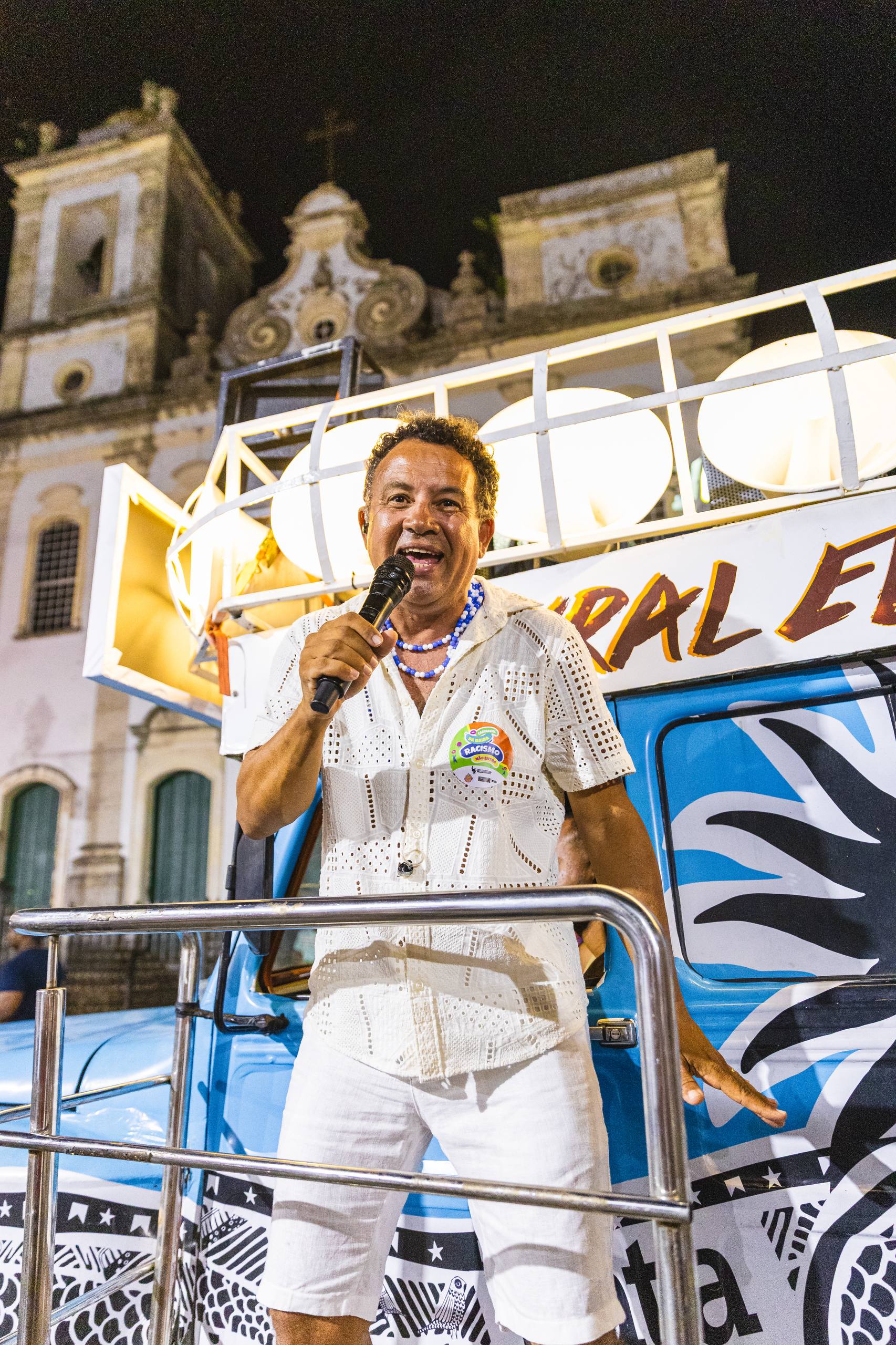 O cantor e compositor levou ao Largo Terreiro de Jesus um show que passeou pelos clássicos dos antigos carnavais, em homenagem ao saudoso Carlos Pitta, com músicas como “Vassourinha Elétrica” e “Cometa Mambembe”, clássico do Carnaval brasileiro, celebrado por figuras como Osmar Macedo, um dos criadores do trio elétrico.