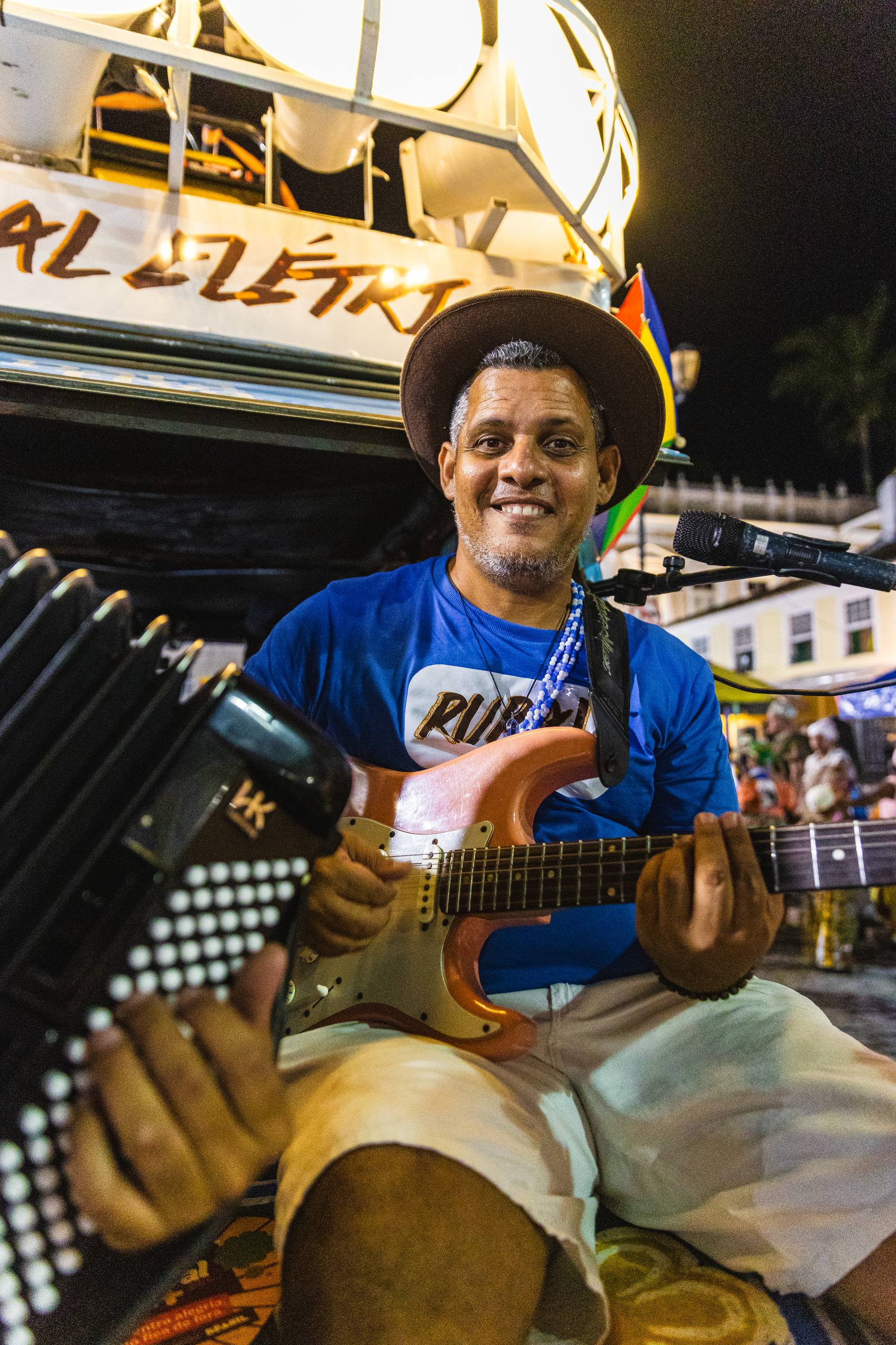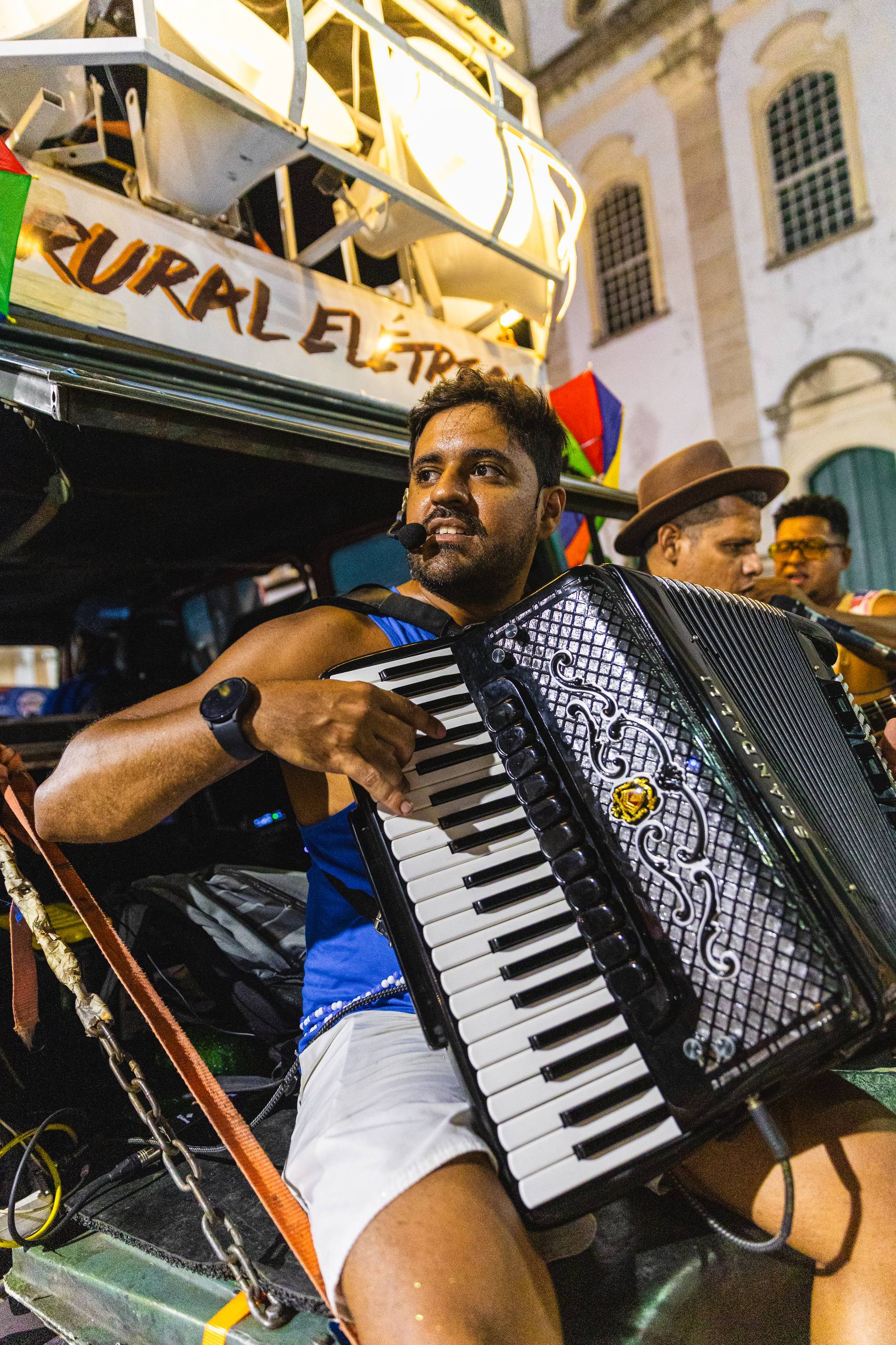 Há dez anos nas vias do Pelourinho, a Rural Elétrica encheu o Pelourinho de brilho, numa performance contagiante, combinando ritmos como axé, frevo e forró em um repertório afetivo e muito dançante.