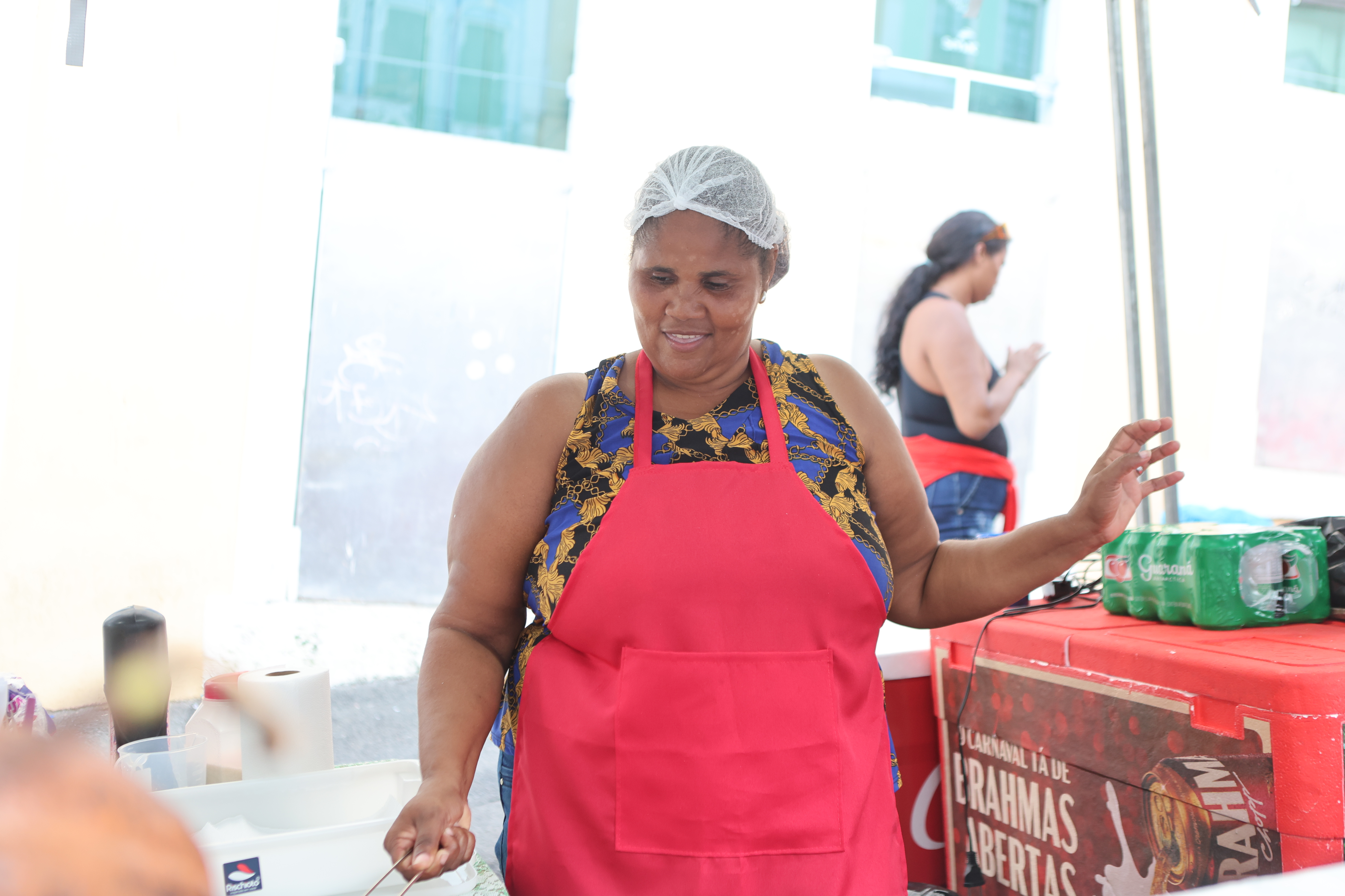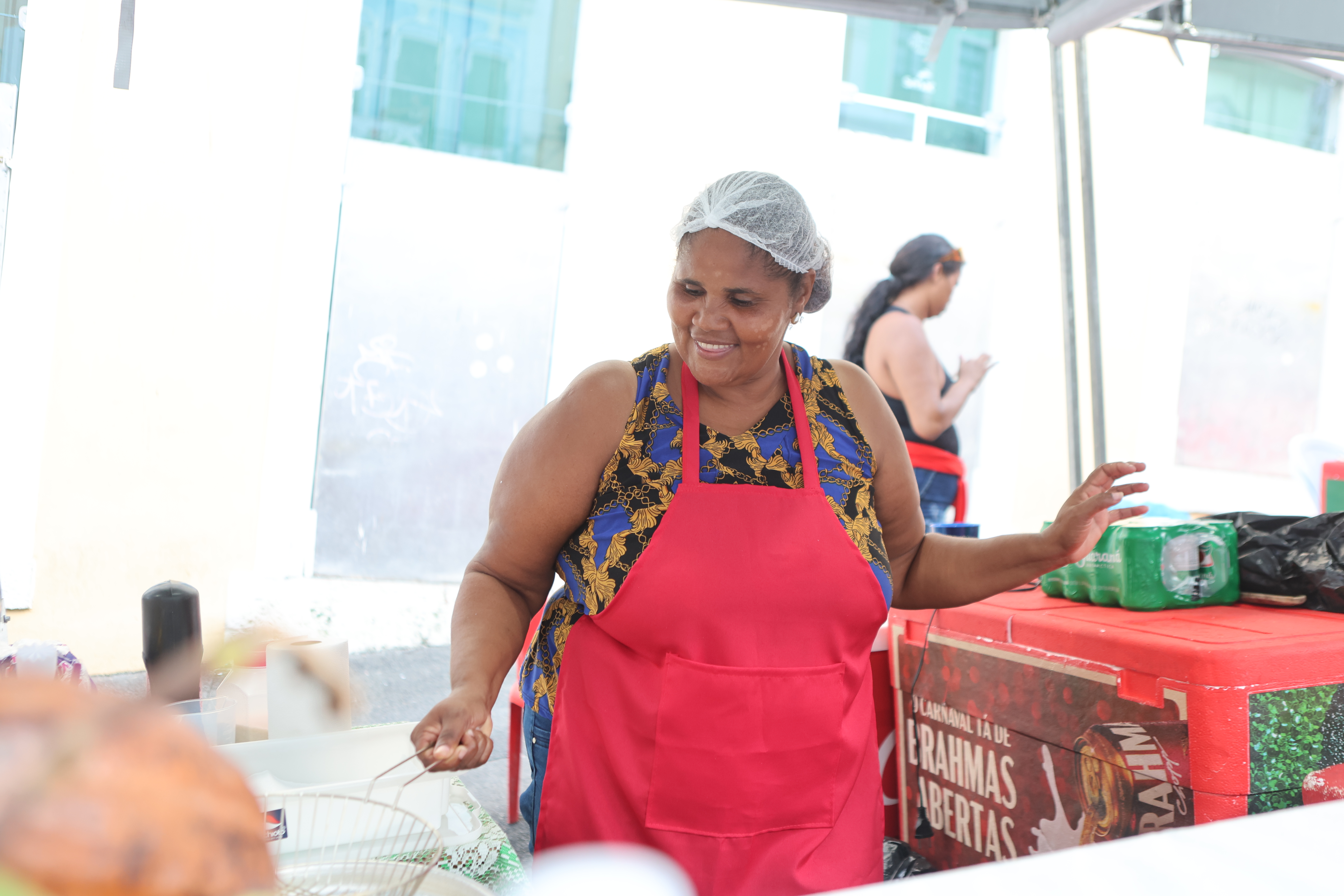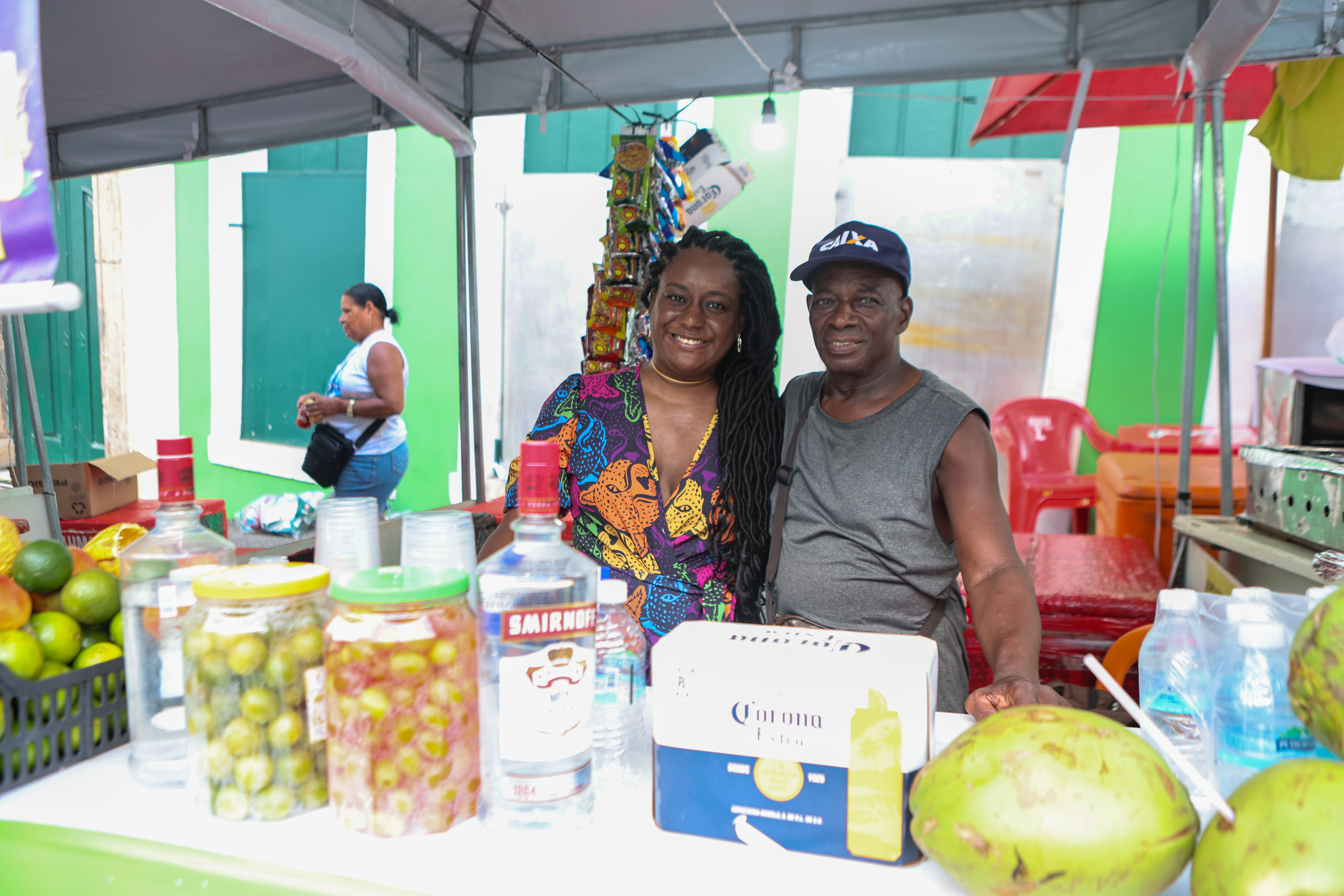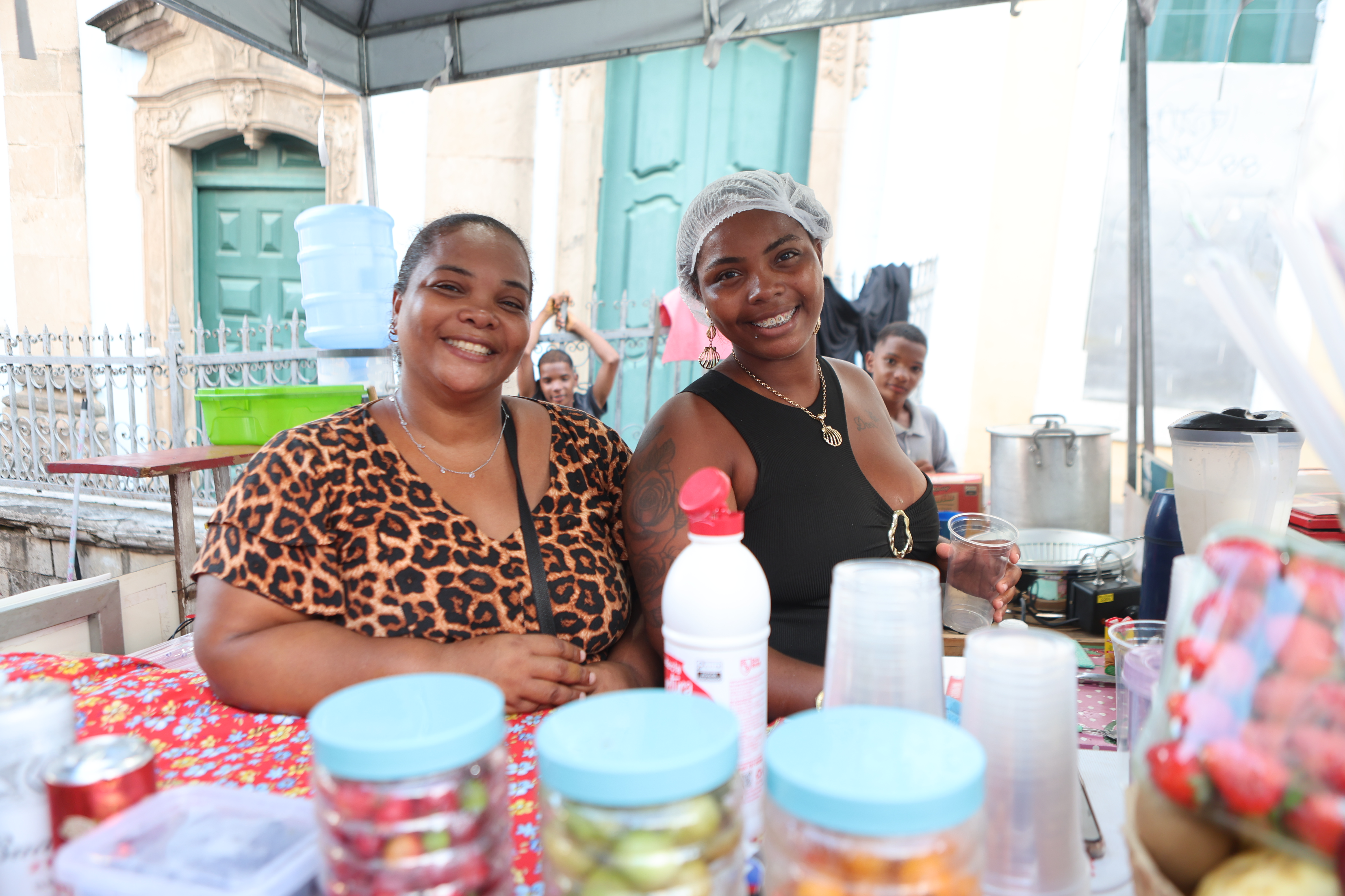 No mesmo clima, Elaine Santos da Silva, 38 anos, mãe solo, celebra o reconhecimento. “Eu amei ter o nome na barraca. Hoje, o governo da Bahia nos presenteou com nossa própria barraca e isso já garante que os clientes se lembrem e voltem. Estamos oferecendo coquetéis, caipirinhas, cerveja, água de coco -  um pouco de tudo”, destaca, acompanhada dos filhos.