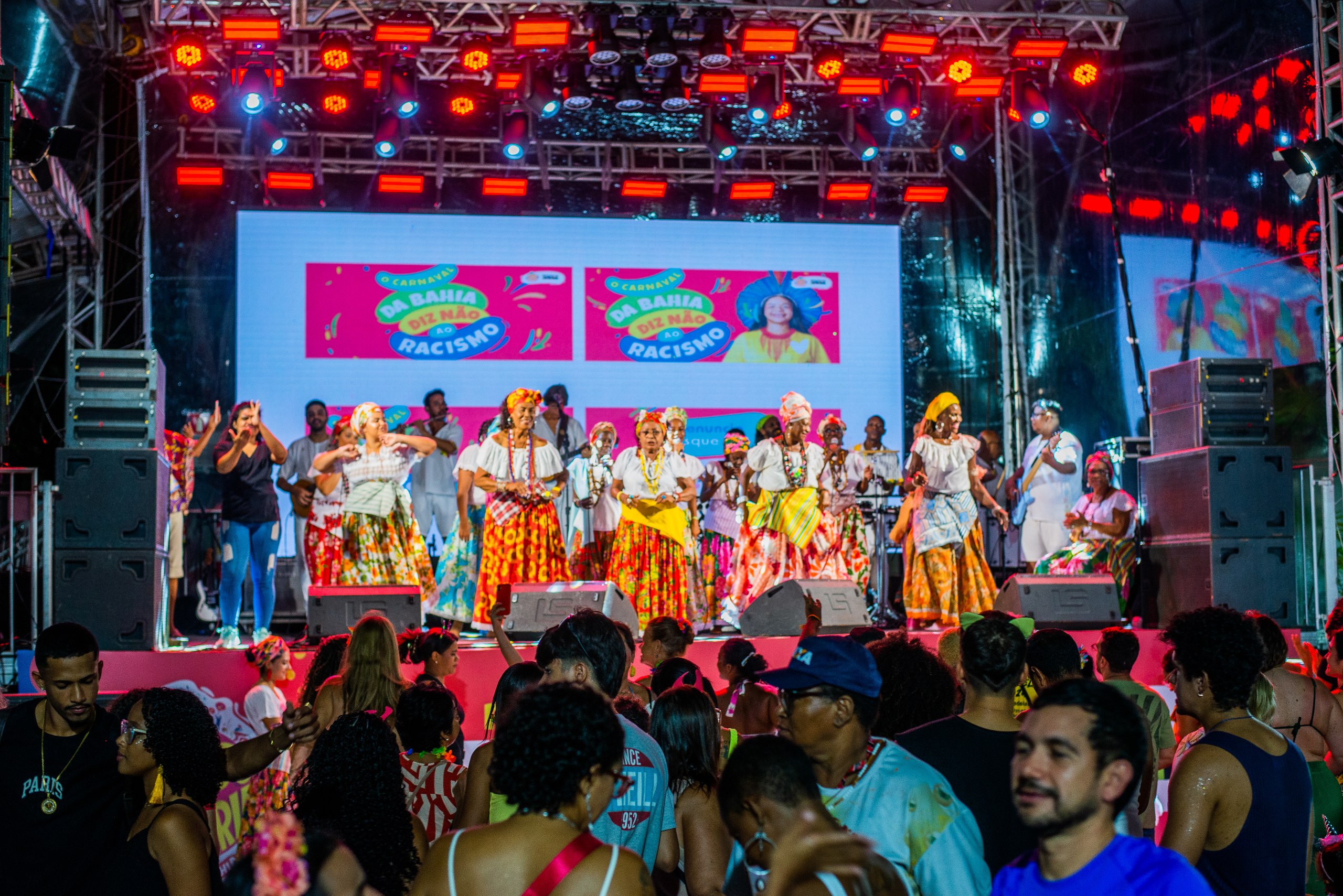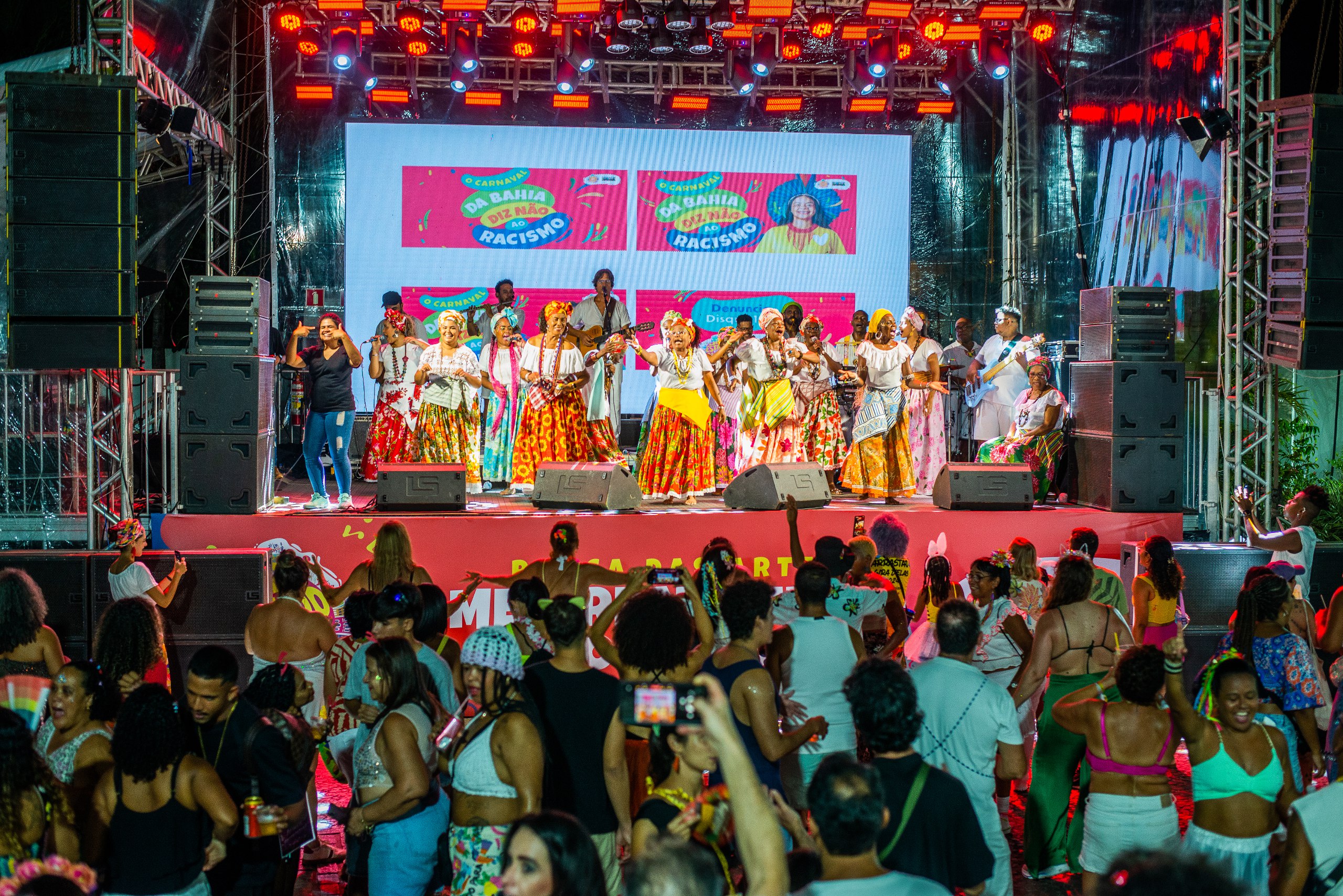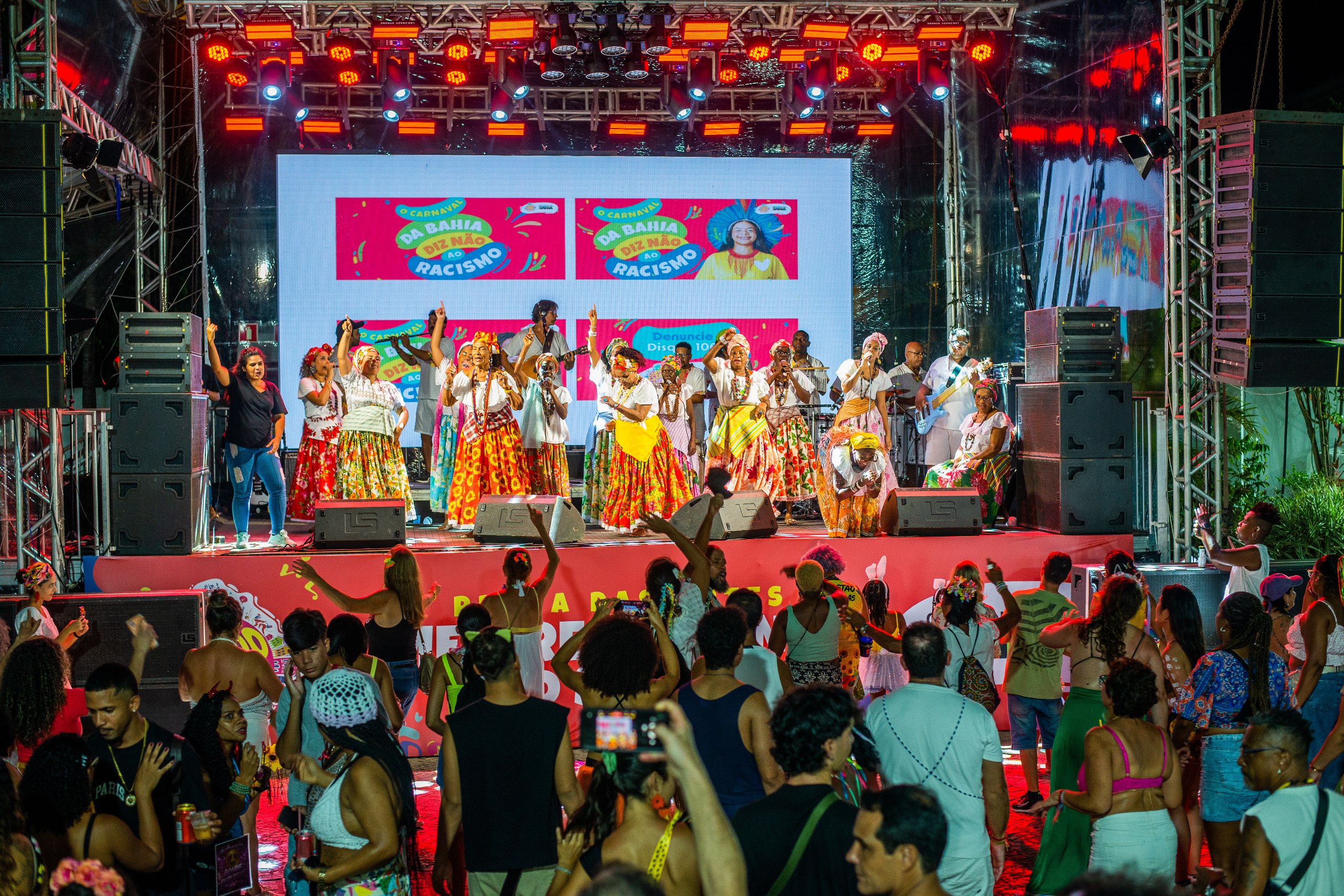 Durante o show das Ganhadeiras de Itapuã, na Praça das Artes Mestre Neguinho do Samba, nesta sexta-feira (13), a diversidade se fazia ainda mais presente. No palco, senhoras compartilhavam o espaço com músicos jovens em uma sintonia que conquistou o público desde o início. A foliã Fátima Menezes concorda com o Secretário e também exalta a diversidade como um dos principais atrativos do local: “Sempre pulo Carnaval no Pelourinho. Acho o melhor lugar do circuito. Primeiramente, me atrai a tranquilidade, a diversidade, o espaço amplo e agradável, além das atrações maravilhosas. Enfim, é tudo o que eu gosto.” Ela ainda celebra a presença das Ganhadeiras de Itapuã na programação local: “É a manifestação mais tradicional e autêntica da Bahia. O que ouvimos no trio, o que ouvimos no axé, é a raiz. Eu gosto da raiz”.