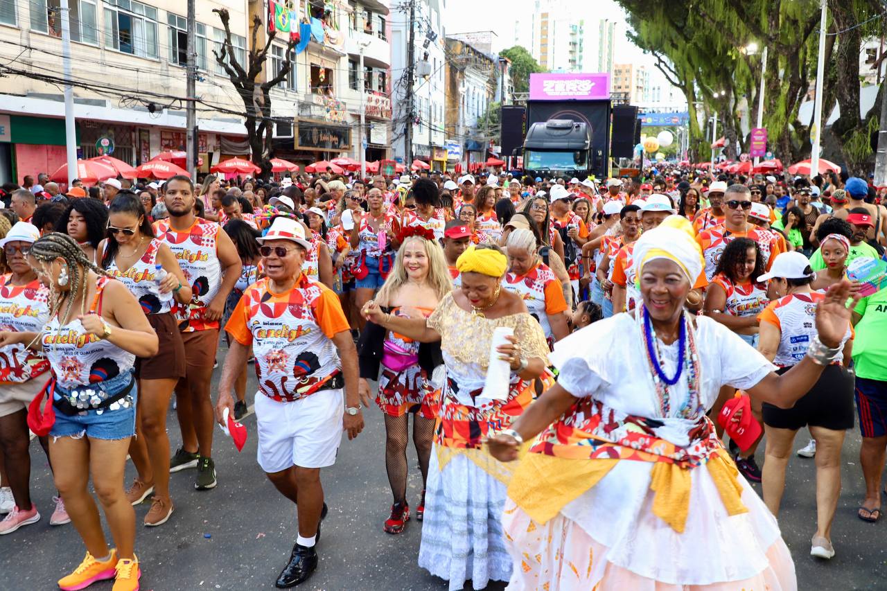 O Bloco Canelight desfilou na tarde deste sábado (14), no Circuito Osmar (Campo Grande), levando para a avenida o tema “Minha África de Ouro, minha Bahia do Axé. É o samba na ponte da ancestralidade”. Com um cortejo marcado pela valorização das raízes do samba e da cultura afro-baiana, o bloco reuniu foliões de diferentes gerações em um desfile de celebração, memória e pertencimento.