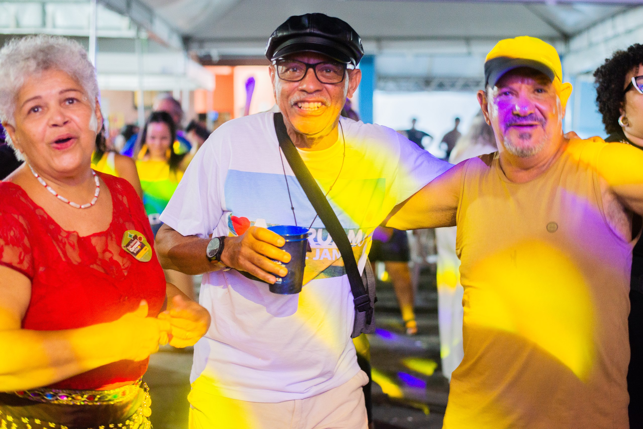 Pela terceira vez na programação do Carnaval do Pelô, o show trouxe diferentes matrizes sonoras da música baiana, conectando ritmos e movimentos culturais que atravessam gerações. Do samba-reggae ao ijexá, samba afro e “pagodão”, ninguém resistiu ao groove do trio, formado por artistas com trajetórias independentes que se unem para interpretar canções consagradas como hinos carnavalescos.