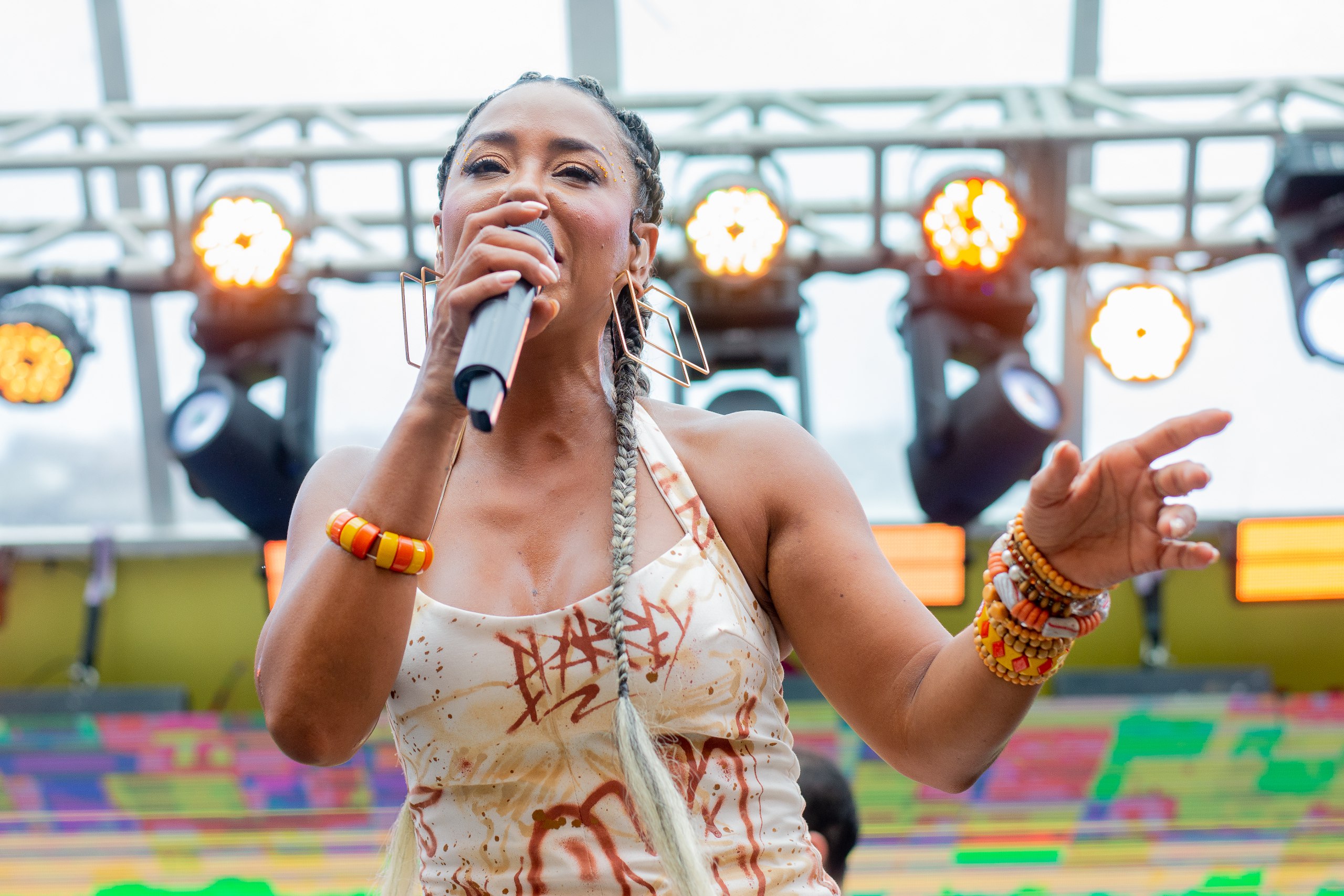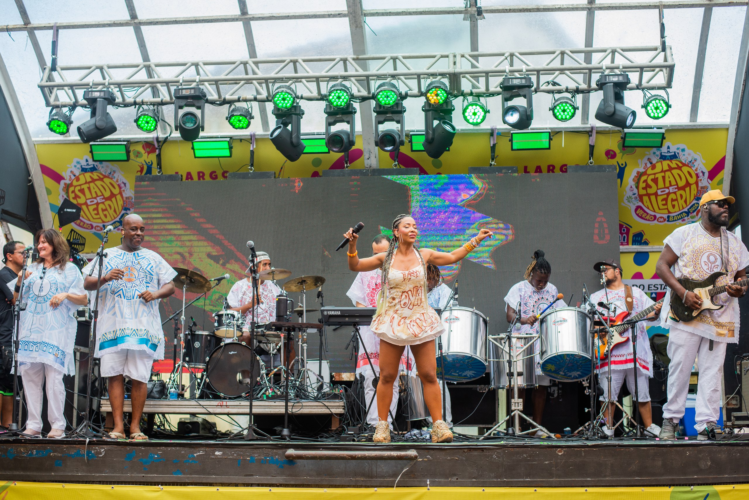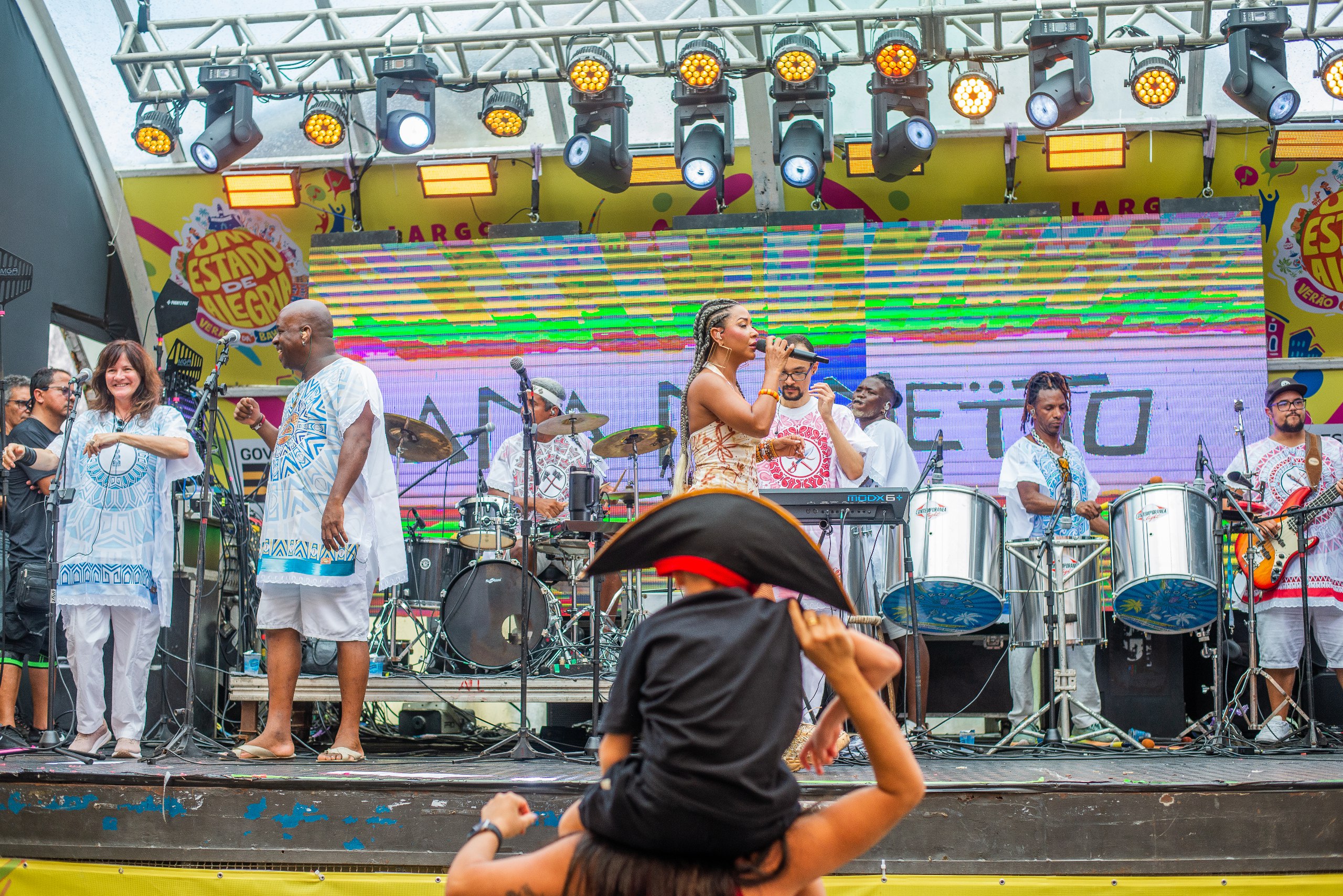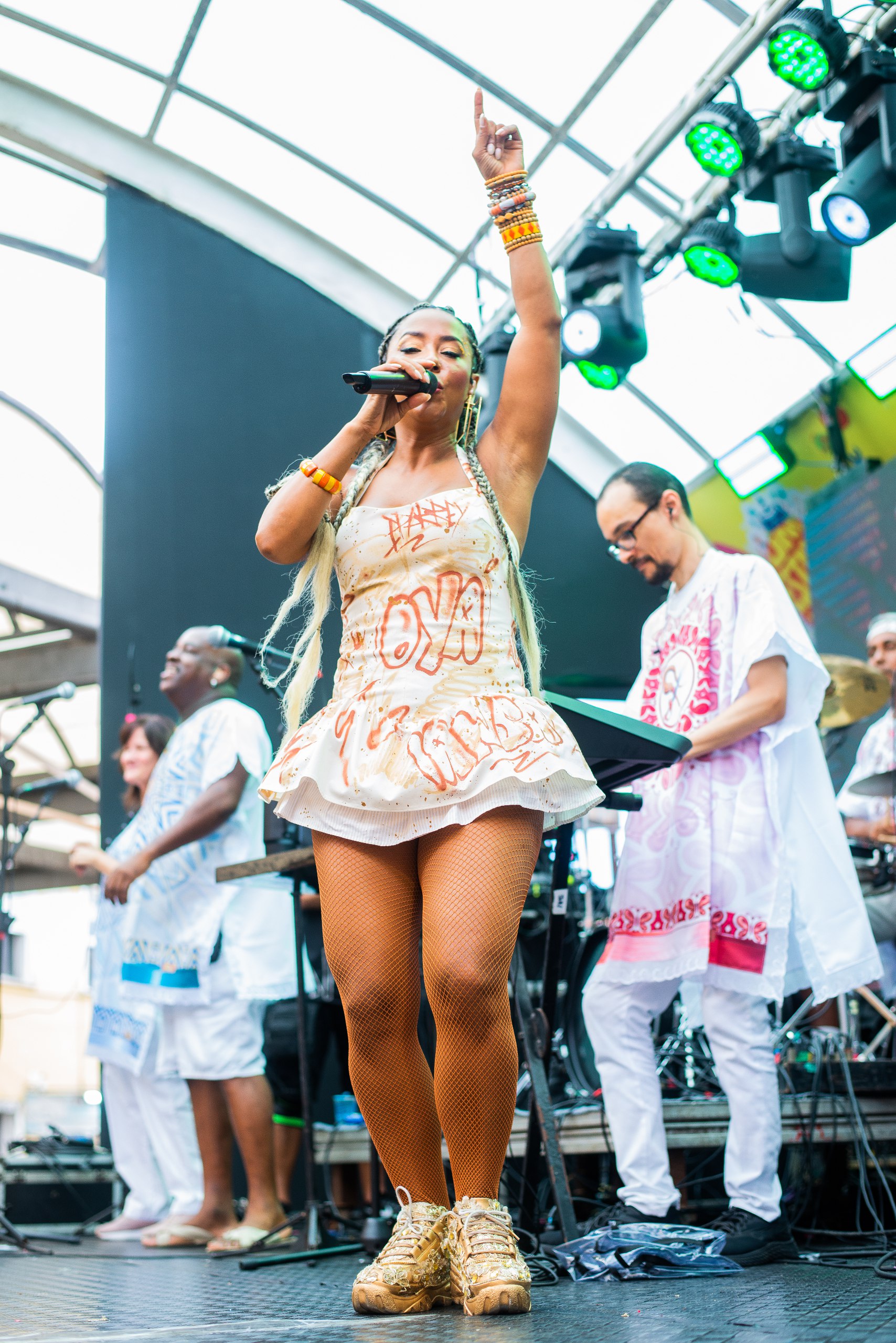 Batizada por Mateus Aleluia com nome de origem angolana, que significa “mãe de todos”, Ana levou ao Largo Tereza Batista um repertório dedicado à ancestralidade dos tambores e aos ritmos afro-brasileiros. Interpretou clássicos do Olodum, como “Deusa de Marrom” e “Rosa”, além de sambas de roda. “Toda essa influência, todos esses ritmos começam dentro dos terreiros. O Olodum é terreiro, o Pelourinho é terreiro, o axé da Bahia é terreiro, o Carnaval é terreiro”, explica.