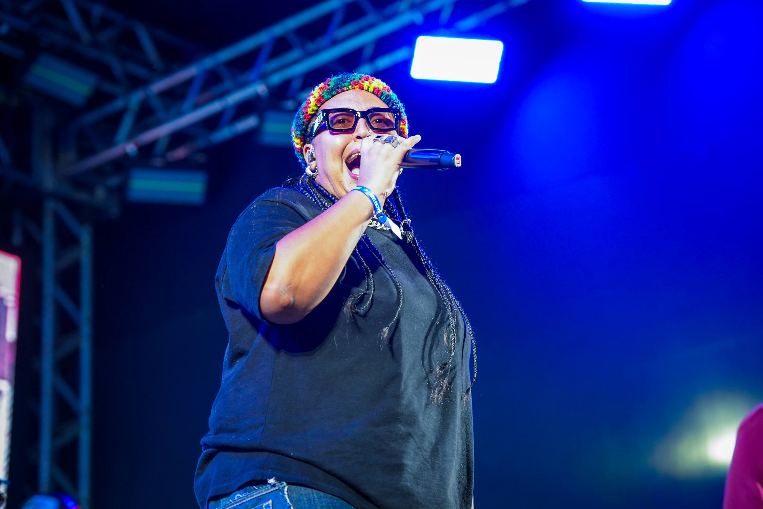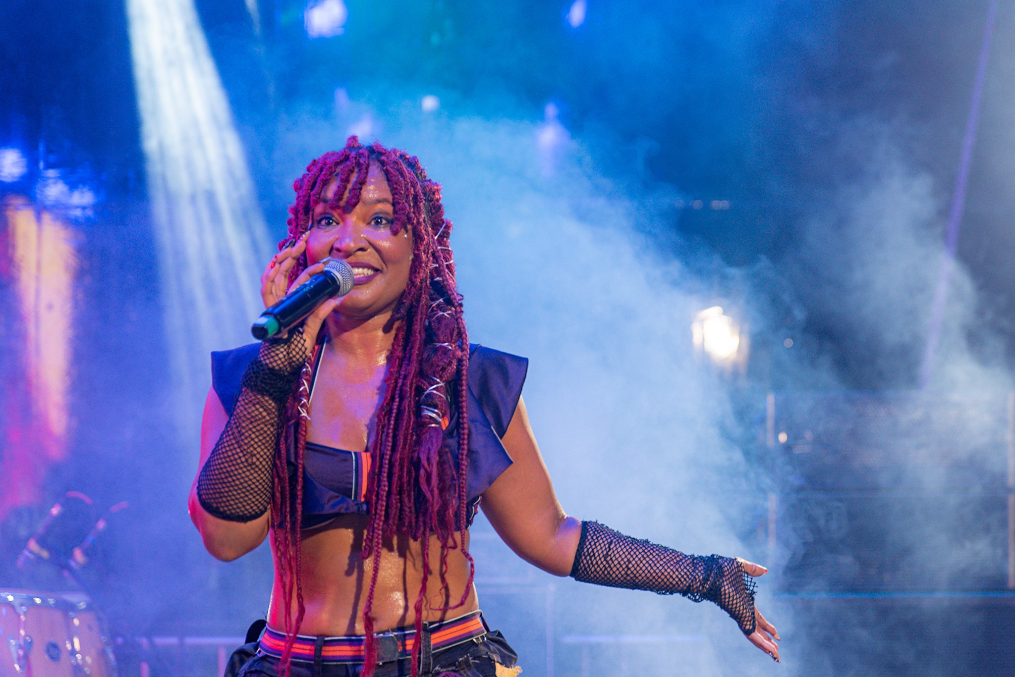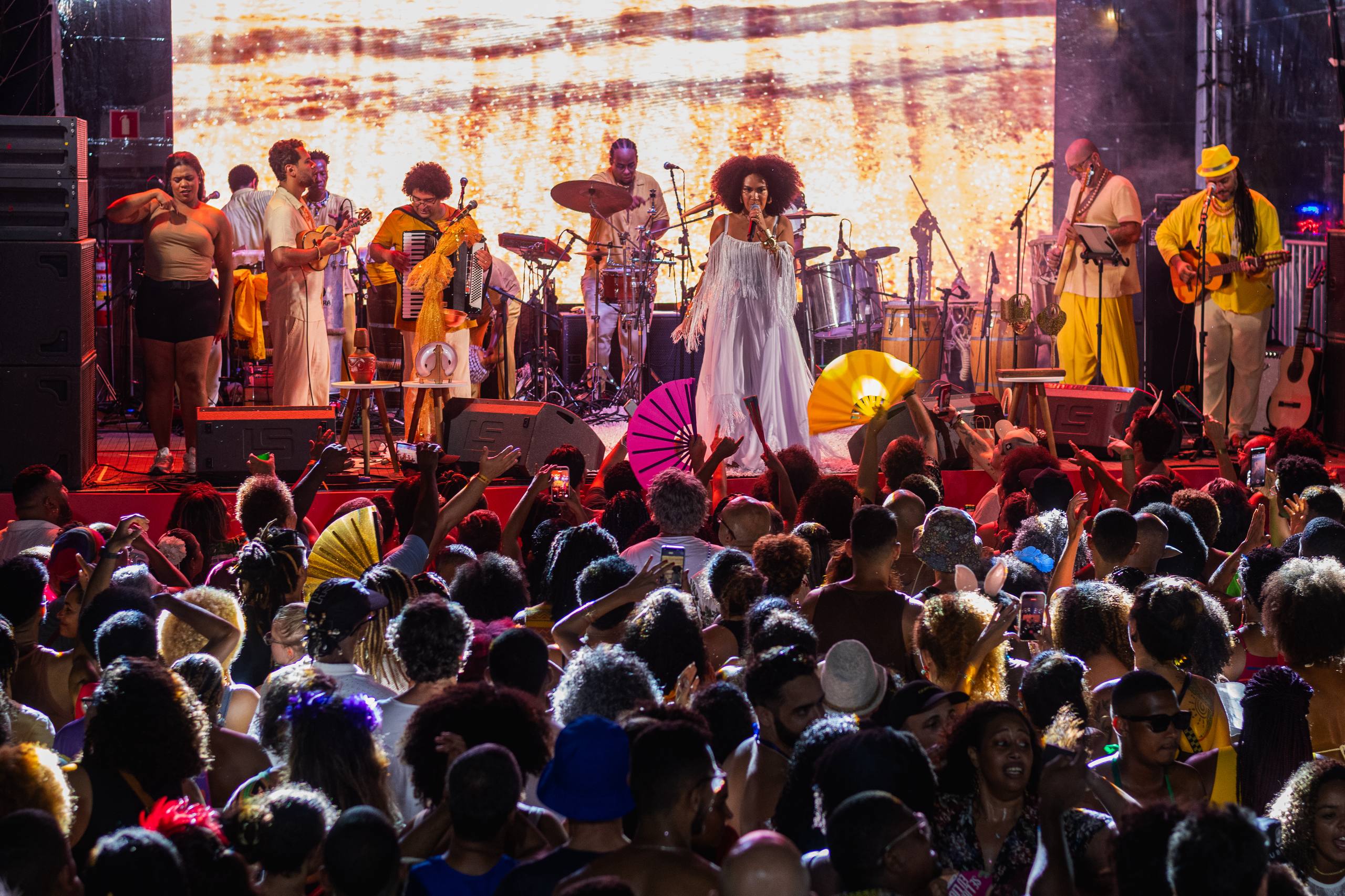 DIVERSIDADE MUSICAL – O pagode também teve vez no Largo Pedro Archanjo com Aila Menezes, uma das representantes do pagode feminino na Bahia. Ela apresentou músicas autorais como “Na Cara da Sociedade” e “Movimento Absurdo”, além de reverenciar a identidade das favelas com canções da Banda Fantasmão e de Igor Kannário.