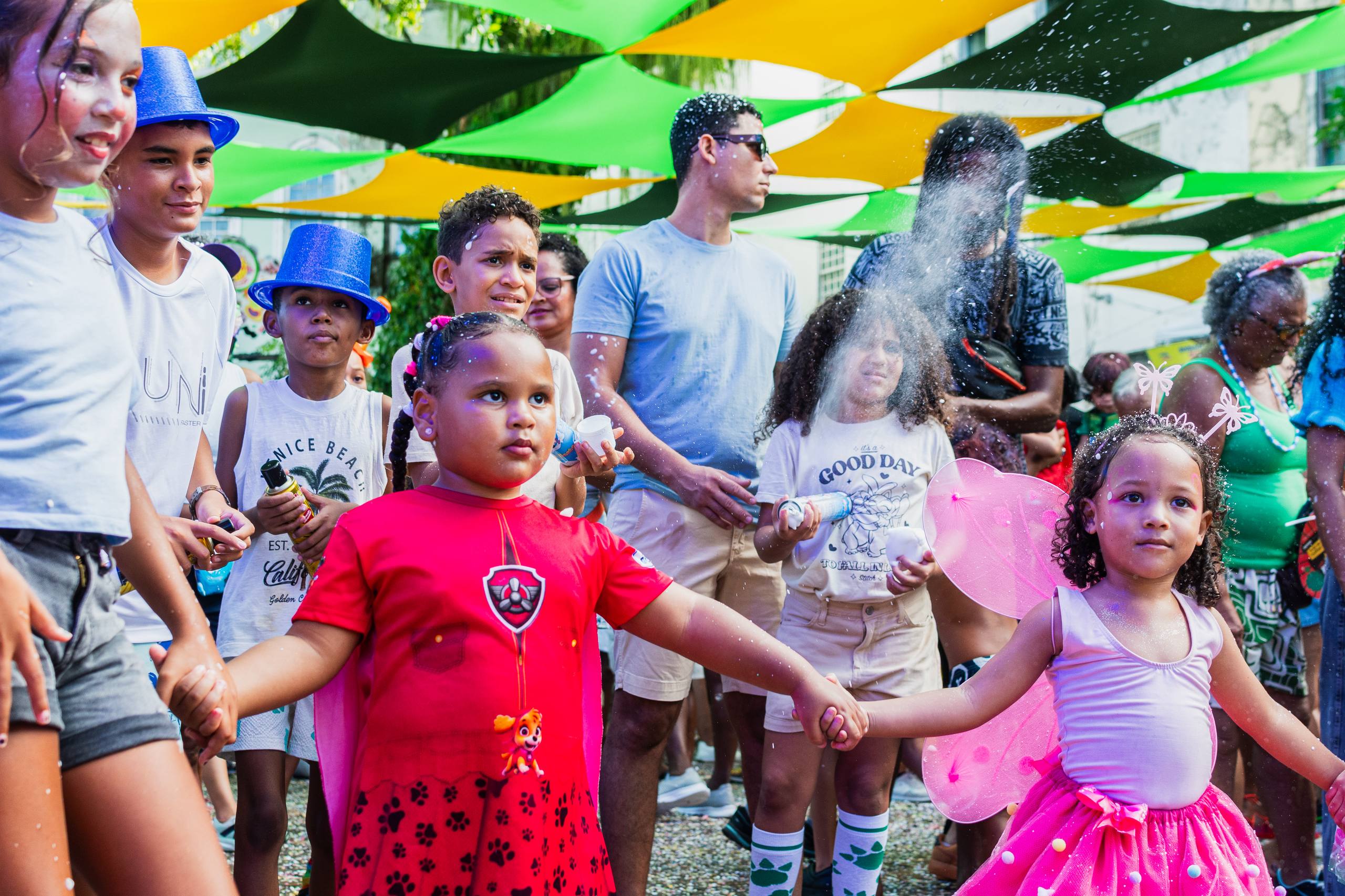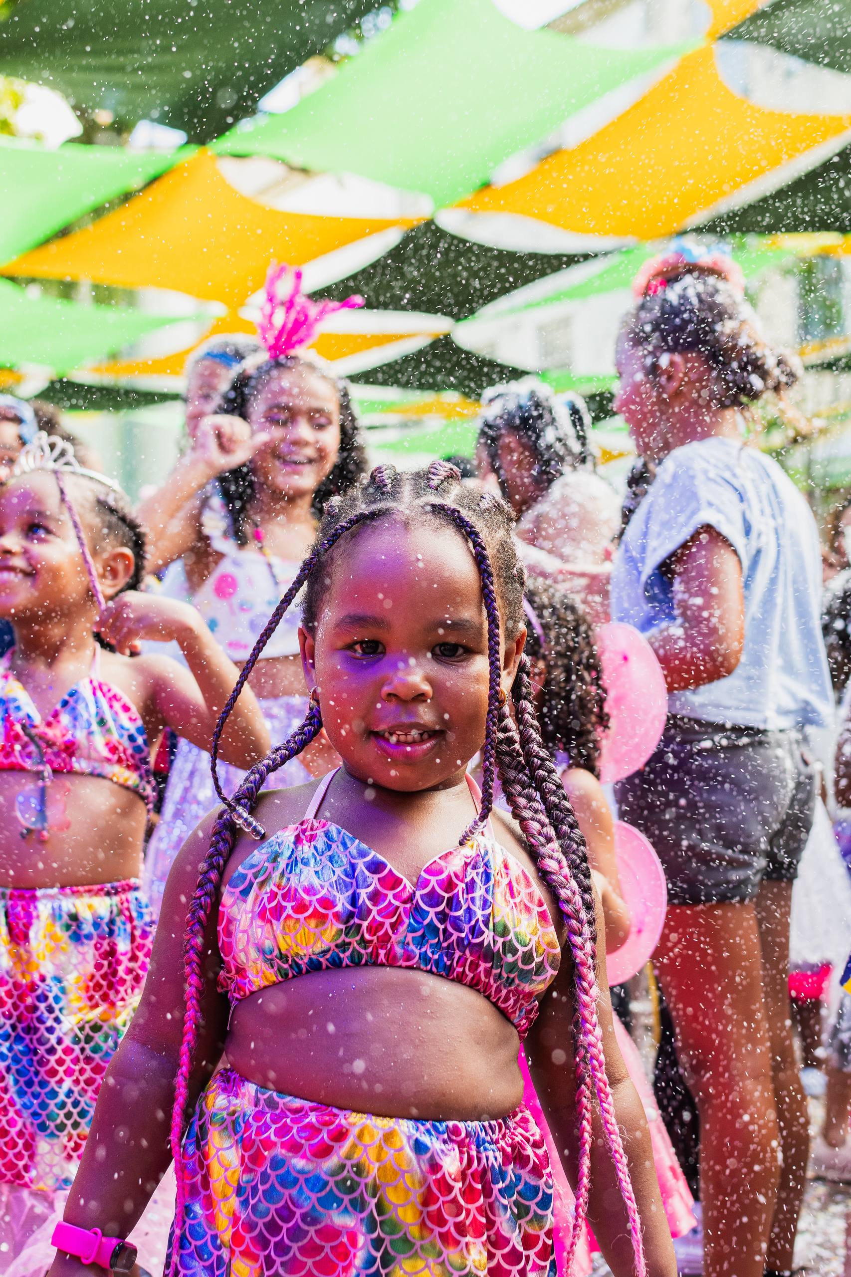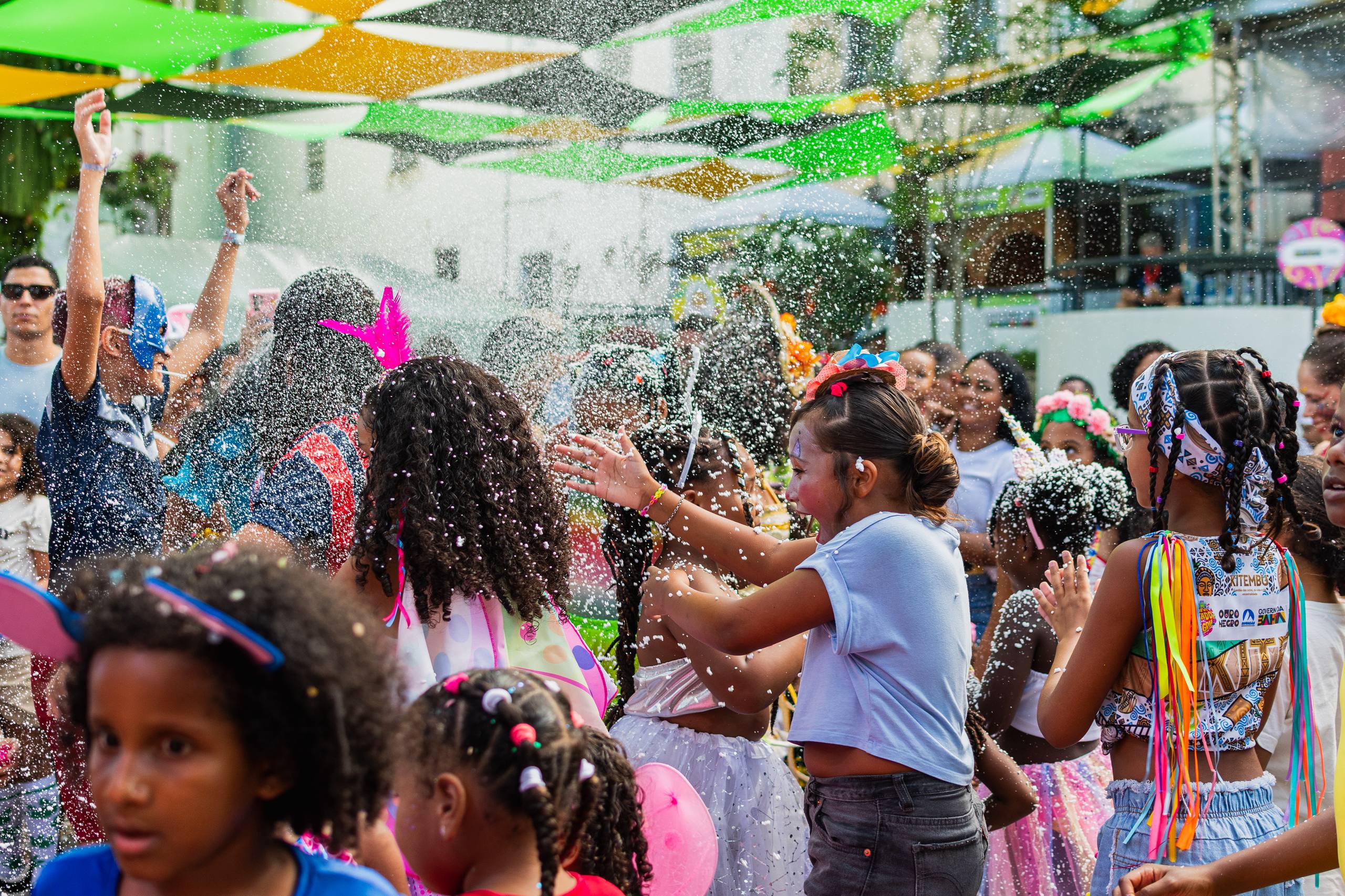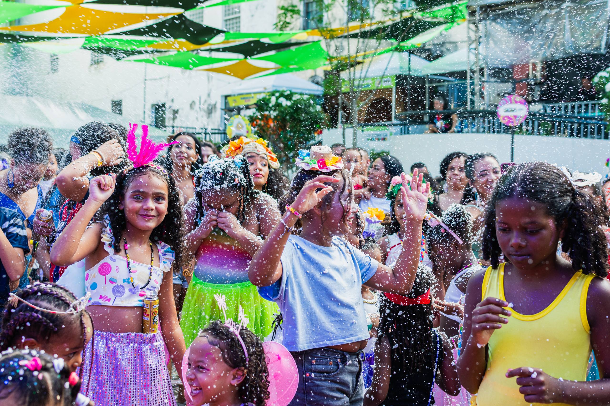 Seguindo a programação dedicada aos pequenos foliões, o Grupo Canela Fina levou alegria à Praça das Artes Mestre Neguinho do Samba, na tarde de domingo (15). A festa começou com uma oficina de bolhas de sabão gigantes, realizada em parceria com a Borbulhando. Em seguida, os artistas deram início ao Baile Infantil do “Carnaval da Bahia: Um Estado de Alegria”, com participação intensa do público nas danças e brincadeiras.