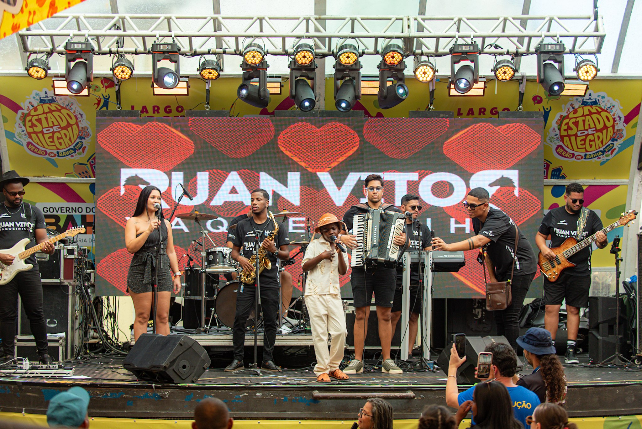 Para Dinalva Santana, 34 anos, que trouxe o marido e a filha Sofia, de 11 anos, é emocionante estar no Pelourinho. “O show está perfeito. Vaqueirinho toca no coração e faz arrepiar com sua voz. Meu marido é muito fã.”