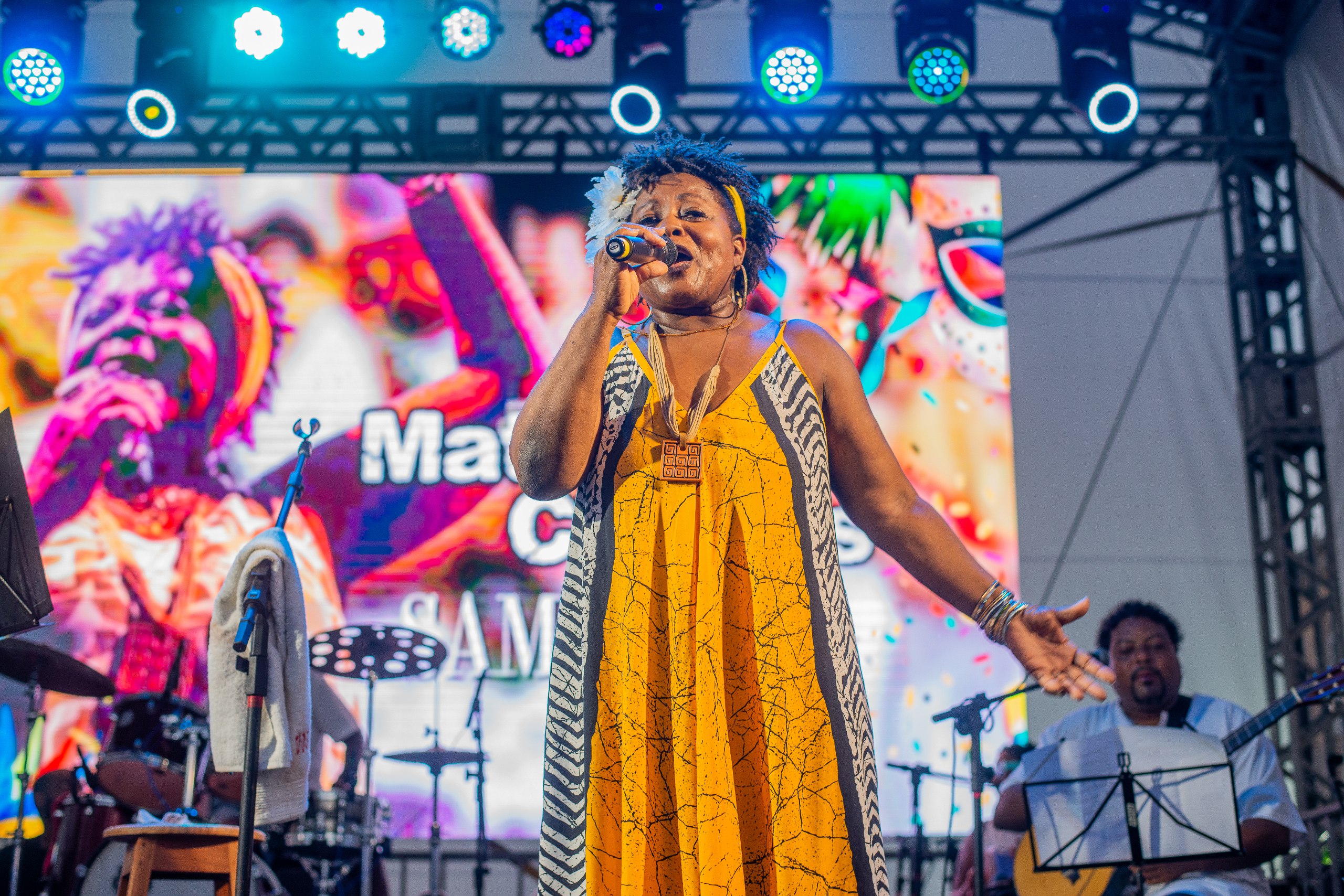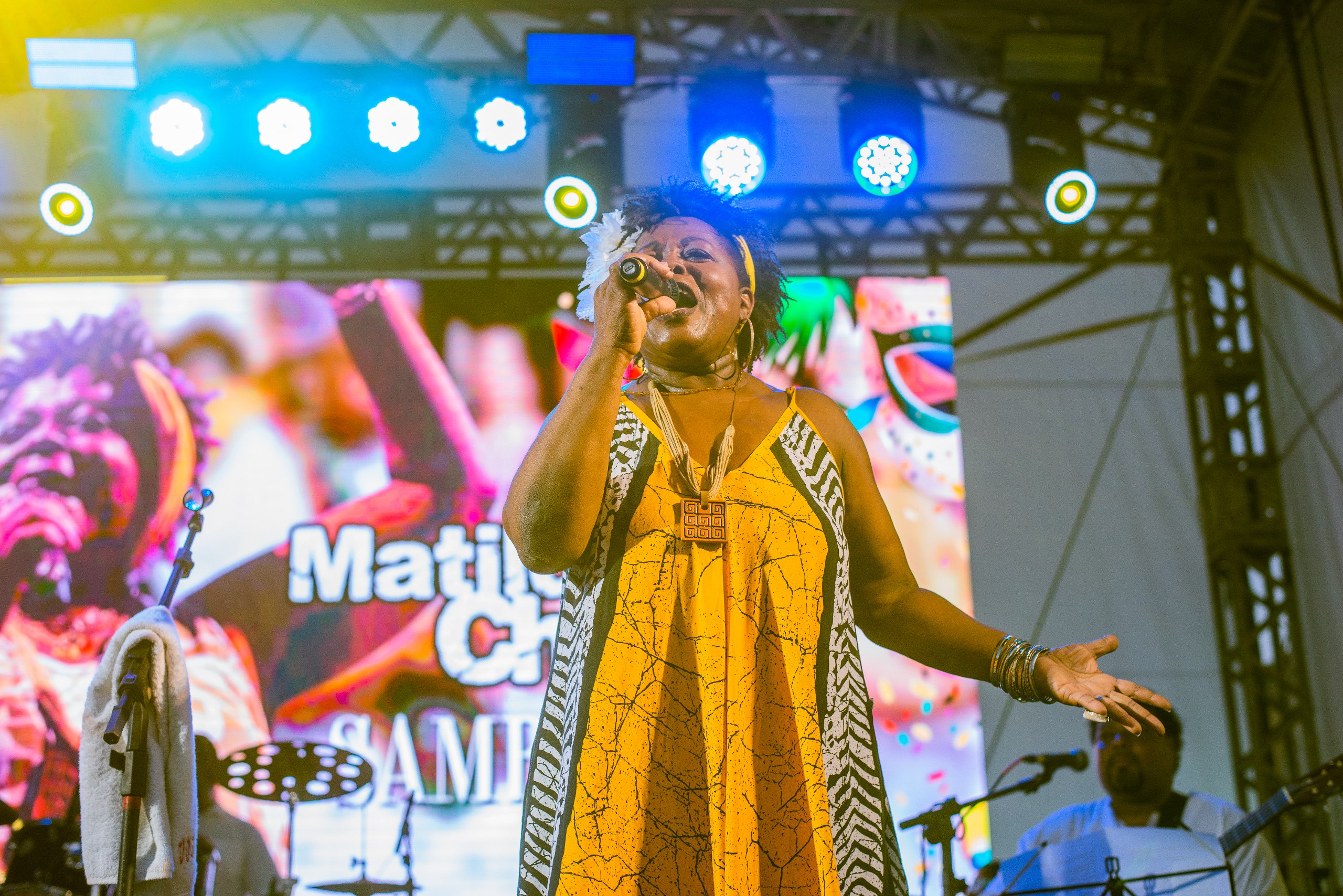 Reconhecida na cena artística de Salvador por seu trabalho voltado à valorização das raízes afro-brasileiras, Matilde apresentou um show que foi além da celebração musical. Entre uma canção e outra, ela contextualizou o percurso do samba até sua consolidação na Bahia, destacando o papel do ritmo como expressão de resistência e identidade. Para ela, o samba é memória viva que precisa ser contada.