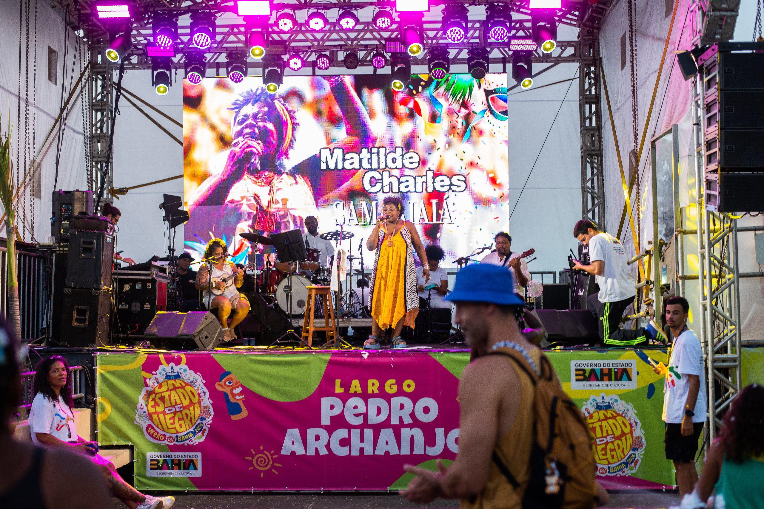 A comemoração aos 110 anos do samba no Brasil deu a nota da apresentação da cantora Matilde Charles, na tarde deste domingo (15), no Largo Pedro Archanjo. A artista apresentou o projeto Sambaiaiá, dedicado inteiramente ao gênero que sustenta a história e a identidade do carnaval de Salvador.