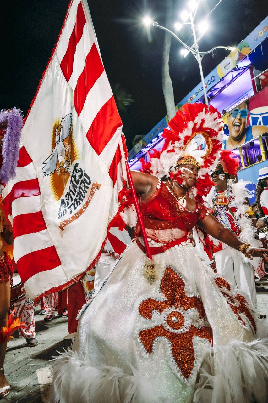 A beleza das baianas encantava a todos que assistiam à passagem do Apaxes do Tororó na passarela Nelson Maleiro. Maquiadas, bem arrumadas e animadas, elas dançavam e esbanjavam carisma no Carnaval 2026.