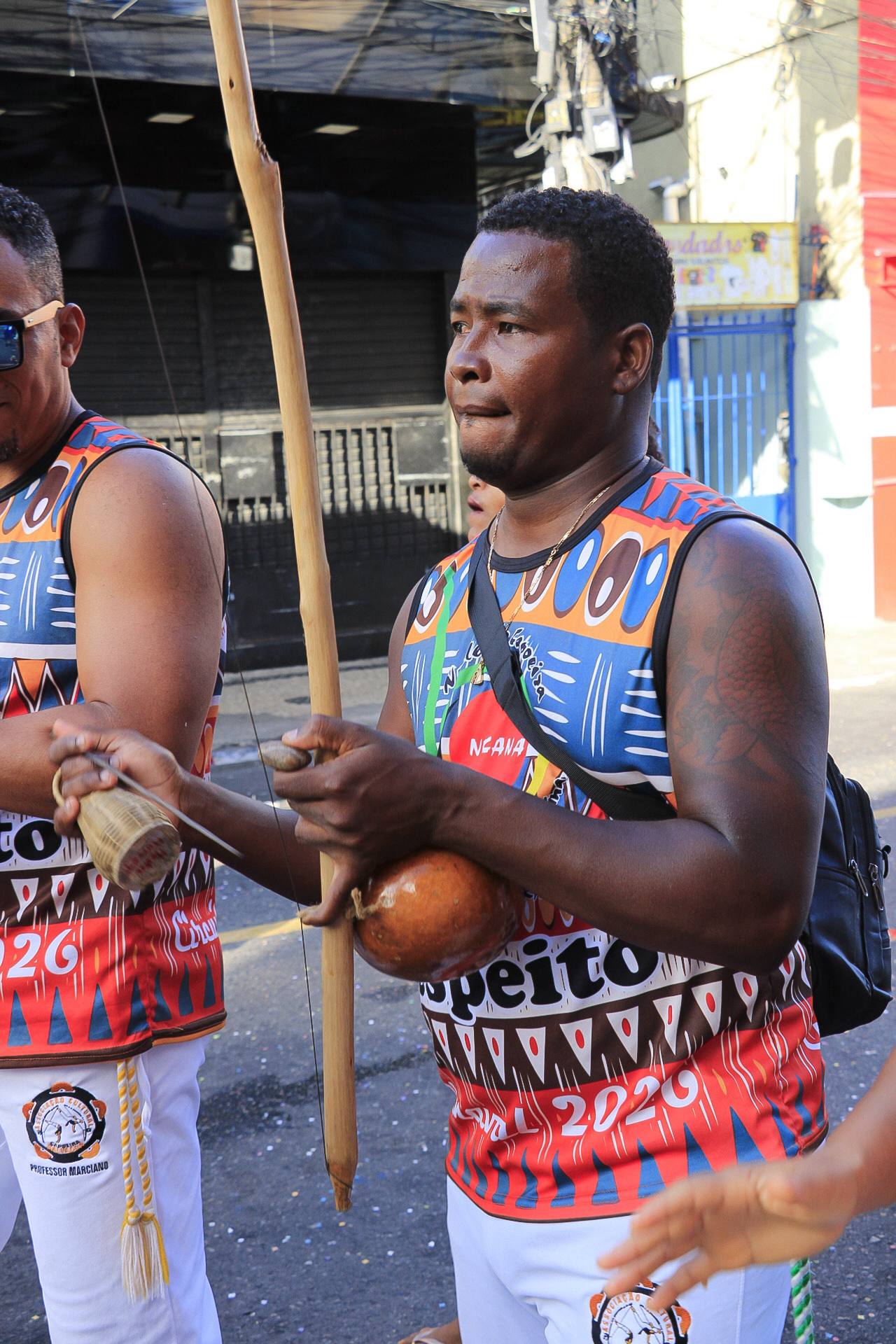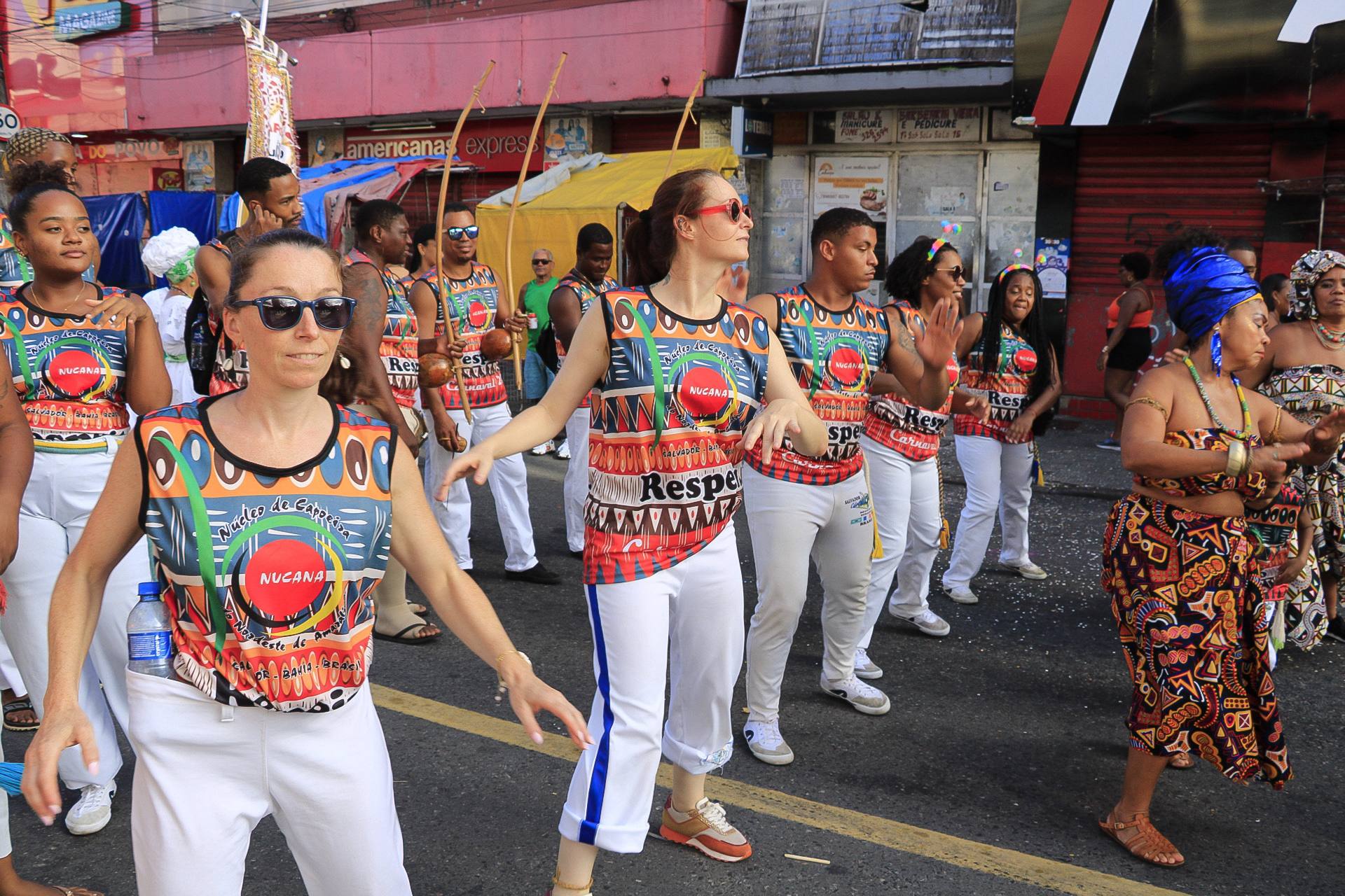O bloco do Núcleo de Capoeira do Nordeste de Amaralina, mais conhecido como Nucana, percorreu o circuito Mãe Hilda Jitolu neste domingo de carnaval (15). Fundado em 2005, o grupo promove a capoeira e celebra a cultura afro-brasileira, realizando desfiles e eventos que valorizam a tradição e a resistência cultural da comunidade. Roda de capoeira, dança afro, maculelê, samba e toda a musicalidade embalada pelo som dos berimbaus marcaram a apresentação, interagindo com a comunidade e aproximando a população de ambas as localidades.