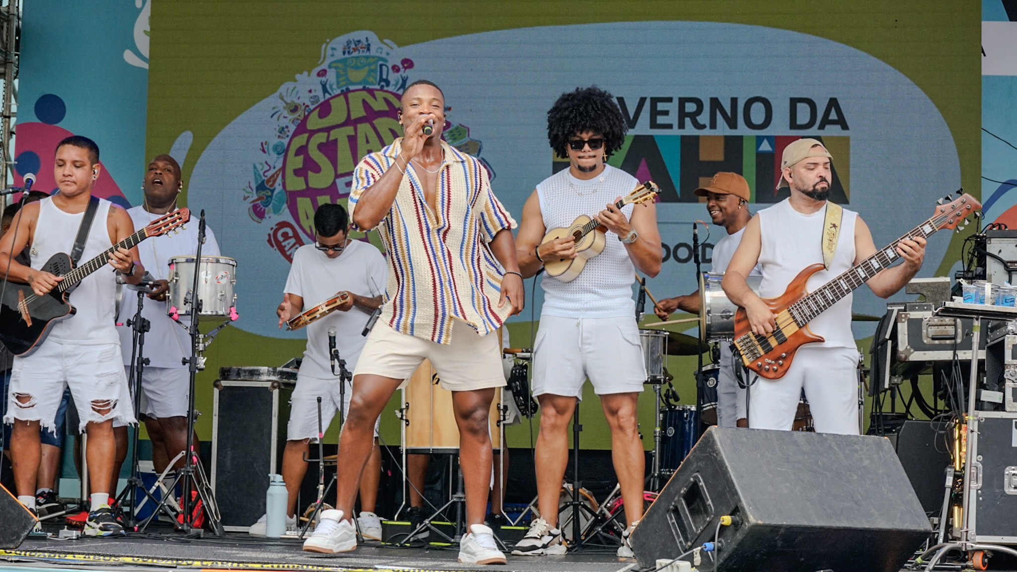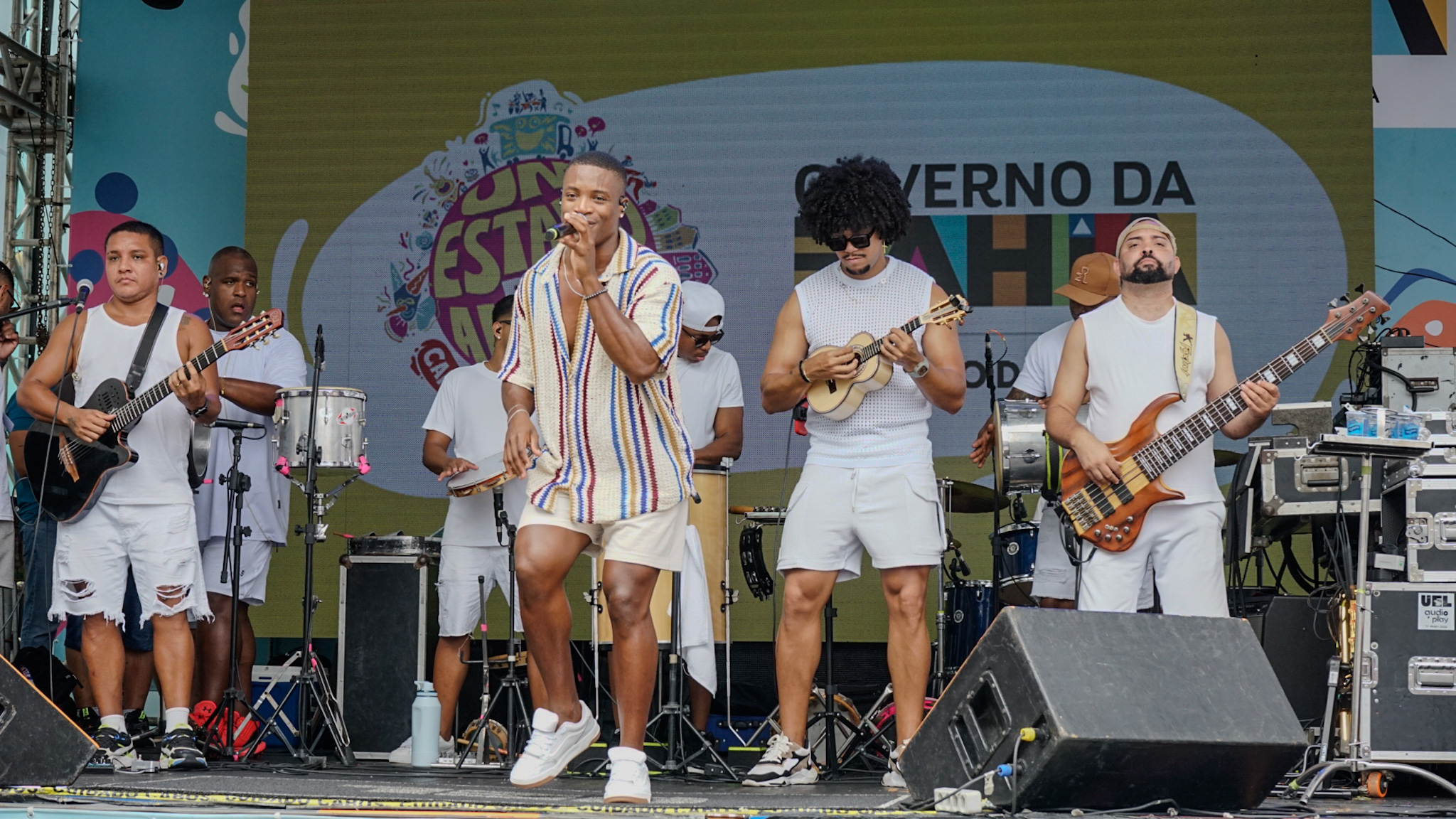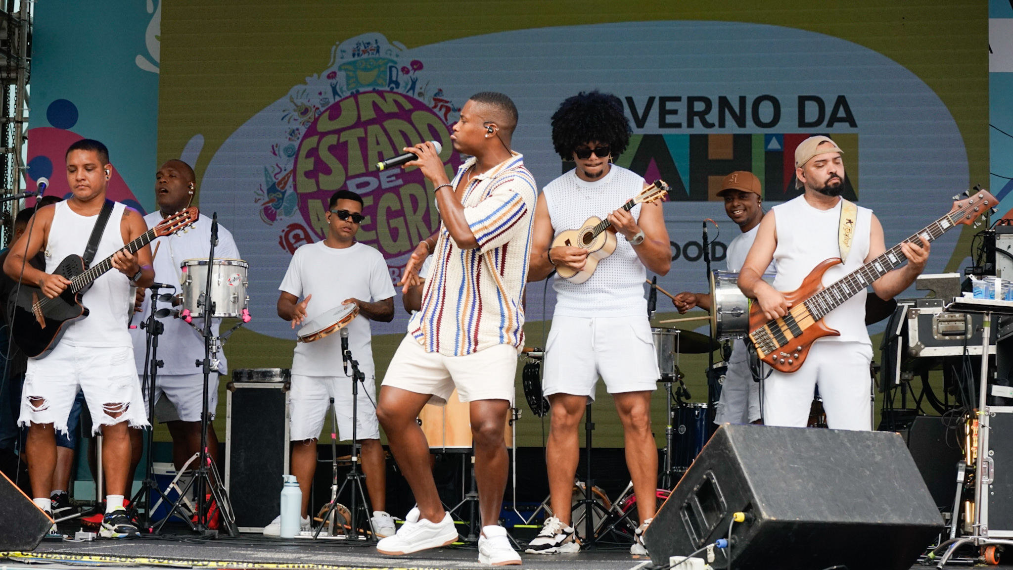 Carismático e cheio de energia, o cantor e compositor iniciou o show com entusiasmo. “Muito feliz de estar aqui hoje para trazer um pagode para vocês”, compartilhou, celebrando a oportunidade de participar de mais uma edição da festa no Centro Histórico de Salvador.