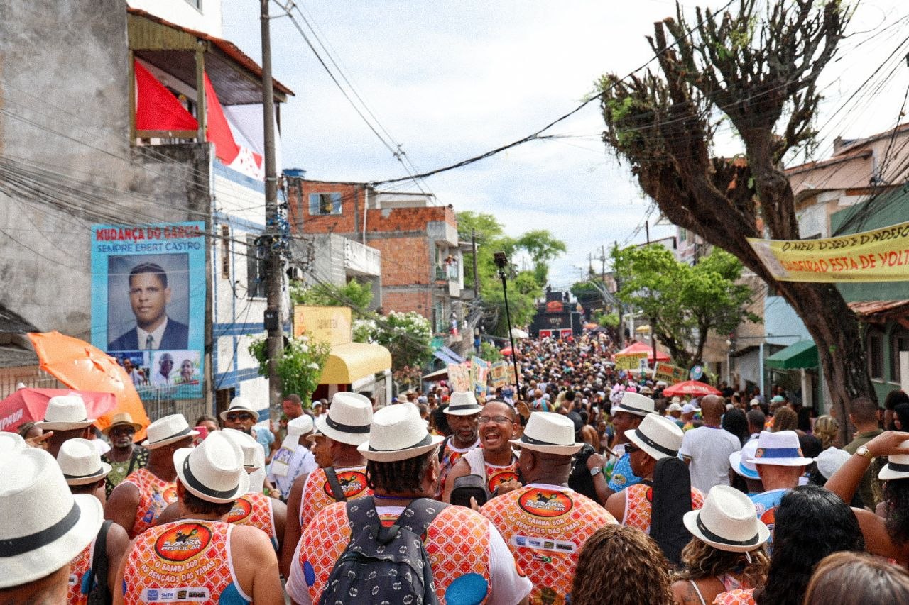 O Arrastão do Samba Popular levou ritmo, cultura e inclusão social ao circuito Riachão durante a tradicional Mudança do Garcia, nesta segunda-feira de Carnaval. Com aproximadamente 500 participantes entre associados e admiradores do samba, o bloco reuniu foliões de diferentes bairros em um cortejo marcado pela valorização da cultura popular e pela celebração do samba baiano.