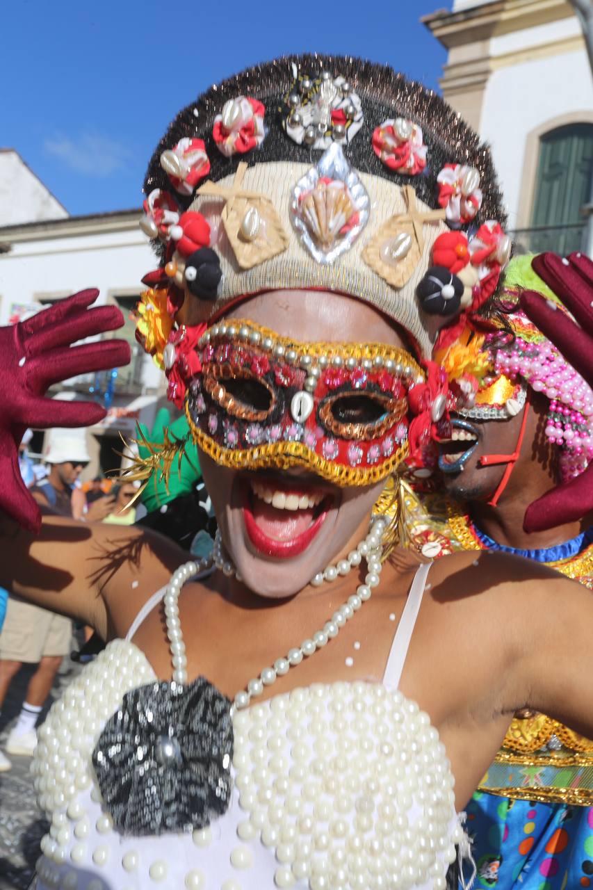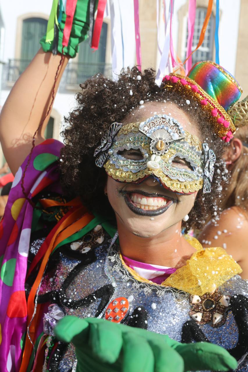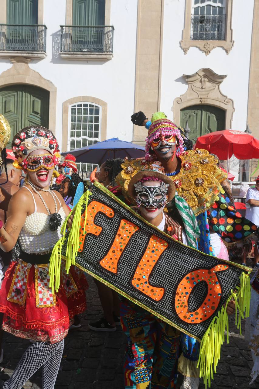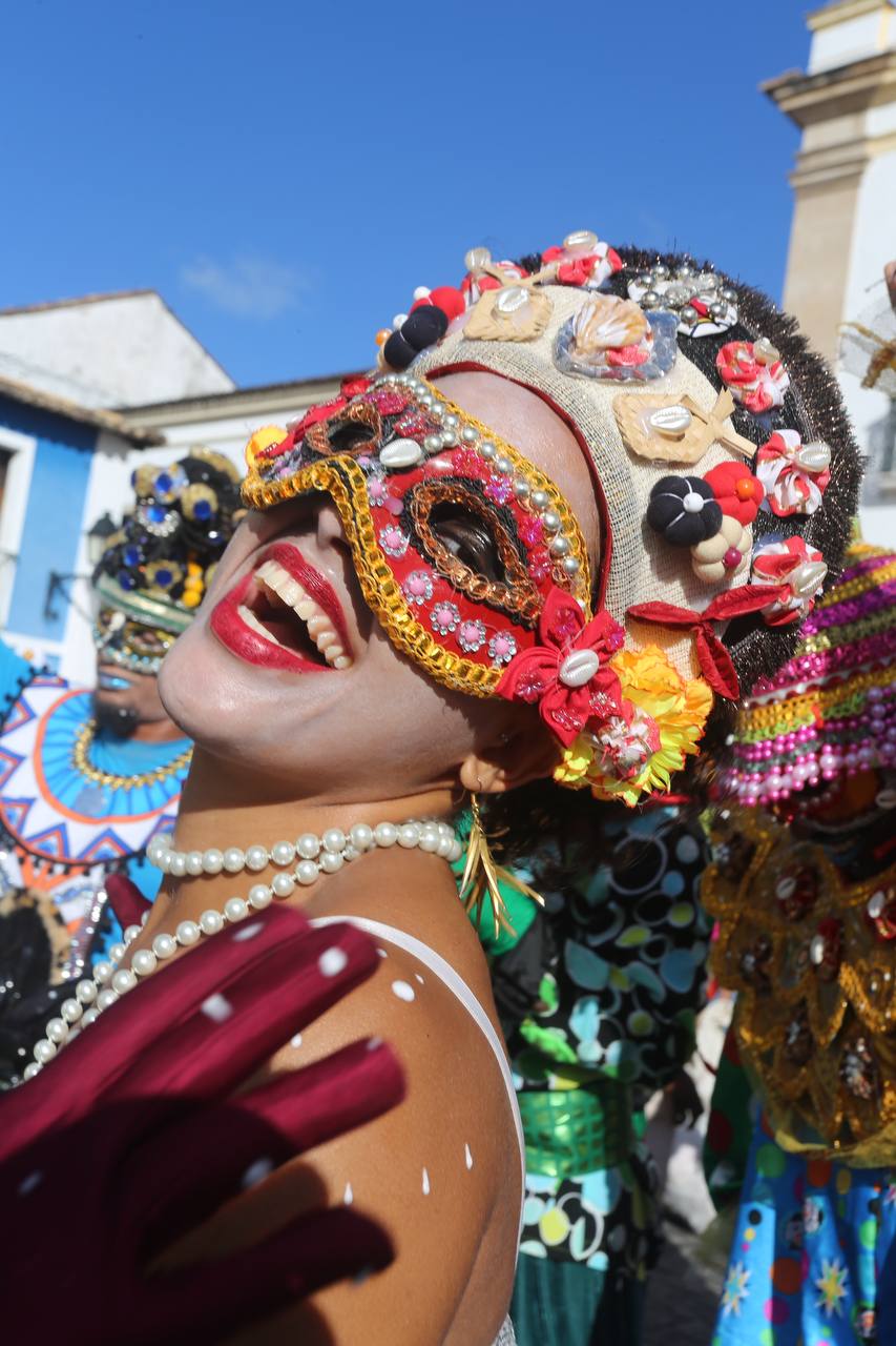 Despertando o encantamento com a magia da folia momesca, grupos desfilaram no Carnaval do Pelô coloriram as ruas do Pelourinho neste domingo (15). Com máscaras escondendo todo o rosto, chapéus de duas pontas e trajes de cetim em azul e amarelo, o enigmático Pierrot Tradição de Plataforma chamou a atenção do público. Outra atração do dia foi a Filó Brincante, que também trouxe uma performance lúdica para divertir os foliões do tradicional circuito do Centro Histórico.