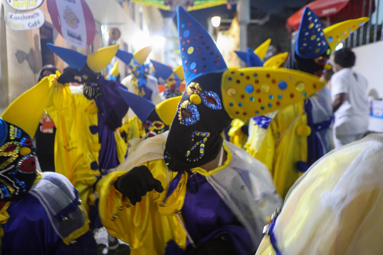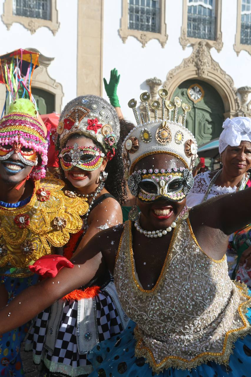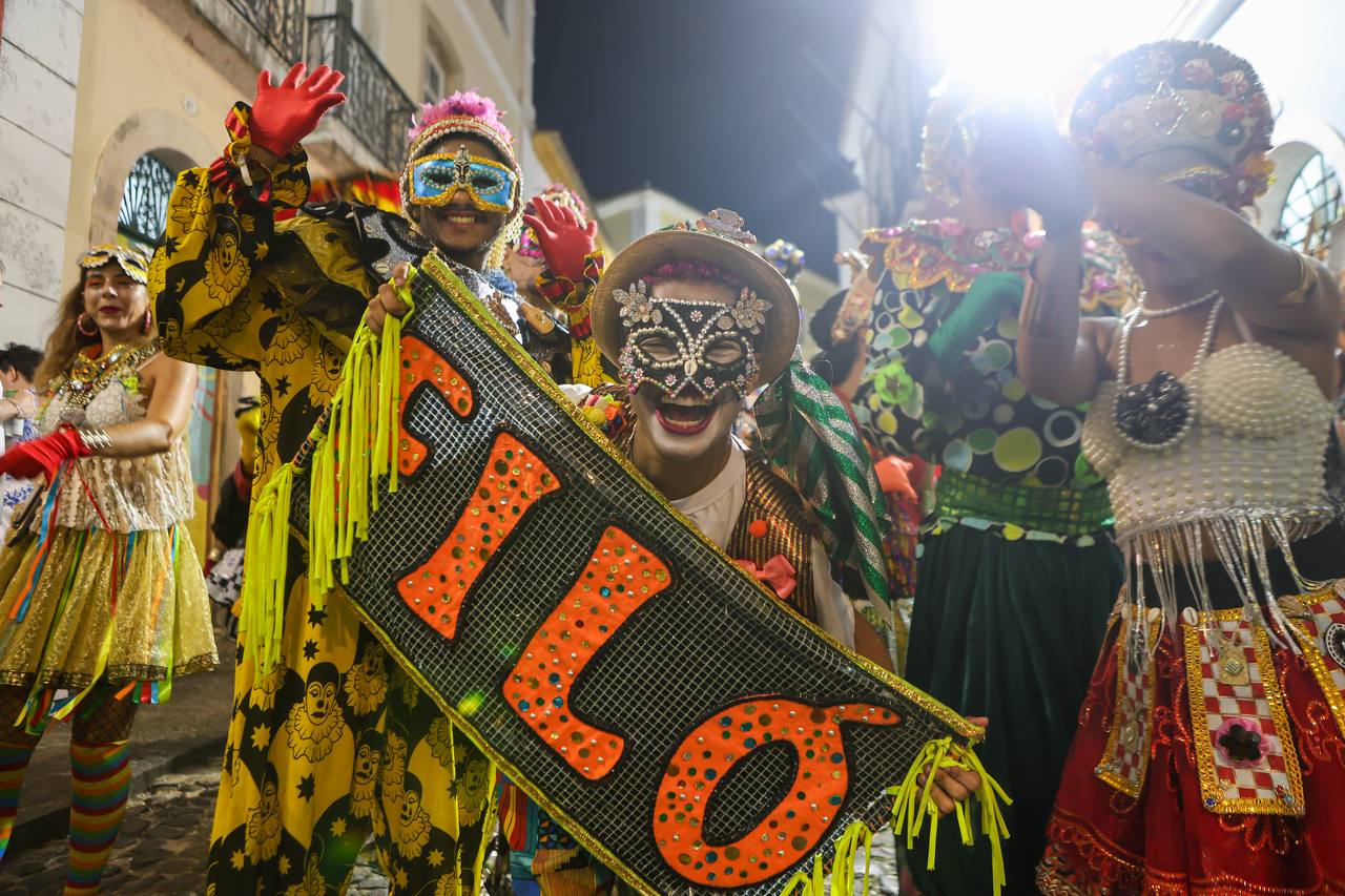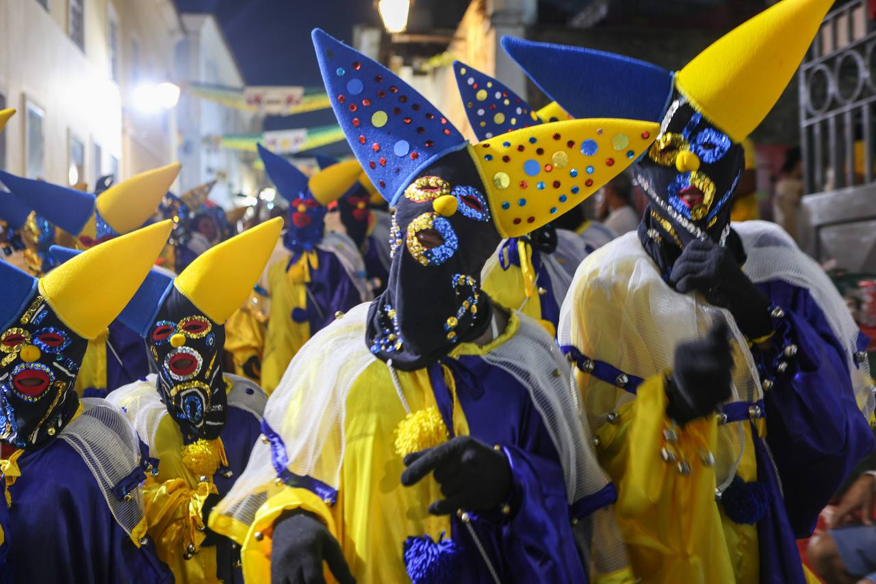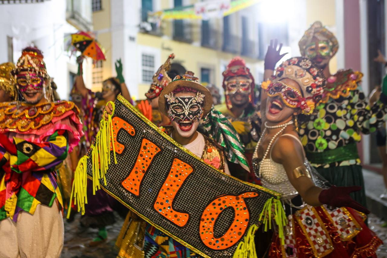 Despertando o encantamento com a magia da folia momesca, grupos desfilaram no Carnaval do Pelô coloriram as ruas do Pelourinho neste domingo (15). Com máscaras escondendo todo o rosto, chapéus de duas pontas e trajes de cetim em azul e amarelo, o enigmático Pierrot Tradição de Plataforma chamou a atenção do público. Outra atração do dia foi a Filó Brincante, que também trouxe uma performance lúdica para divertir os foliões do tradicional circuito do Centro Histórico.
