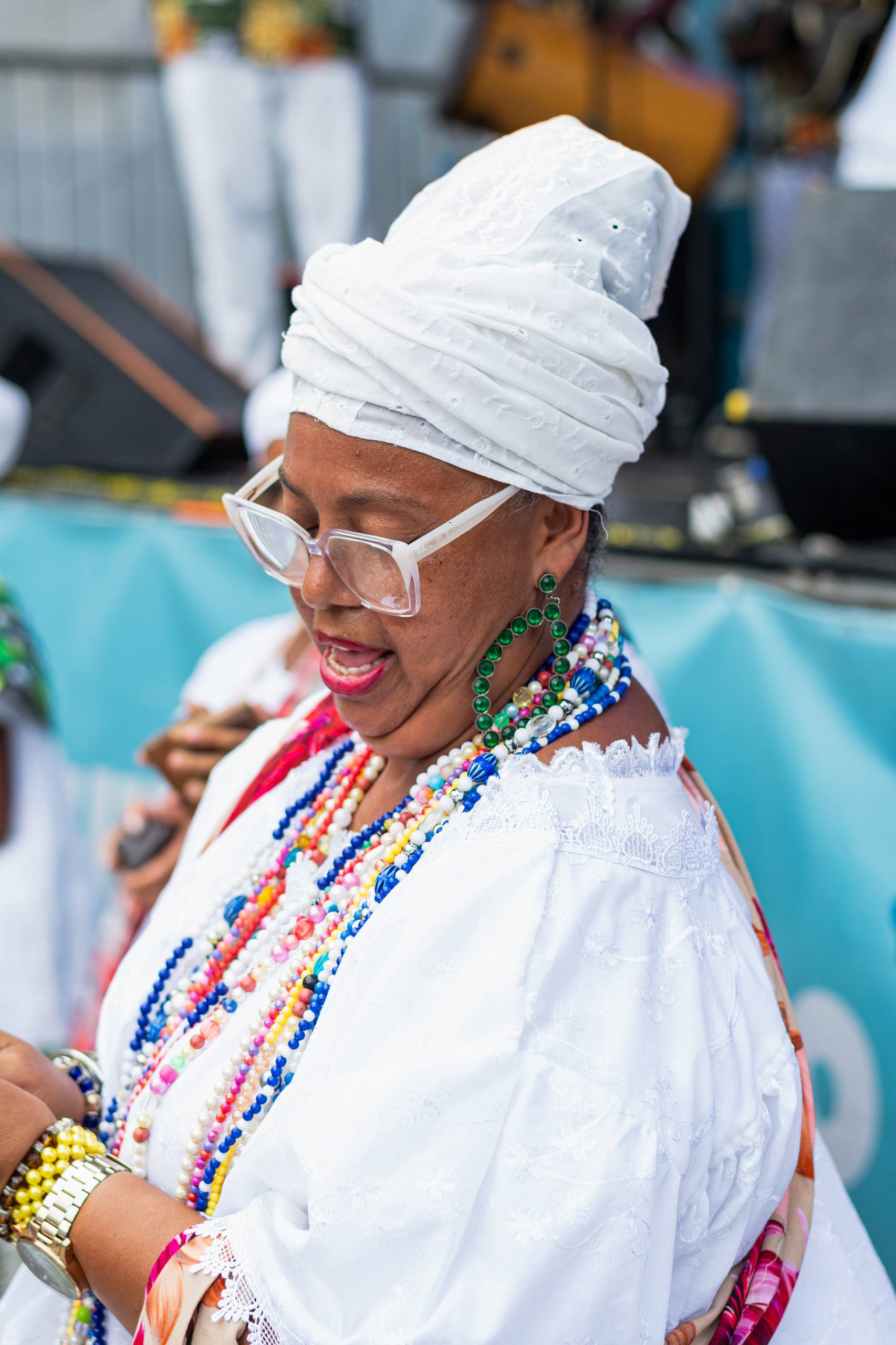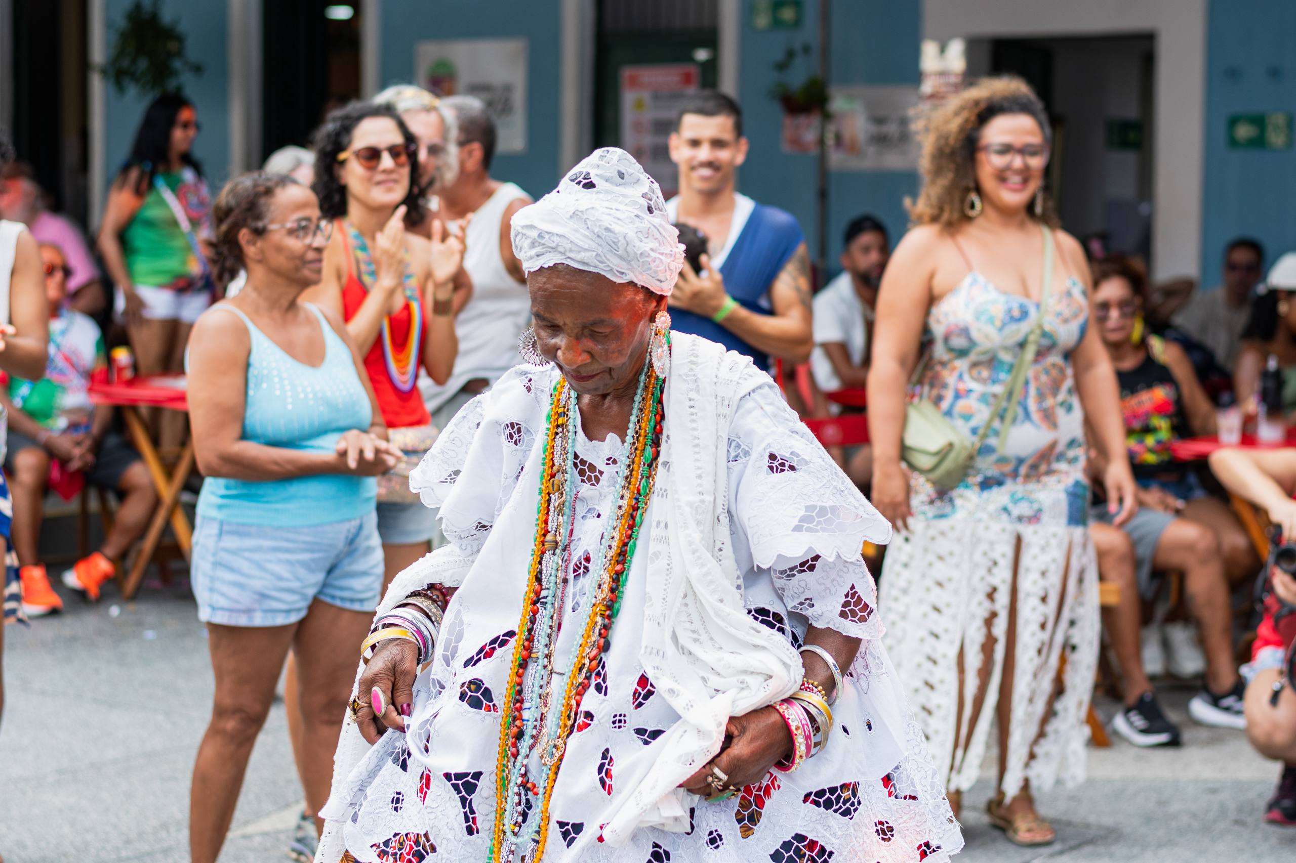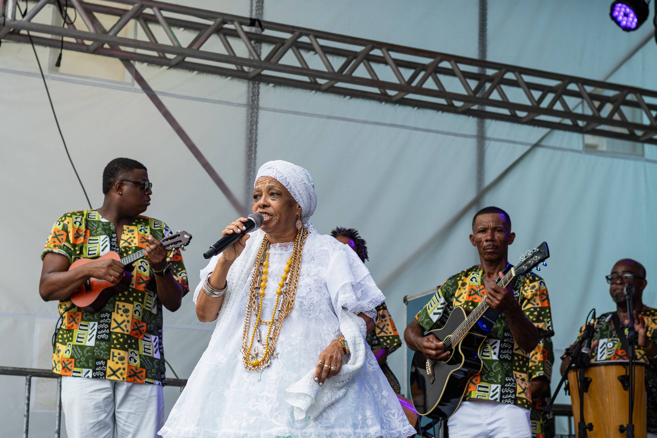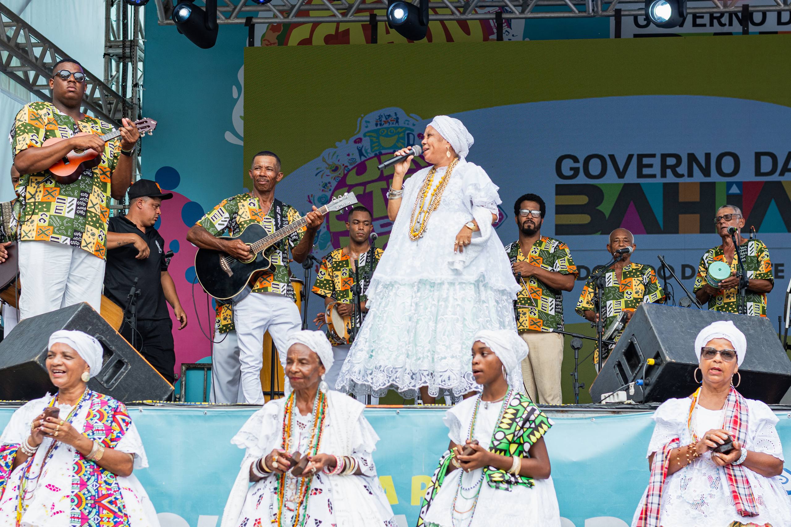 Todos os olhos, ouvidos e pés dedicados ao samba do Recôncavo, em mais um dia de celebração a este patrimônio cultural da Bahia. Dessa vez, representado pelo Samba de Roda da Dona Dalva, de Cachoeira. No palco do Largo Quincas Berro D'água, nesta segunda-feira (16), a vocalista Ana Olga, 65 anos, convocou o público pra dançar e foi atendida imediatamente, com um verdadeiro balé de sambistas formados pelo público que lotava a plateia. “Nós viemos aqui pra sambar e pra colocar o povo pra sambar”. Ordem dada e acatada: Todos caíram no samba!