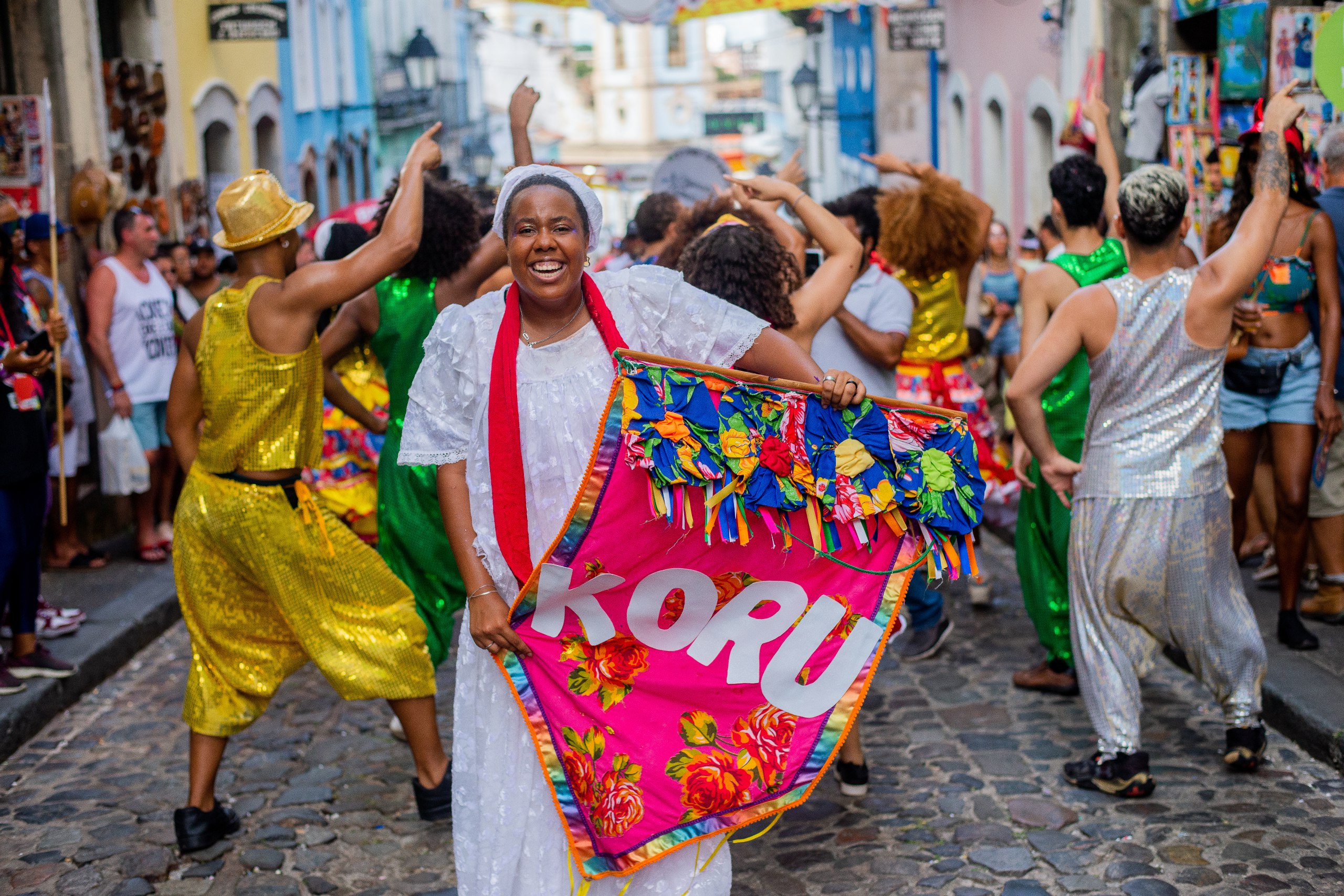 Gilmara Rocha, coreógrafa do Koru destaca a importância e o estímulo que a Companhia tem de participar da festa e neste cenário: ”O Carnaval do Pelourinho é um carnaval que fortalece a essência do carnaval porque hoje o carnaval tá tomando outra roupagem mas essa essência e tradicionalidade continua e a Koru tá fazendo parte dessa história. Pra gente, mesmo na contemporaneidade, continuar com esse senso tradicional nos fortalece enquanto artista”.