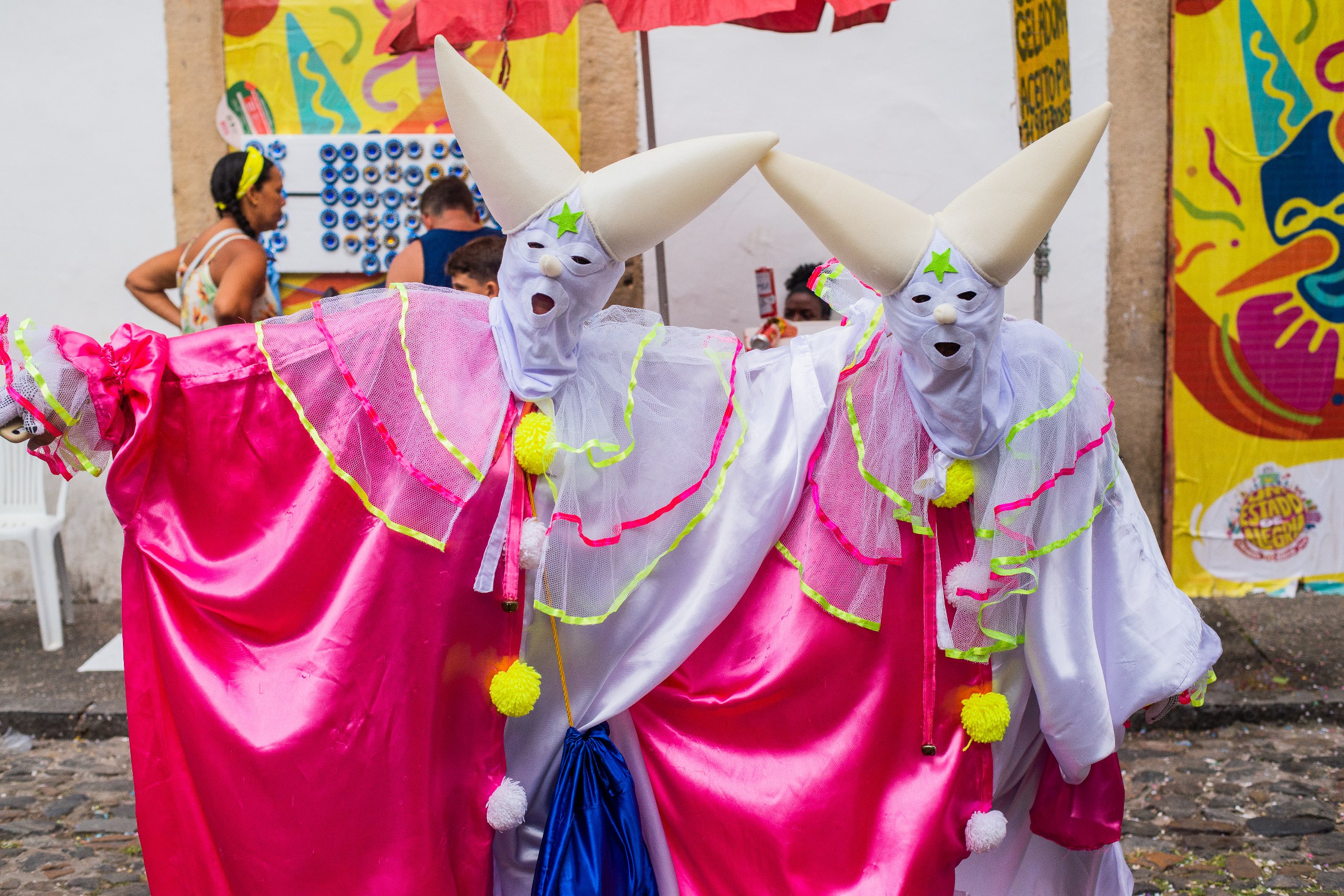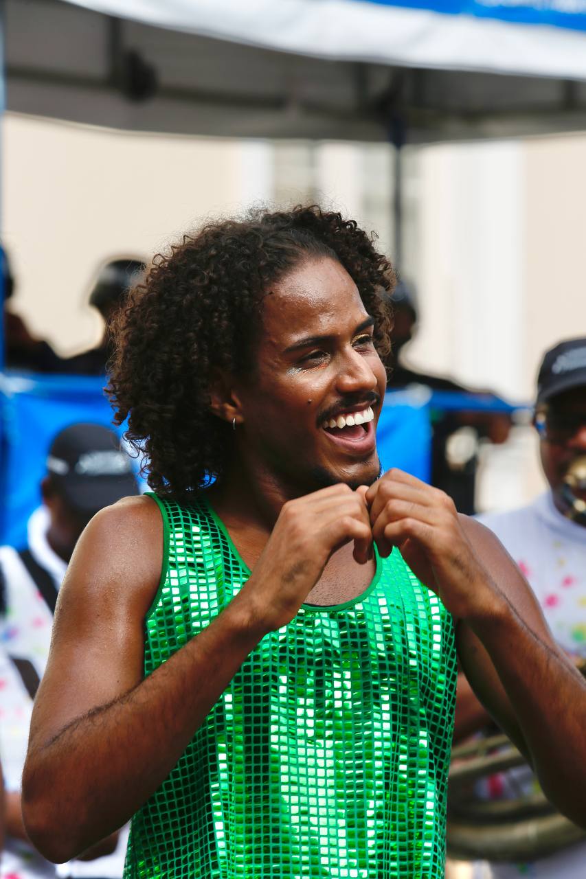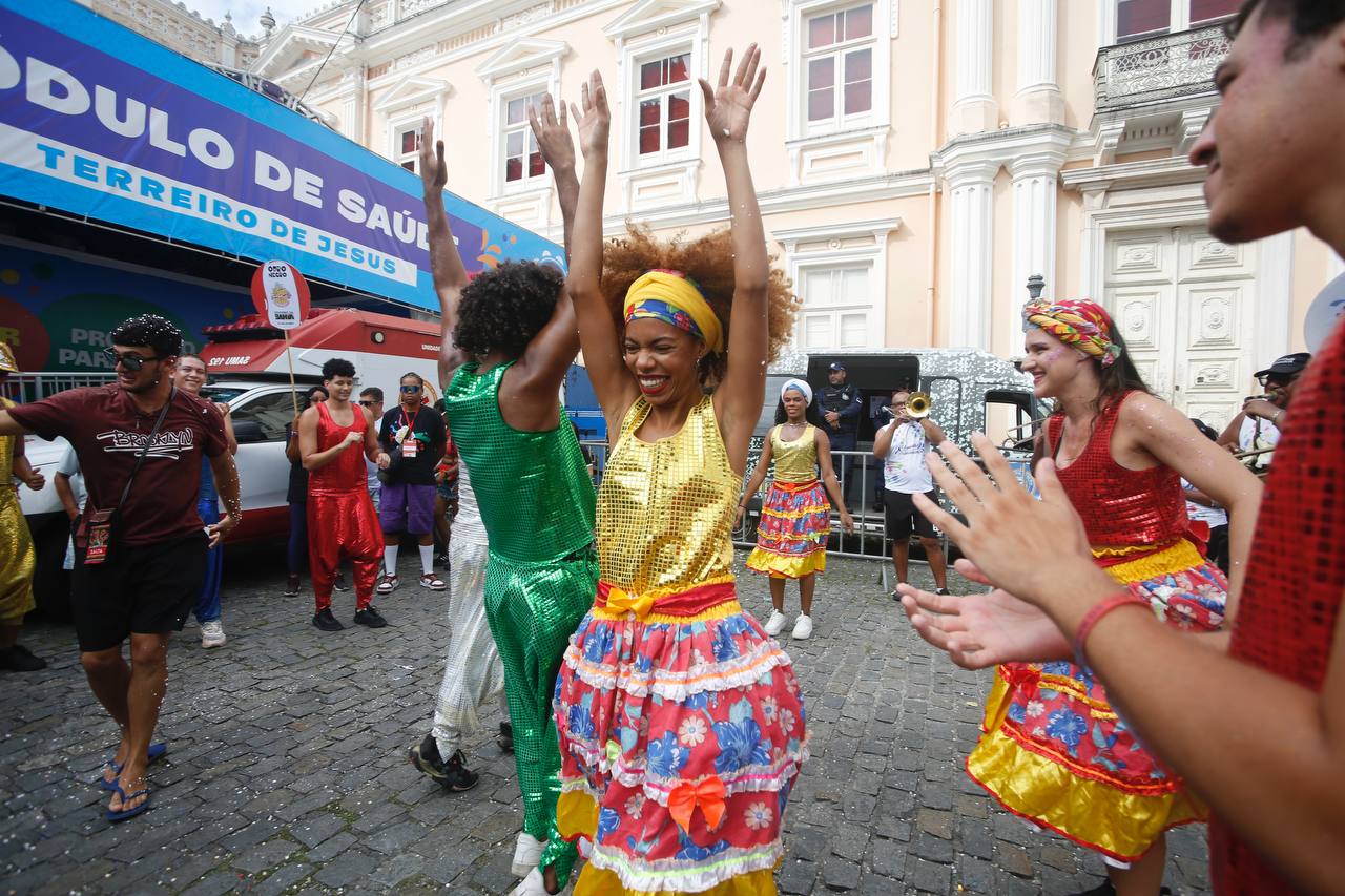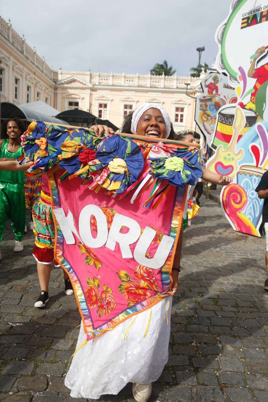 Fruto da Escola Olodum, o projeto existe desde 1991 focado na ancestralidade africana e no protagonismo juvenil. Ainda no quesito itinerância, a dobradinha da Orquestra Os Franciscanos com o Grupo de Dança Koru chamou a atenção dos foliões assim que iniciou seu desfile no Largo Terreiro de Jesus. Era literalmente um ambiente de brincadeira que envolvia famílias e artistas.