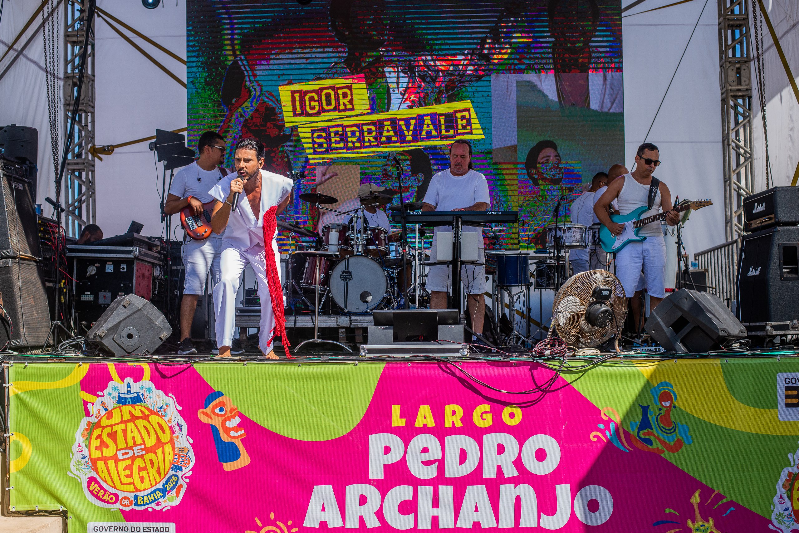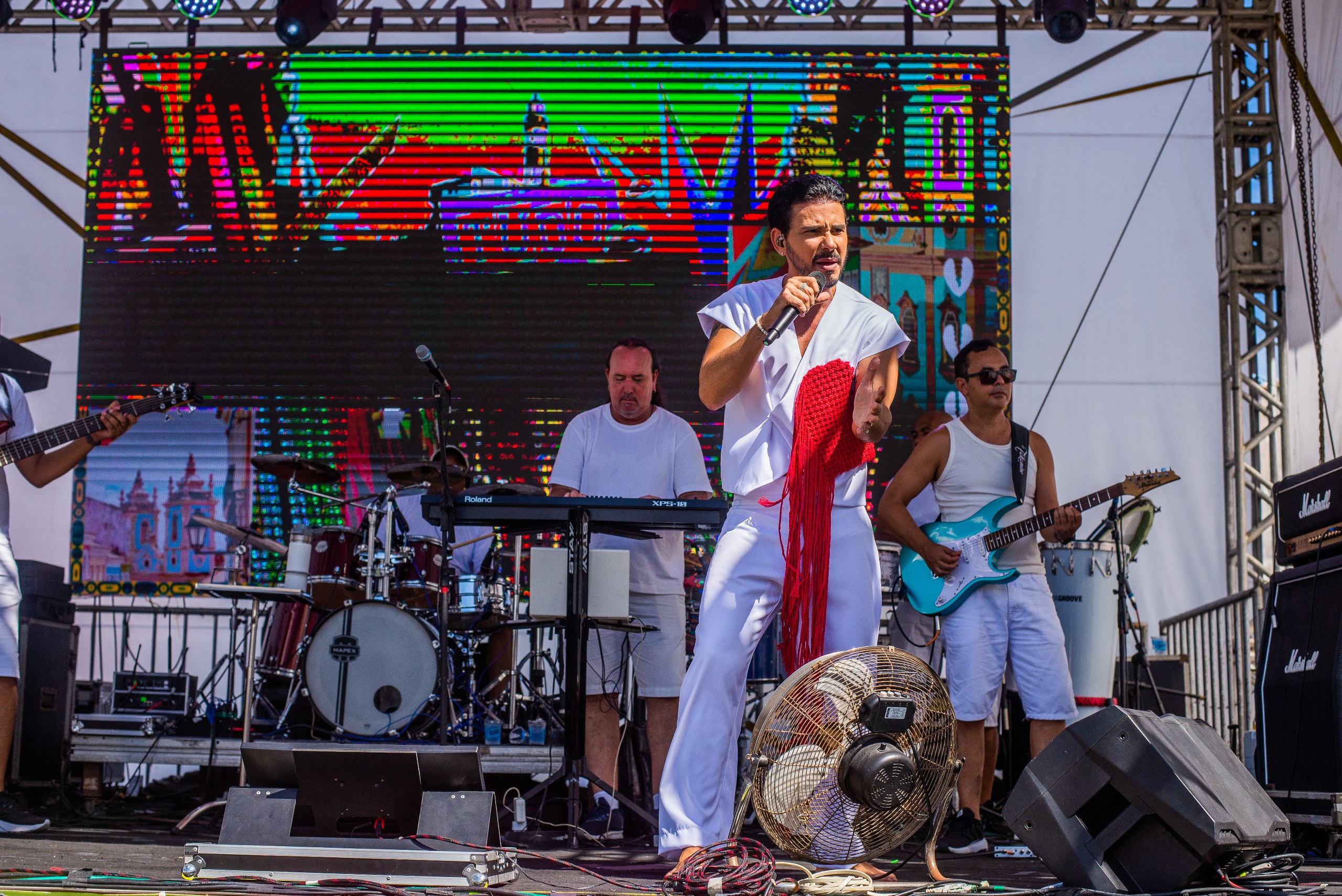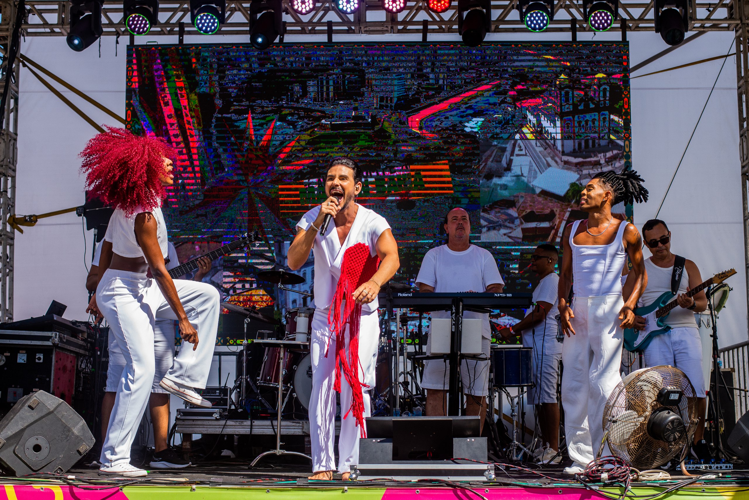 No último dia de folia, terça-feira (17), o cantor Igor Serravalle levou animação e performance ao Largo Pedro Archanjo, reunindo baianos e turistas no Pelourinho. Com repertório diverso, o artista não deixou ninguém parado e reforçou a potência da festa, transformando o show em um convite constante à participação do público, em clima de primeiro dia de carnaval.