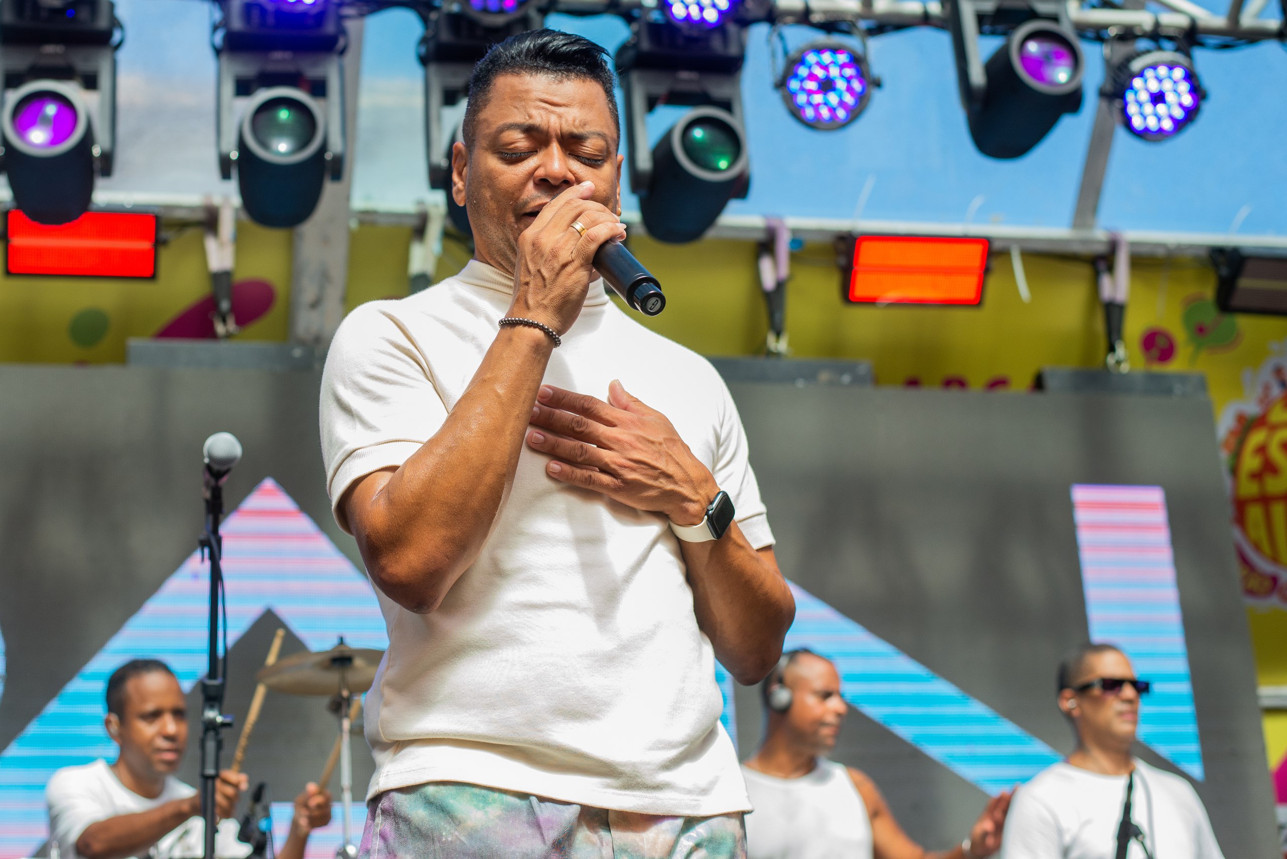 Com diversidade e mistura de ritmos, o artista garantiu que ninguém ficasse parado ao apresentar um espetáculo especial, incluindo sucessos de sua época à frente da Banda Filhos de Jorge, como “Ziriguidum” e “Saudade de Você”.