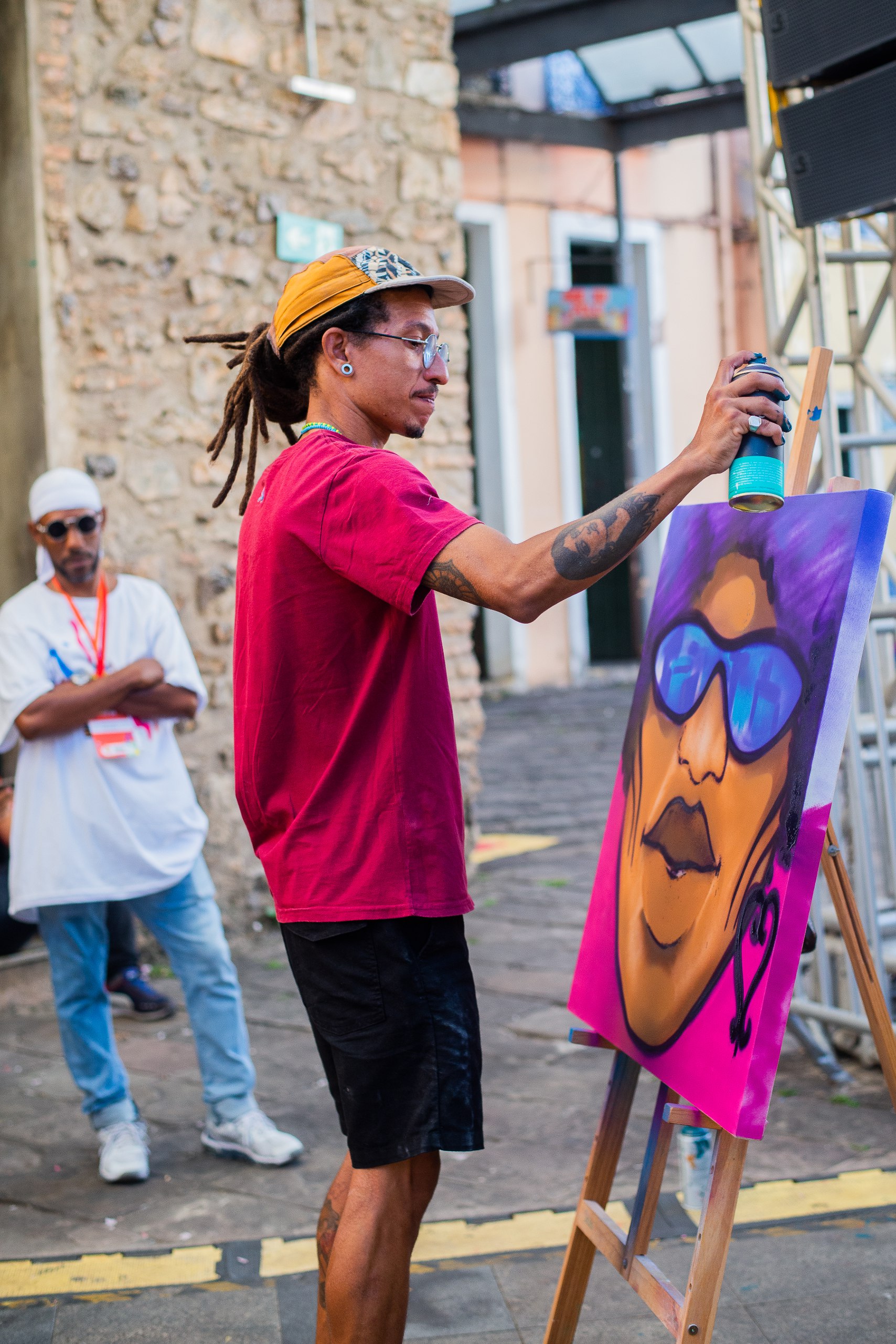 “Fazer um grafite, enquanto meu parceiro cantava, foi uma experiência muito forte. Cada traço acompanhava uma batida, cada cor dialogava com uma rima. A gente transformou o Pelô num espaço de criação conjunta, mostrando que o rap é coletividade. Estar no Carnaval fazendo arte urbana é ocupar um lugar que também é nosso.”