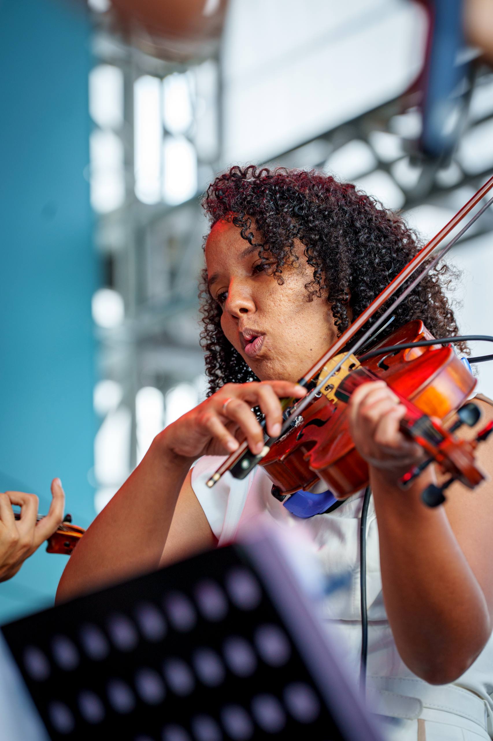 No início, a plateia apenas aplaudia, mas logo se entregou à dança, encantada com a versatilidade da Orquestra, que misturou samba-reggae, axé music e pitadas de música clássica no Largo Quincas Berro D’Água.