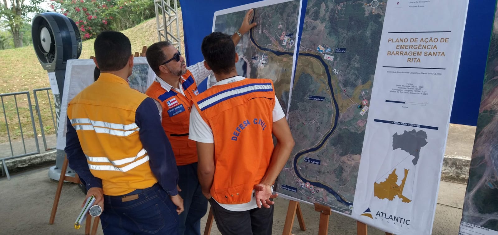 A Superintendência de Proteção e Defesa Civil da Bahia (Sudec), representada pelo seu coordenador adjunto, Osny Bomfim, participou, na última sexta-feira (19), de um Simulado de Emergência e Evacuação de Área de Risco da Barragem Santa Rita, realizado na companhia de mineração Atlantic Nickel, em Itagibá/BA. A atividade, de caráter educativo e de preparação, teve como objetivo avaliar o desempenho do Plano de Ação de Emergência para Barragens de Mineração (PAEBM).