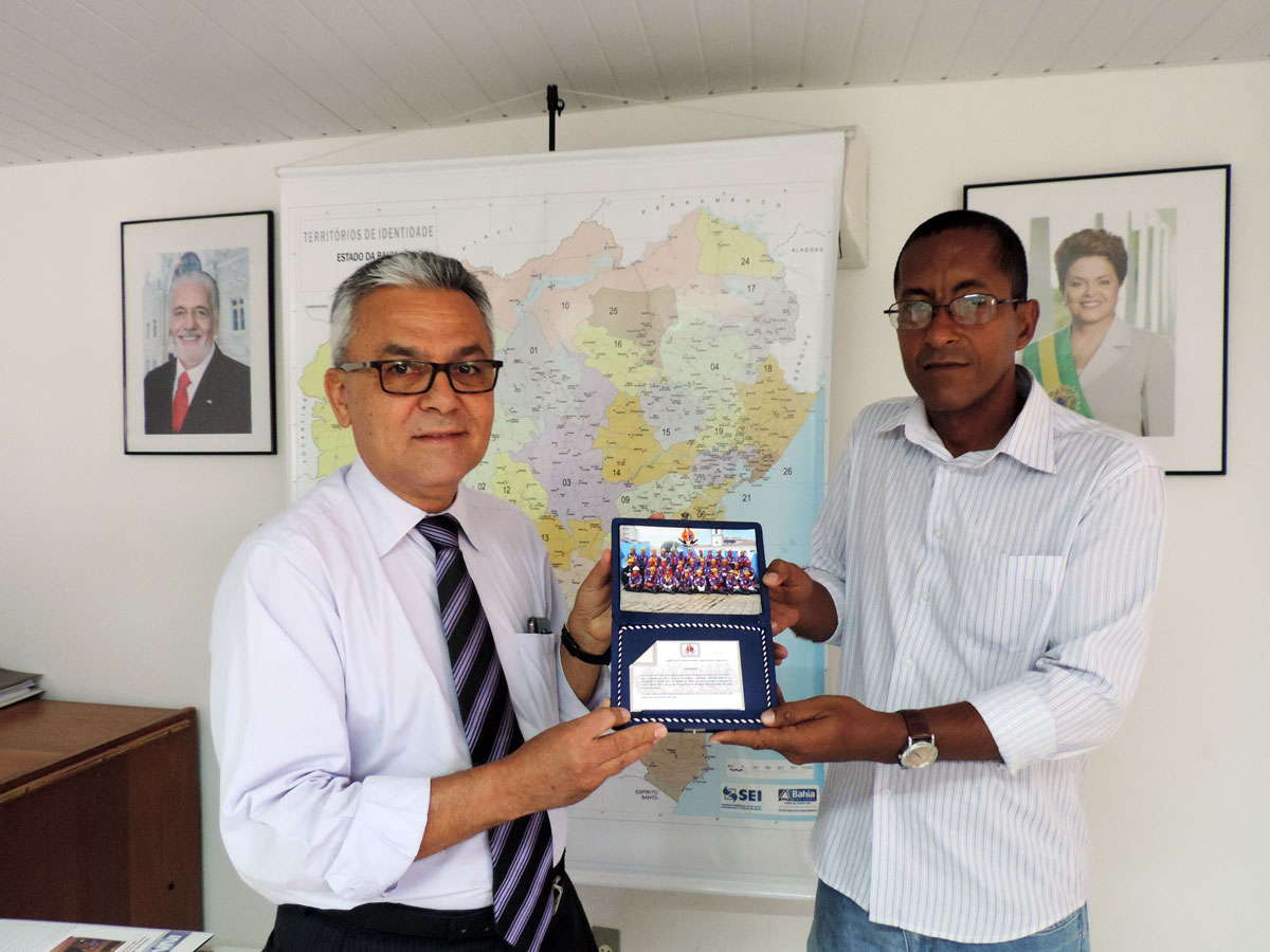 O Superintendente de Proteção e Defesa Civil, Salvador Brito, foi agraciado pelo coordenador adjunto do Projeto Social de Ajuda Humanitária, Ações de Saúde e Defesa Civil, AENFASEG, Carlos Soares Sobrinho Júnior, com uma Placa de Homenagem pelo apoio prestado na realização do Módulo Defesa Civil no Curso de Capacitação e Nivelamento de Conhecimentos para Atuação em Ajuda Humanitária, Ações de Saúde e Defesa Civil, realizado no período de abril a dezembro de 2014. O Curso foi composto por 18 módulos, com carga horária de 460h e formou 29 alunos.