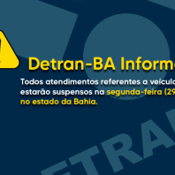 Todos atendimentos referentes a veículos estarão suspensos na segunda-feira (29) no estado da Bahia.