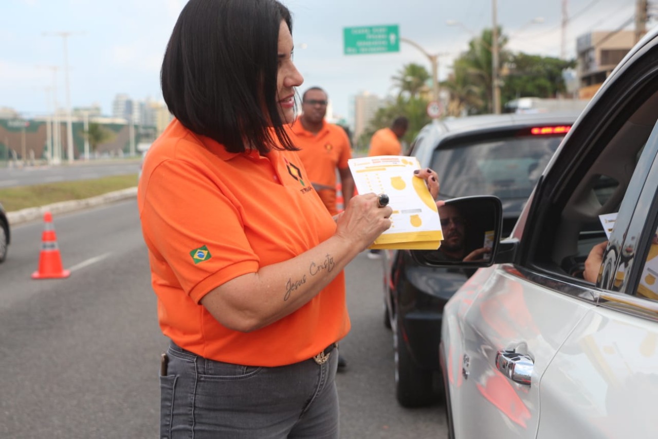 “Muito Interessante essa ação do Detran. Isso revela o quanto o órgão investe na conscientização no trânsito, uma preocupação de todos”. A fala de Jamylle Souza, nessa terça-feira (17), aconteceu após a administradora passar pela abordagem em uma blitz educativa montada pelo Departamento Estadual de Trânsito, na Avenida Octávio Mangabeira, Boca do Rio. A ação faz parte das atividades do Maio Amarelo, movimento internacional pela redução de acidentes e mortes no trânsito.