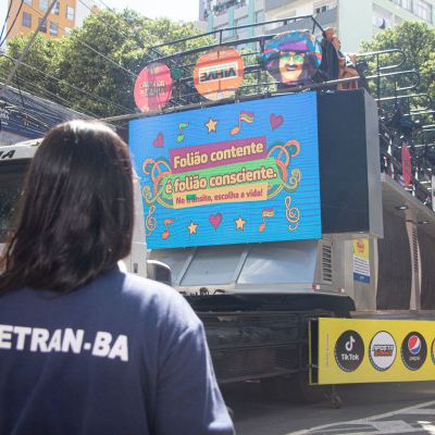 As orientações estão nas ventarolas para conter o calor nos circuitos. Também nos trios elétricos, a mensagem em LED reforça que folião contente é folião consciente. As ações têm o intuito de fazer a diferença quando o assunto é construir um trânsito mais seguro para todos.