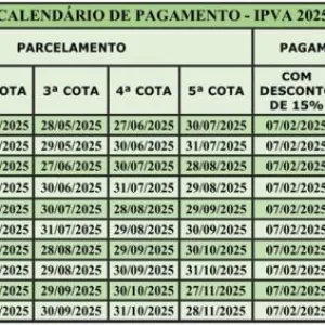 Quitação do IPVA com 8% de desconto na data que inicia o parcelamento do veículo