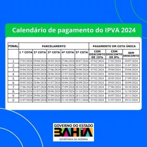IPVA fica em média 2,61% mais barato em 2024 na Bahia, e pode ser pago via pix à vista em qualquer banco