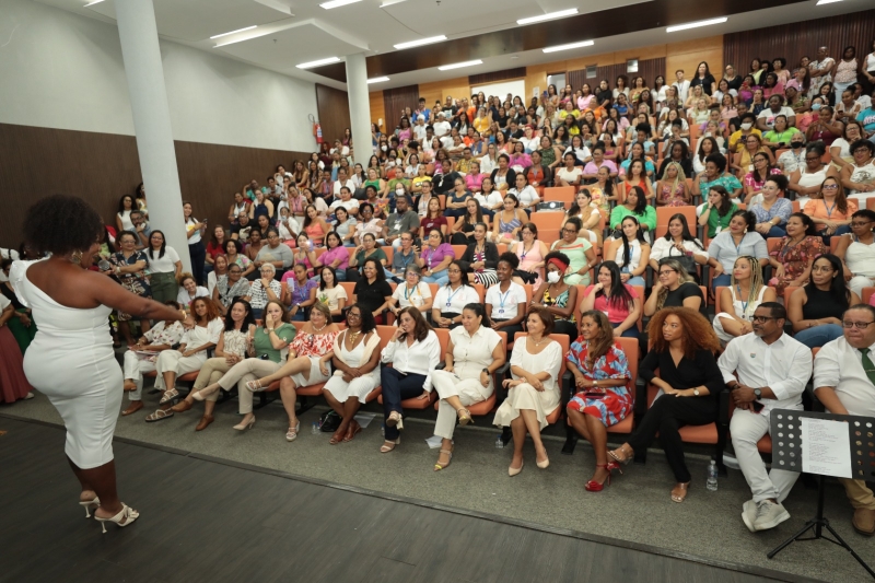 Dando continuidade à programação do “Março Mulher”, a Secretaria da Educação do Estado (SEC), por meio do Programa da Saúde e Valorização do Professor, realizou, nesta sexta-feira (8), data em que celebra o Dia Internacional da Mulher, no auditório da instituição, um encontro voltado para a valorização da mulher e das trabalhadoras da Educação. O dia foi marcado por palestra e apresentações musicais, além de serviços de saúde e beleza feminina. Um dos destaques foi a palestra da jornalista, atriz e influenciadora digital Maíra Azevedo, mais conhecida como Tiá Má.
