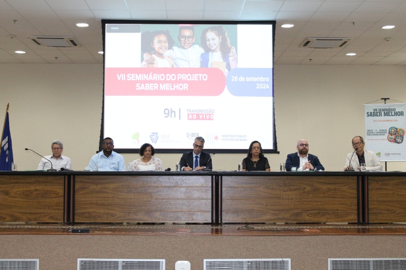 O VII Seminário Saber Melhor, promovido pela União Nacional dos Conselhos Municipais de Educação (UNCME) Bahia, realizado em parceria com o Ministério Público da Bahia (MPBA), teve início nesta quinta-feira (26), no auditório da sede do MP, no Centro Administrativo da Bahia (CAB), em Salvador. Com o tema “Direito à educação: desafios e compromissos para a próxima década”, o evento, que reúne cerca de 300 participantes, tem como objetivo fortalecer os conselhos municipais de Educação e promover o diálogo sobre a melhoria da qualidade do ensino no Estado.