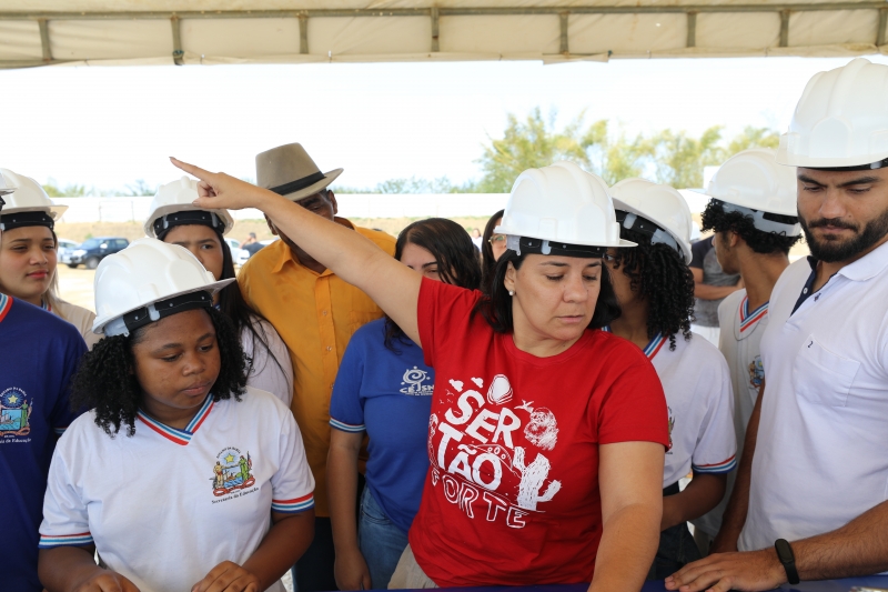 Pela manhã, a secretária da Educação do Estado, Rowenna Brito, visitou o terreno no Distrito de Inhobim, em Vitória da Conquista, onde está sendo construída uma nova sede que atenderá a mais de 400 estudantes dos quatro anexos do Colégio Estadual José Sá Nunes, dos distritos de Inhobim, São João da Vitória (Batuque) e Cercadinho e do povoado de Veredinha.