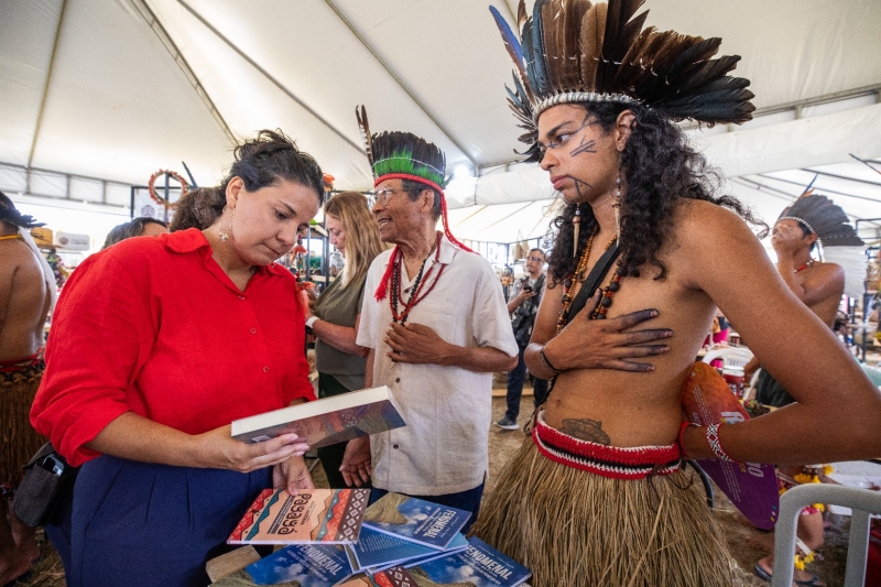 A secretária da Educação do Estado, Rowenna Brito, falou sobre os investimentos para fortalecer a Educação Indígena. “Estamos aqui para poder negociar e debater com acerca de políticas públicas que garantam os direitos dos povos indígenas. Nós já entregamos aqui obras licitadas, também vamos anunciar mais licitações, ordens de serviço de novas unidades escolares e o concurso indígena da carreira do magistério. Estamos realizando uma série de ações para garantir mais educação, com mais qualidade para os povos indígenas, nossos povos originários”.