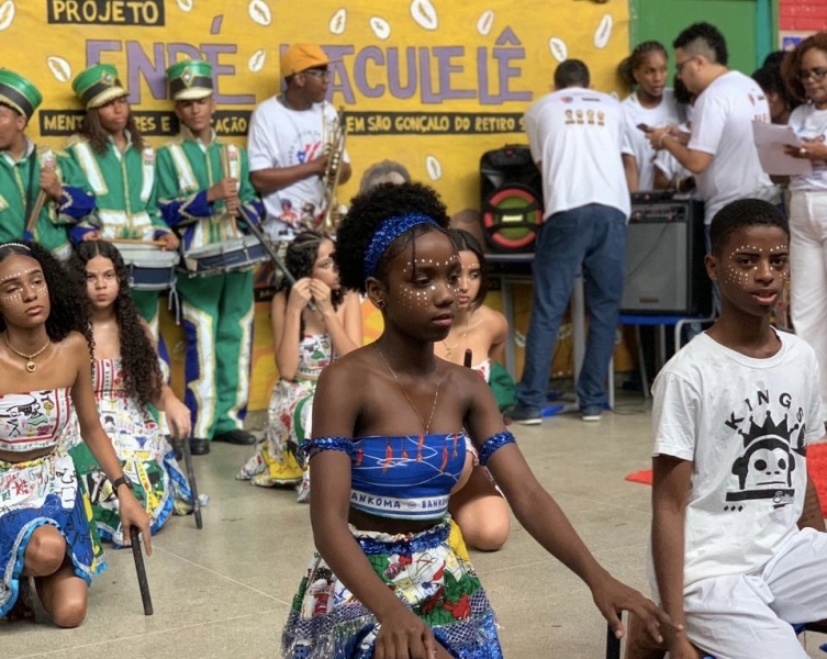 O Colégio Estadual Alberto Valença Integral, em parceria com a Secretaria de Reparação da Igualdade Racial (SEPROMI) e contemplado pelo Edital Makota Valdina da Secretaria da Educação do Estado da Bahia, celebrou o encerramento do projeto Endê Maculelê - Mentes Livres e Educação Antirracista, no bairro São Gonçalo do Retiro, nesta sexta-feira (08). O projeto teve como objetivo central a valorização da memória, identidade e cultura afro-indígena, com ênfase no resgate da ancestralidade e no empoderamento da juventude local.