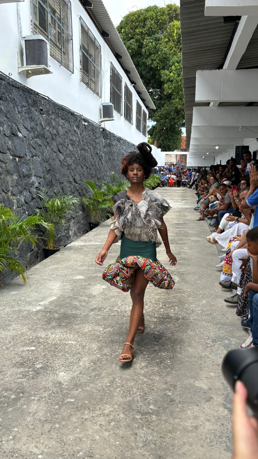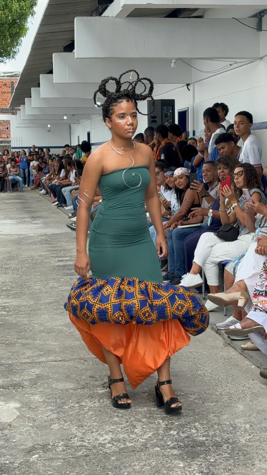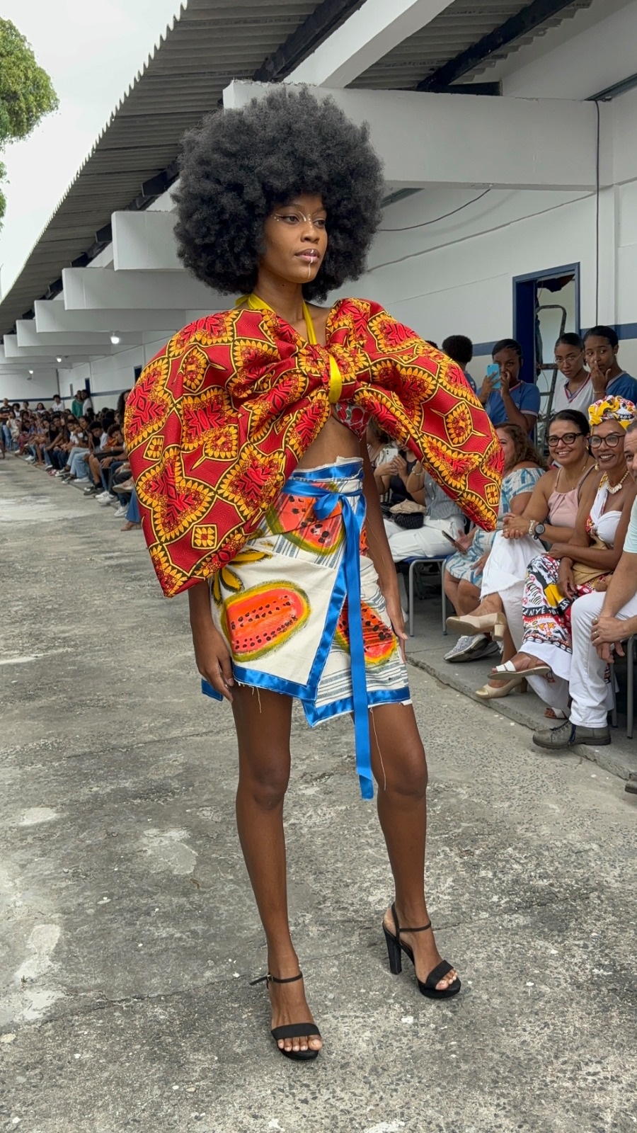 Um dos pontos altos do evento foi a realização do desfile Afro Fashion Hair, no qual os estudantes fizeram todo o trabalho de pesquisa de referências de moda africana, desenhos dos croquis, costura dos figurinos, maquiagem e elaboração dos penteados. Seguindo a tendência de moda sustentável, todo o figurino foi confeccionado com a reutilização de tecidos que seriam descartados no lixo. Quem também participou da criação dos figurinos foi a cozinheira do colégio Elaine Cristina de Jesus, que também é estilista. “É muito gratificante colaborar com os estudantes e ver o resultado das roupas prontas na passarela”, disse.