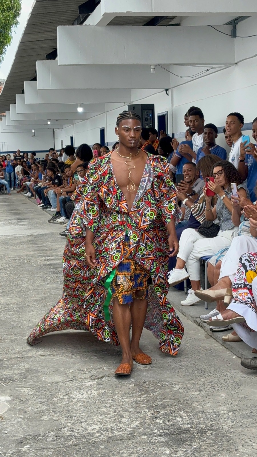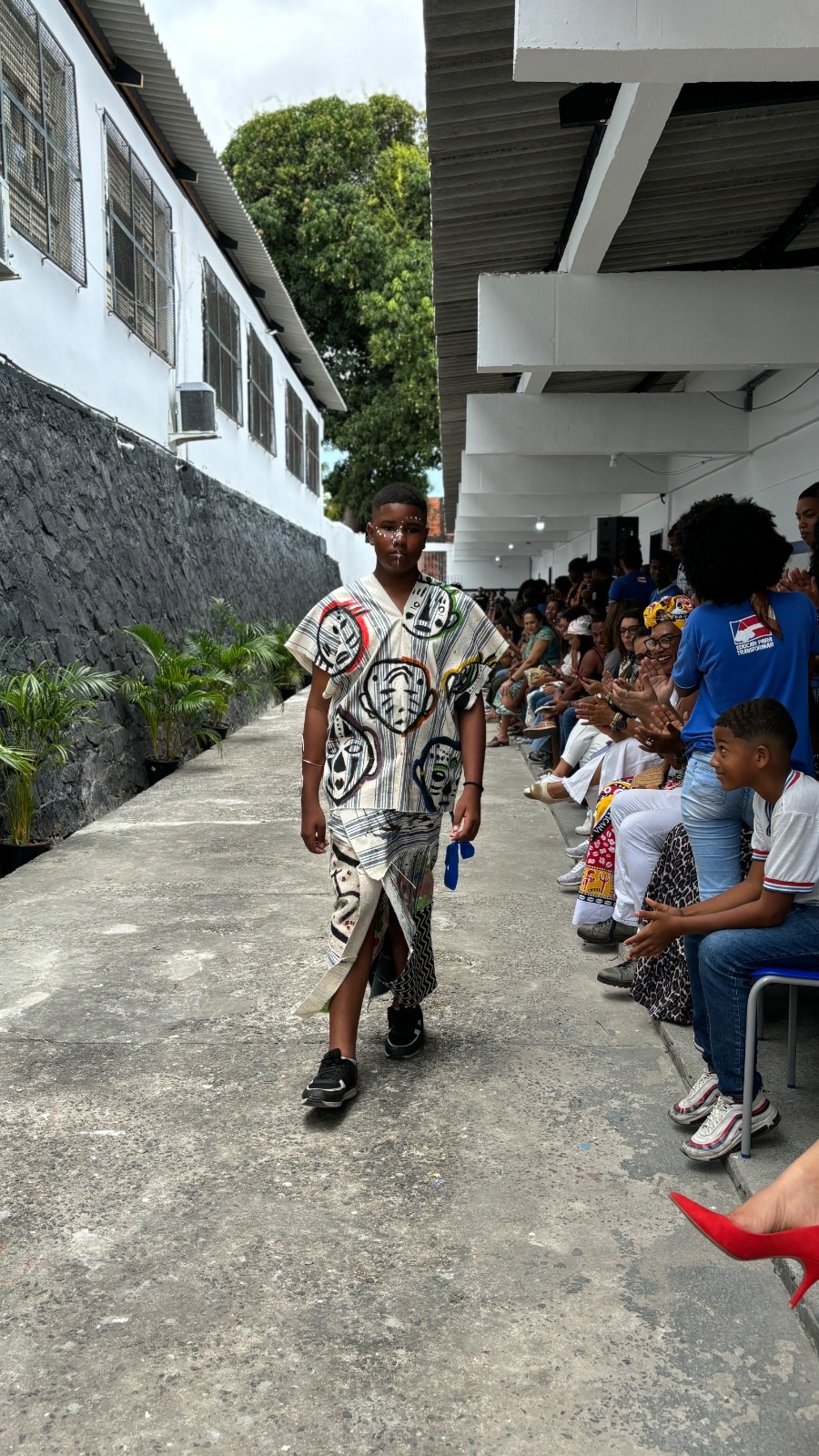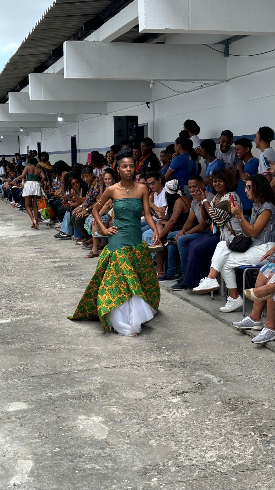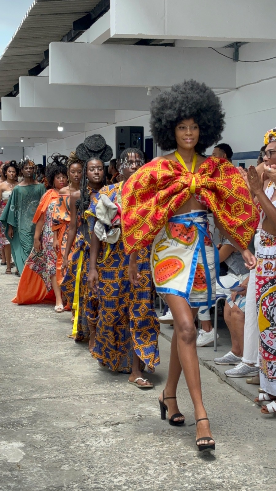 Um dos pontos altos do evento foi a realização do desfile Afro Fashion Hair, no qual os estudantes fizeram todo o trabalho de pesquisa de referências de moda africana, desenhos dos croquis, costura dos figurinos, maquiagem e elaboração dos penteados. Seguindo a tendência de moda sustentável, todo o figurino foi confeccionado com a reutilização de tecidos que seriam descartados no lixo. Quem também participou da criação dos figurinos foi a cozinheira do colégio Elaine Cristina de Jesus, que também é estilista. “É muito gratificante colaborar com os estudantes e ver o resultado das roupas prontas na passarela”, disse.