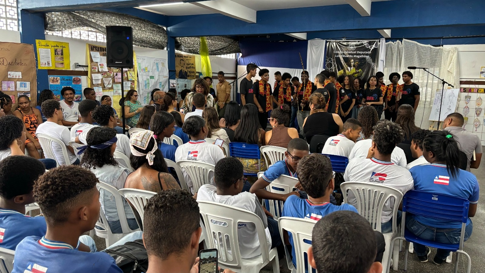 Os estudantes do Colégio Estadual Clarice Santiago dos Santos, localizado no bairro do Arenoso, em Salvador, deram um show de talento durante a culminância do projeto escolar Com Ciência Negra. Através de apresentações de dança, coral, poesia e desfile temático, eles celebraram aspectos como identidade, história, cultura, luta e beleza do povo negro. A atividade integra as comemorações do Novembro Negro realizadas pelas escolas estaduais em toda a Bahia.