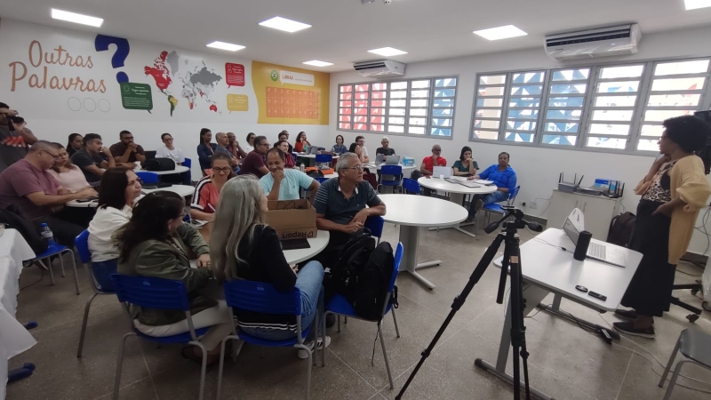 Professores de português e matemática do Colégio Estadual Professor Arléo Barbosa, em Ilhéus participaram, nesta quinta-feira (22), de Oficinas de Podcast Audiovisual Educacional ministradas pela equipe da Diretoria de Inovação e Tecnologia do Instituto Anísio Teixeira (IAT). A ação formativa atende à proposta do Programa Educação Conectada, que visa integrar tecnologias digitais ao cotidiano pedagógico.